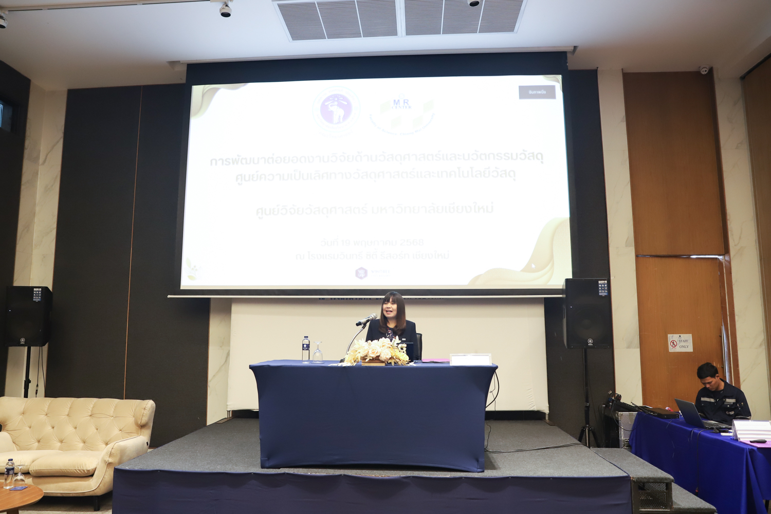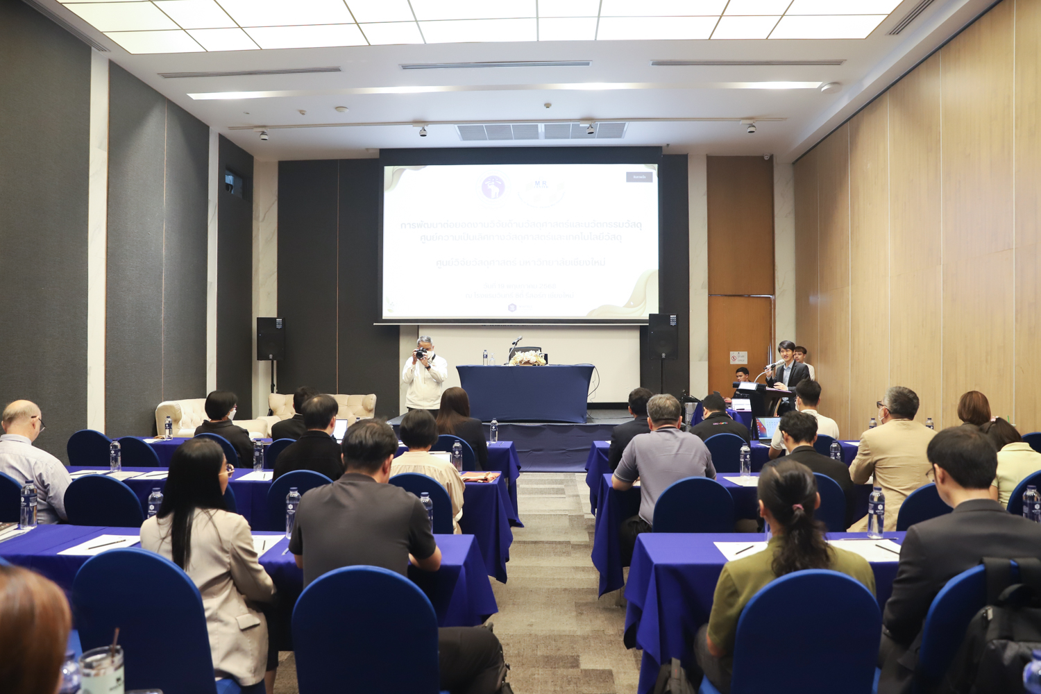 ศูนย์วิจัยวัสดุศาสตร์ คณะวิทยาศาสตร์ จัดสัมมนาการพัฒนาต่อยอดงานวิจัยด้านวัสดุศาสตร์และนวัตกรรมวัสดุ : ศูนย์ความเป็นเลิศทางวัสดุศาสตร์และเทคโนโลยีวัสดุ โดยได้รับเกียรติจาก รองศาสตราจารย์ ดร.วินิตา บุณโยดม รองอธิการบดีมหาวิทยาลัยเชียงใหม่ เป็นประธานเปิดการสัมมนา รองศาสตราจารย์ ดร.จรูญ จักร์มุณี รองคณบดีคณะวิทยาศาสตร์ กล่าวต้อนรับ และผู้ช่วยศาสตราจารย์ ดร. ชัยสิทธิ์ บรรจงประเสริฐ หัวหน้าศูนย์วิจัยวัสดุศาสตร์ กล่าวรายงานความเป็นมาของการจัดงาน ในวันที่ 19 พฤษภาคม 2568 ณ โรงแรมวินทรี ซิตี้ รีสอร์ท เชียงใหม่