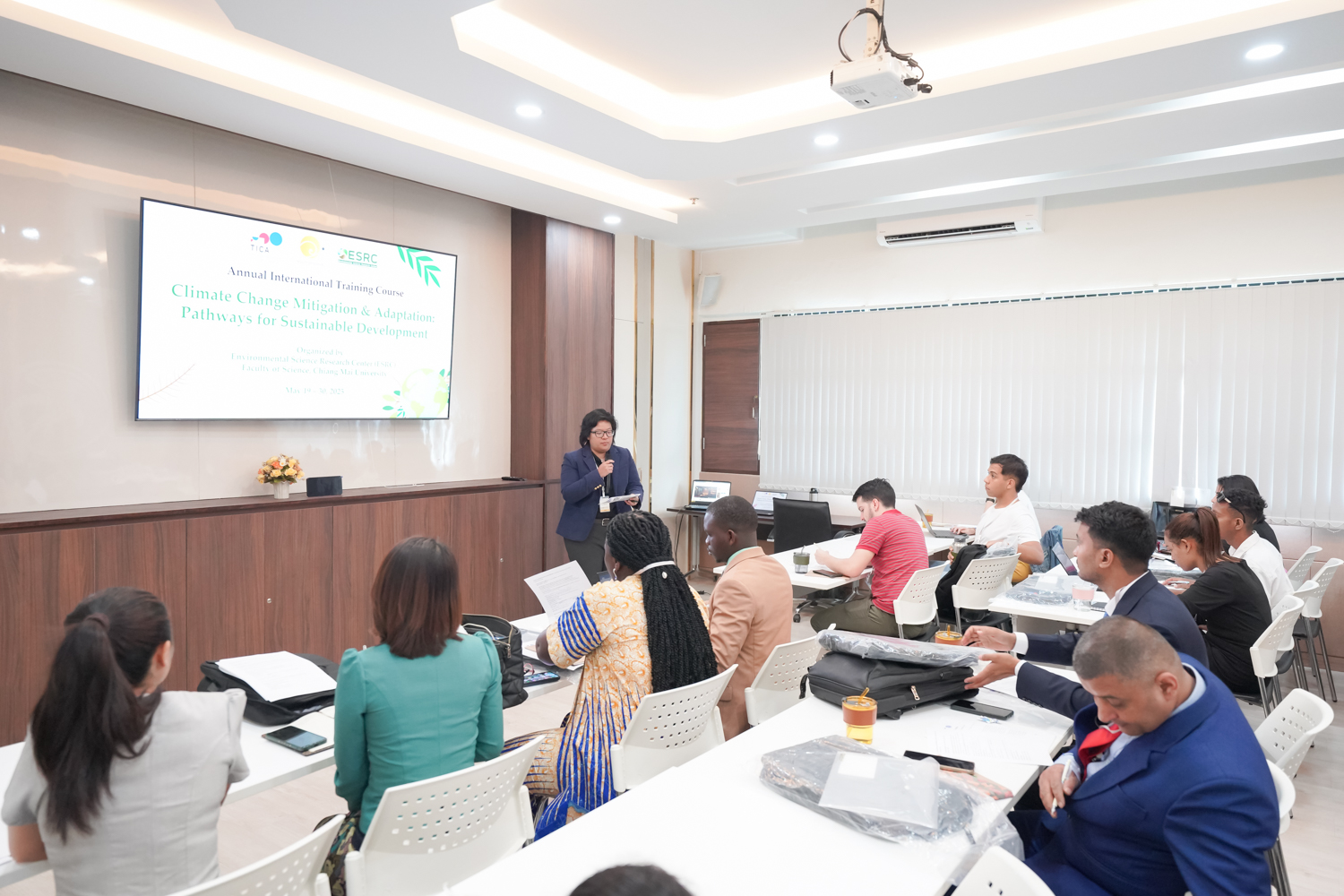 ผู้ช่วยศาสตราจารย์ ดร. ภควรรณ พวงสมบัติ รองคณบดี คณะวิทยาศาสตร์ เป็นประธานเปิดการฝึกอบรมนานาชาติ (AITC) หลักสูตร Climate Change Mitigation & Adaptation: Pathways for Sustainable Development โดย กรมความร่วมมือระหว่างประเทศ ประจำปี 2568 ซึ่งจัดโดย ศูนย์วิจัยวิทยาศาสตร์สิ่งแวดล้อม คณะวิทยาศาสตร์ โดยมี รองศาสตราจารย์ ดร.สมพร จันทระ หัวหน้าศูนย์วิจัยวิทยาศาสตร์สิ่งแวดล้อม กล่าวต้อนรับผู้เข้าร่วมการอบรม ในวันที่ 19 พฤษภาคม 2568 ณ ห้องประชุมศูนย์วิจัยวิทยาศาสตร์สิ่งแวดล้อม อาคาร 30 ปี คณะวิทยาศาสตร์ ทั้งนี้ การฝึกอบรมดังกล่าว กำหนดจัดขึ้นระหว่างวันที่ 19-30 พฤษภาคม 2568 มีผู้เข้าร่วมอบรมจำนวน 30 คน จาก 13 ประเทศ