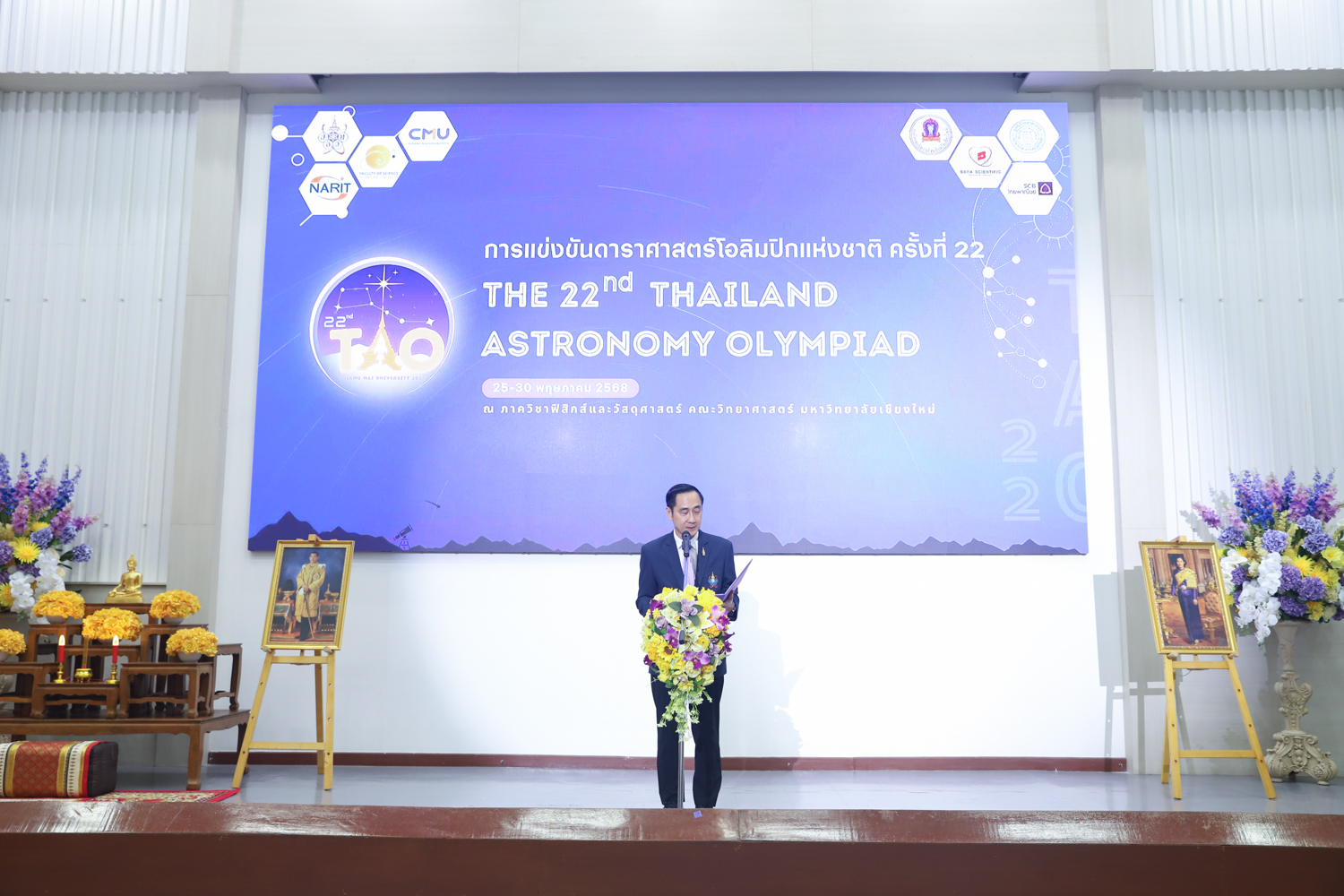 วันที่ 25 พฤษภาคม 2568 คณะวิทยาศาสตร์ มหาวิทยาลัยเชียงใหม่ จัดพิธีเปิดการแข่งขันดาราศาสตร์โอลิมปิกระดับชาติ ครั้งที่ 22 (The 22nd Thailand Astronomy Olympiad (22nd TAO)) ณ ห้อง SCB2100 อาคาร 40 ปี คณะวิทยาศาสตร์ โดยได้รับเกียรติจาก รองศาสตราจารย์ ดร.พินิติ รตะนานุกูล เลขาธิการมูลนิธิ สอวน. เป็นประธานเปิดการแข่งขัน และผู้ช่วยศาสตราจารย์ ดร. ภควรรณ พวงสมบัติ รองคณบดี คณะวิทยาศาสตร์ มหาวิทยาลัยเชียงใหม่ กล่าวต้อนรับและกล่าวรายงานการจัดการแข่งขัน โดยมี รองศาสตราจารย์ เย็นใจ สมวิเชียร กรรมการบริหารมูลนิธิ สอวน. รองศาสตราจารย์บุญรักษา สุนทรธรรม ผู้ทรงคุณวุฒิด้านดาราศาสตร์ คณะกรรมการจัดการแข่งขันฯ ครู อาจารย์ และนักเรียนผู้แทนศูนย์ ร่วมเป็นเกียรติในพิธี