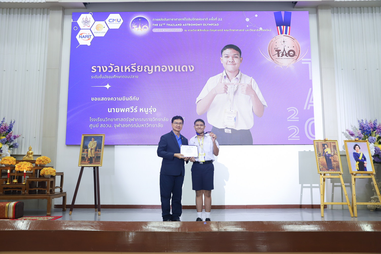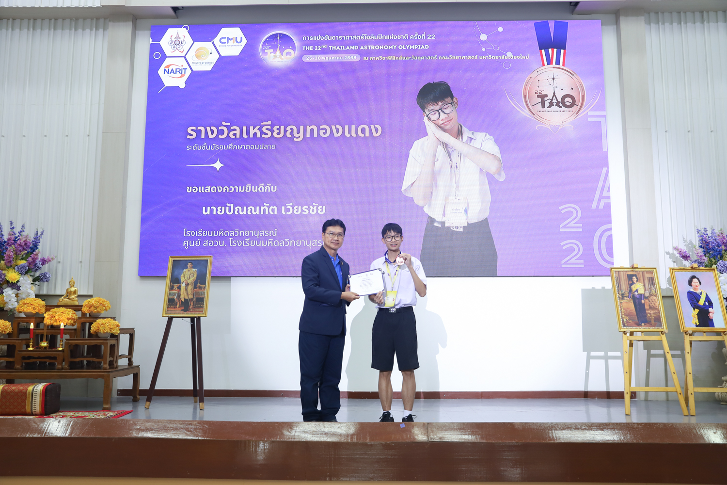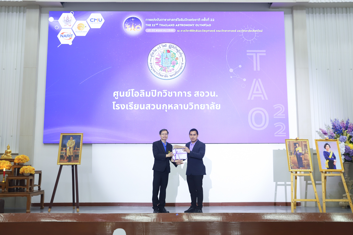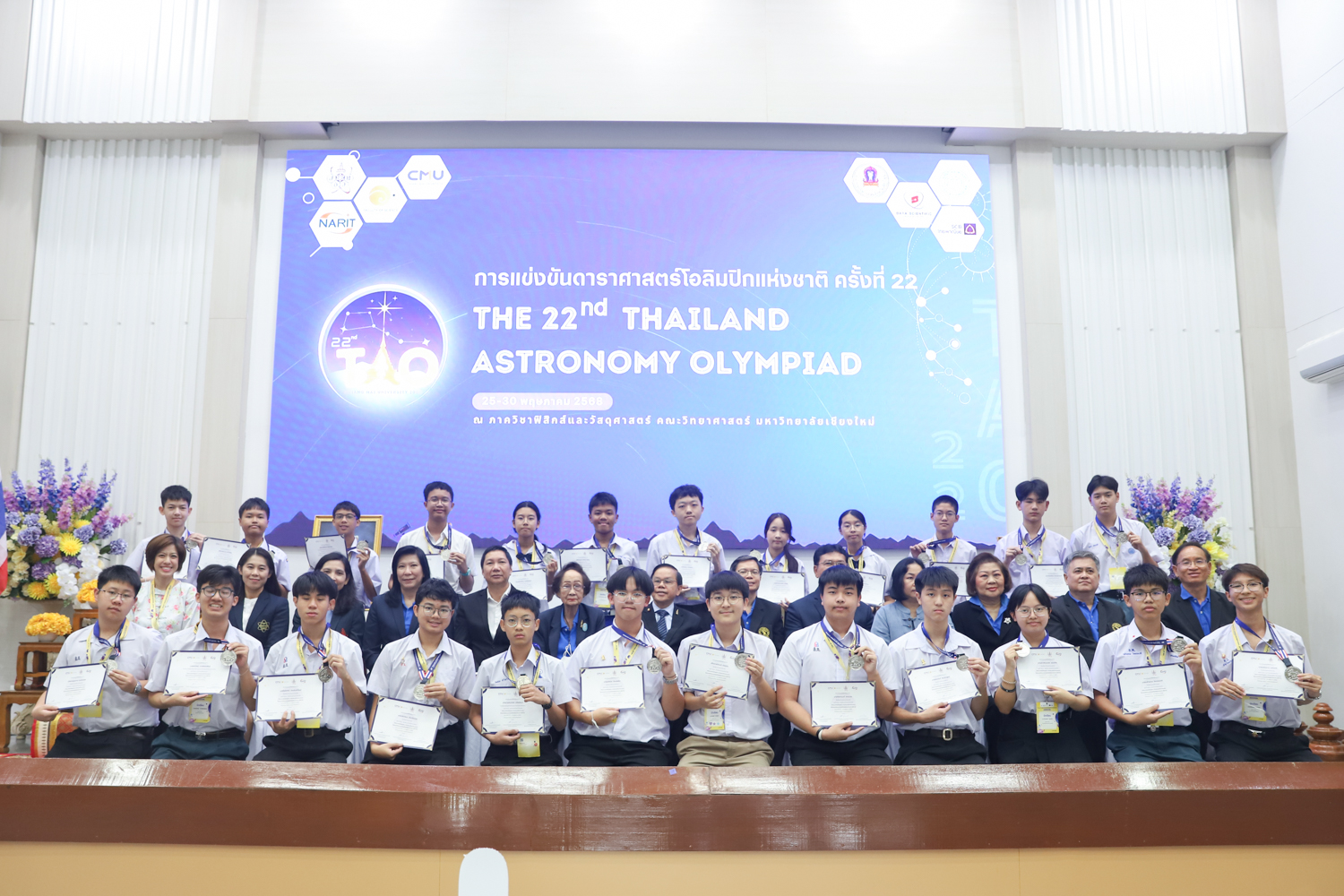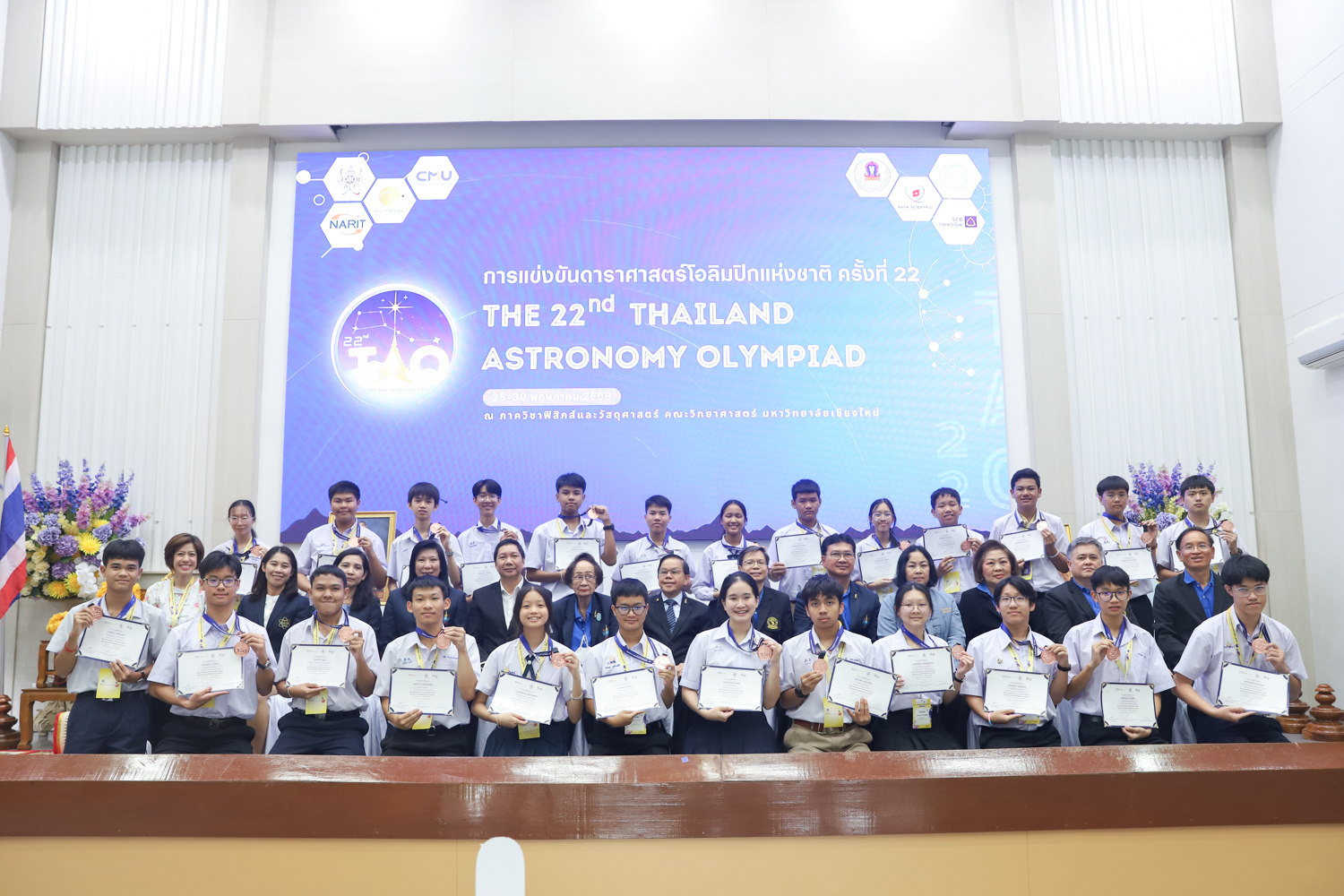 วันที่ 30 พฤษภาคม 2568 คณะวิทยาศาสตร์ มหาวิทยาลัยเชียงใหม่ จัดพิธีปิดการแข่งขันดาราศาสตร์โอลิมปิกระดับชาติ ครั้งที่ 22 (The 22nd Thailand Astronomy Olympiad (22nd TAO)) ณ ห้อง SCB2100 อาคาร 40 ปี คณะวิทยาศาสตร์ โดยได้รับเกียรติจาก รองศาสตราจารย์บุญรักษา สุนทรธรรม กรรมการและประธานสาขาดาราศาสตร์ มูลนิธิ สอวน. เป็นประธานในพิธีปิดการแข่งขัน และรองศาสตราจารย์ ดร.ปิยะพงศ์ เนียมทรัพย์ คณบดีคณะวิทยาศาสตร์ มหาวิทยาลัยเชียงใหม่ กล่าวต้อนรับและกล่าวรายงานการจัดการแข่งขัน โดยมีผู้ทรงคุณวุฒิจากหน่วยงานต่างๆ ตลอดจนครู อาจารย์ และนักเรียนผู้แทนศูนย์ ร่วมเป็นเกียรติในพิธี