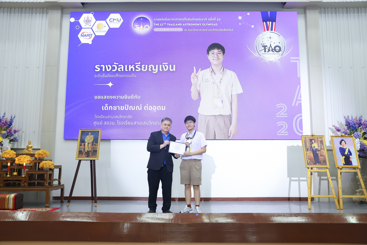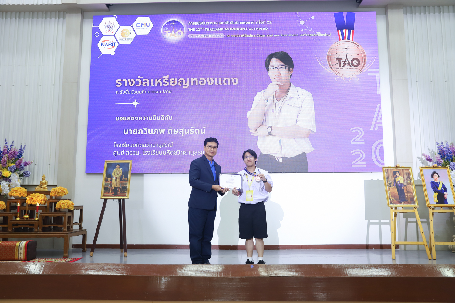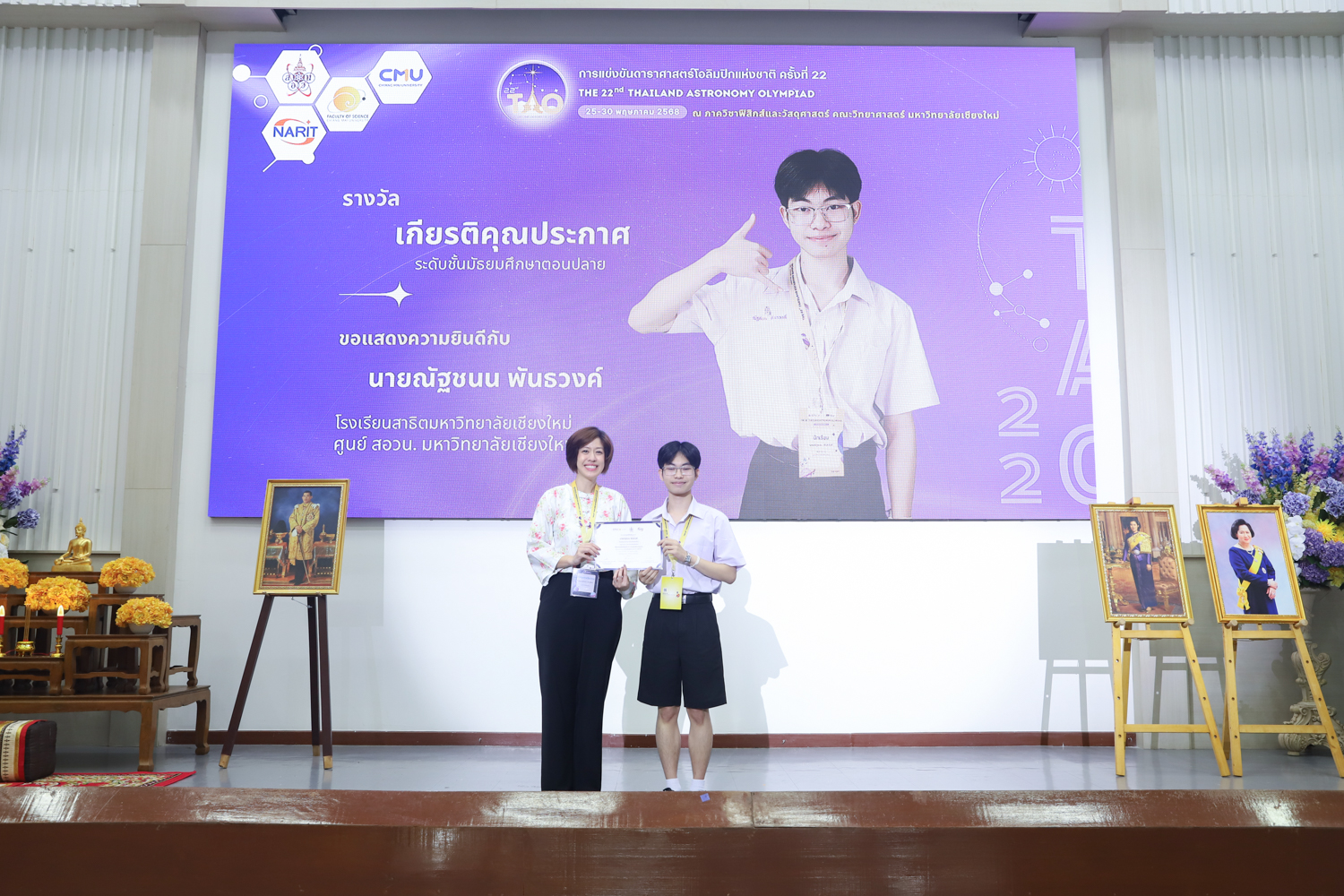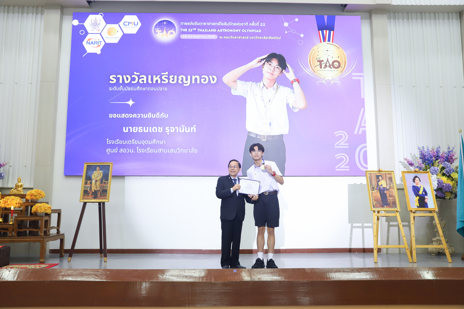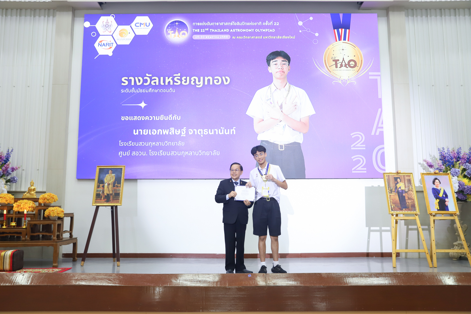 วันที่ 30 พฤษภาคม 2568 คณะวิทยาศาสตร์ มหาวิทยาลัยเชียงใหม่ จัดพิธีปิดการแข่งขันดาราศาสตร์โอลิมปิกระดับชาติ ครั้งที่ 22 (The 22nd Thailand Astronomy Olympiad (22nd TAO)) ณ ห้อง SCB2100 อาคาร 40 ปี คณะวิทยาศาสตร์ โดยได้รับเกียรติจาก รองศาสตราจารย์บุญรักษา สุนทรธรรม กรรมการและประธานสาขาดาราศาสตร์ มูลนิธิ สอวน. เป็นประธานในพิธีปิดการแข่งขัน และรองศาสตราจารย์ ดร.ปิยะพงศ์ เนียมทรัพย์ คณบดีคณะวิทยาศาสตร์ มหาวิทยาลัยเชียงใหม่ กล่าวต้อนรับและกล่าวรายงานการจัดการแข่งขัน โดยมีผู้ทรงคุณวุฒิจากหน่วยงานต่างๆ ตลอดจนครู อาจารย์ และนักเรียนผู้แทนศูนย์ ร่วมเป็นเกียรติในพิธี