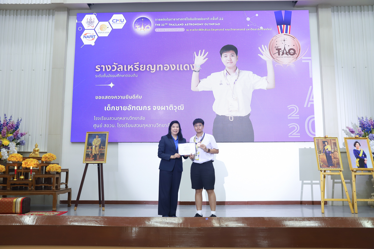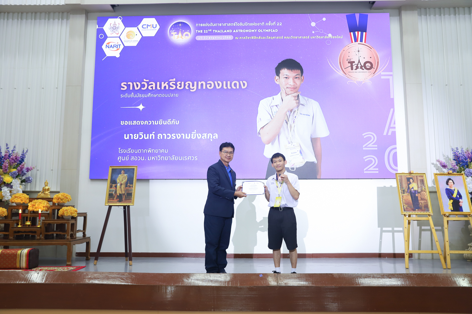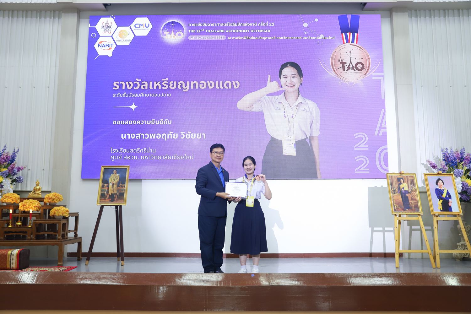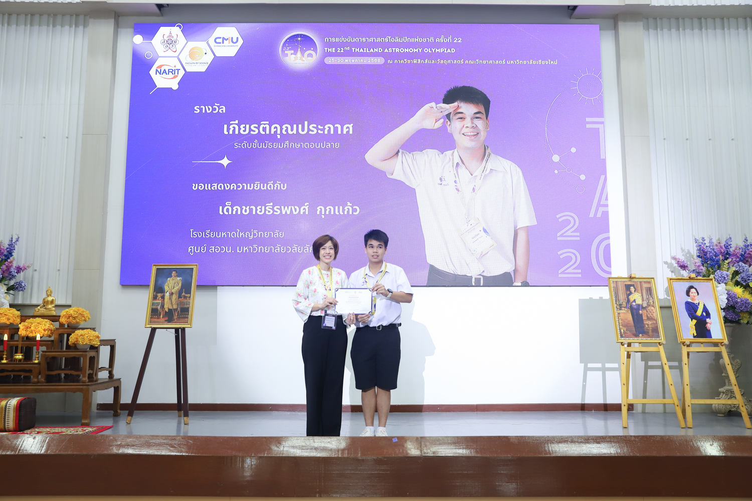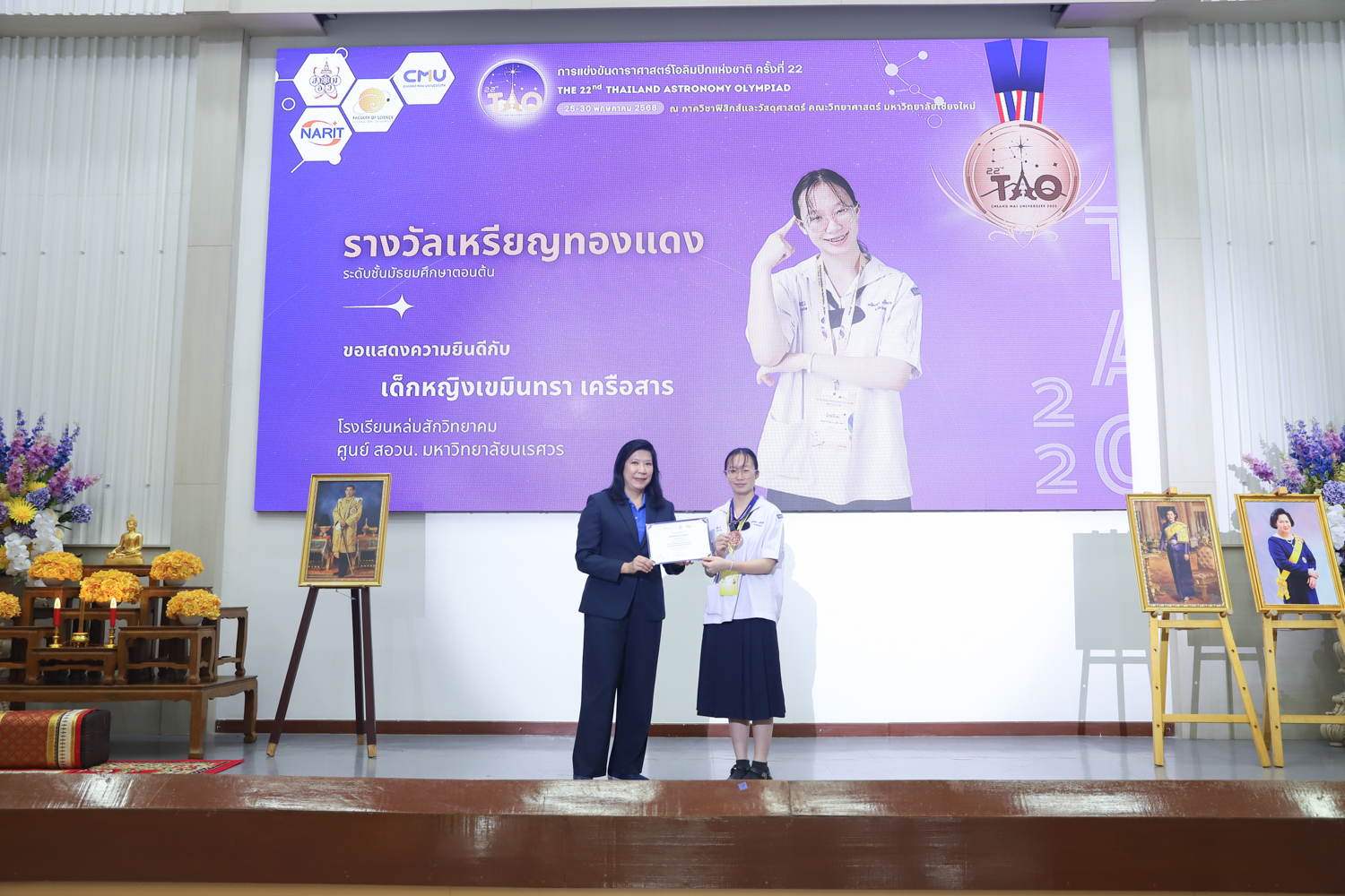 วันที่ 30 พฤษภาคม 2568 คณะวิทยาศาสตร์ มหาวิทยาลัยเชียงใหม่ จัดพิธีปิดการแข่งขันดาราศาสตร์โอลิมปิกระดับชาติ ครั้งที่ 22 (The 22nd Thailand Astronomy Olympiad (22nd TAO)) ณ ห้อง SCB2100 อาคาร 40 ปี คณะวิทยาศาสตร์ โดยได้รับเกียรติจาก รองศาสตราจารย์บุญรักษา สุนทรธรรม กรรมการและประธานสาขาดาราศาสตร์ มูลนิธิ สอวน. เป็นประธานในพิธีปิดการแข่งขัน และรองศาสตราจารย์ ดร.ปิยะพงศ์ เนียมทรัพย์ คณบดีคณะวิทยาศาสตร์ มหาวิทยาลัยเชียงใหม่ กล่าวต้อนรับและกล่าวรายงานการจัดการแข่งขัน โดยมีผู้ทรงคุณวุฒิจากหน่วยงานต่างๆ ตลอดจนครู อาจารย์ และนักเรียนผู้แทนศูนย์ ร่วมเป็นเกียรติในพิธี
