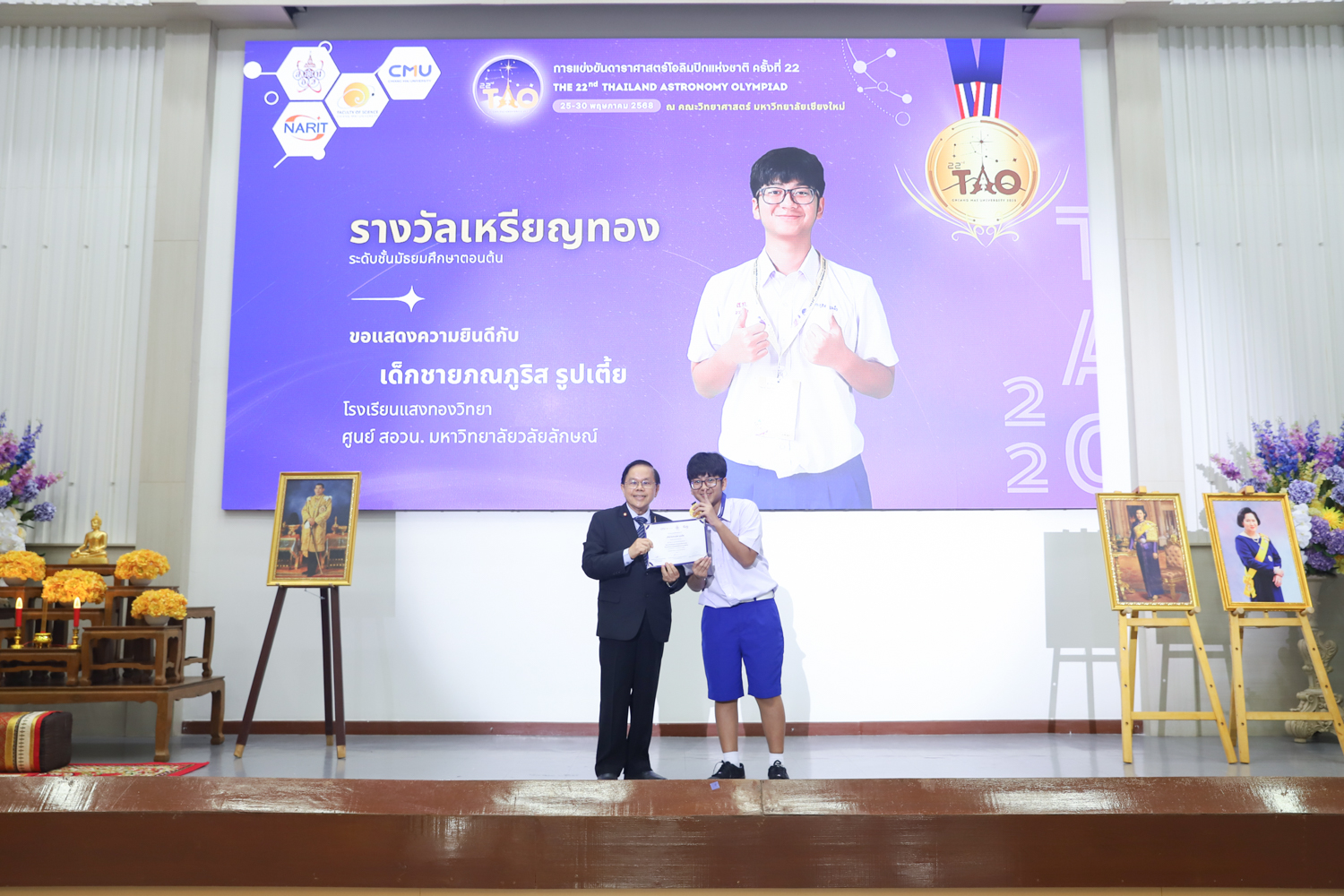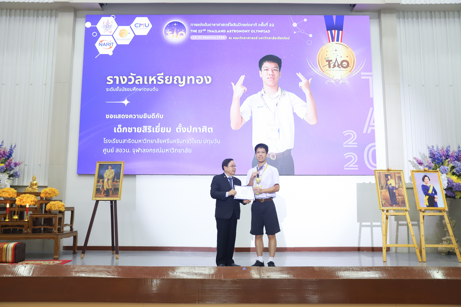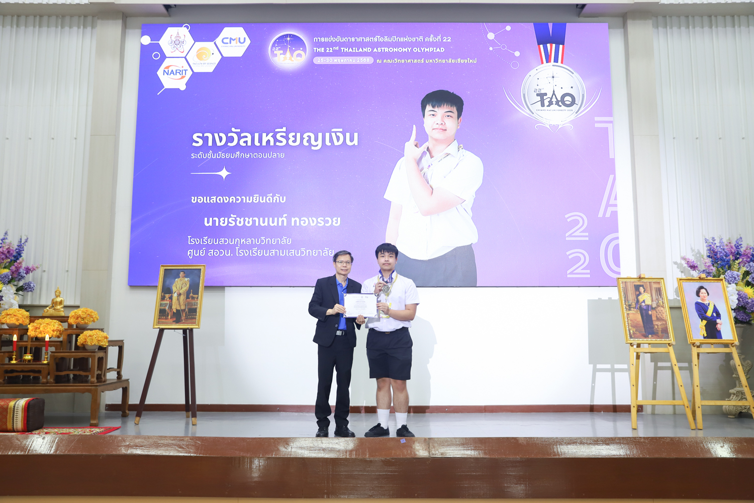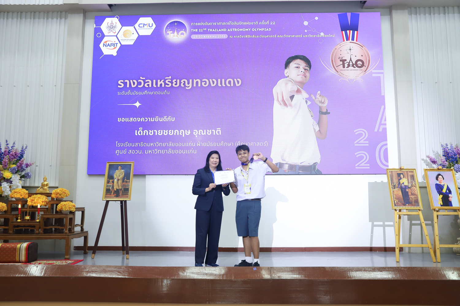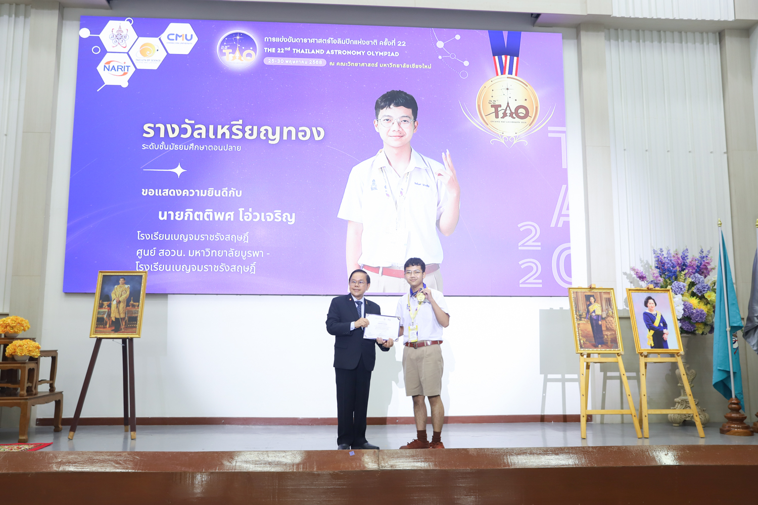 วันที่ 30 พฤษภาคม 2568 คณะวิทยาศาสตร์ มหาวิทยาลัยเชียงใหม่ จัดพิธีปิดการแข่งขันดาราศาสตร์โอลิมปิกระดับชาติ ครั้งที่ 22 (The 22nd Thailand Astronomy Olympiad (22nd TAO)) ณ ห้อง SCB2100 อาคาร 40 ปี คณะวิทยาศาสตร์ โดยได้รับเกียรติจาก รองศาสตราจารย์บุญรักษา สุนทรธรรม กรรมการและประธานสาขาดาราศาสตร์ มูลนิธิ สอวน. เป็นประธานในพิธีปิดการแข่งขัน และรองศาสตราจารย์ ดร.ปิยะพงศ์ เนียมทรัพย์ คณบดีคณะวิทยาศาสตร์ มหาวิทยาลัยเชียงใหม่ กล่าวต้อนรับและกล่าวรายงานการจัดการแข่งขัน โดยมีผู้ทรงคุณวุฒิจากหน่วยงานต่างๆ ตลอดจนครู อาจารย์ และนักเรียนผู้แทนศูนย์ ร่วมเป็นเกียรติในพิธี