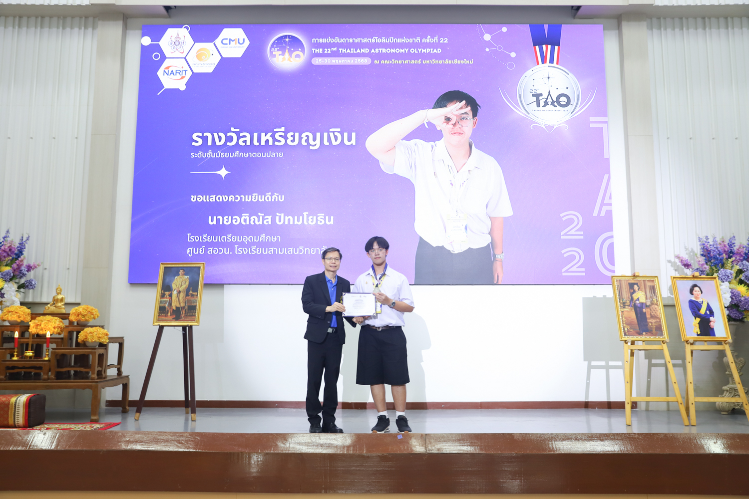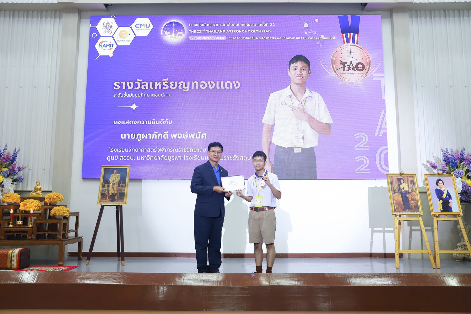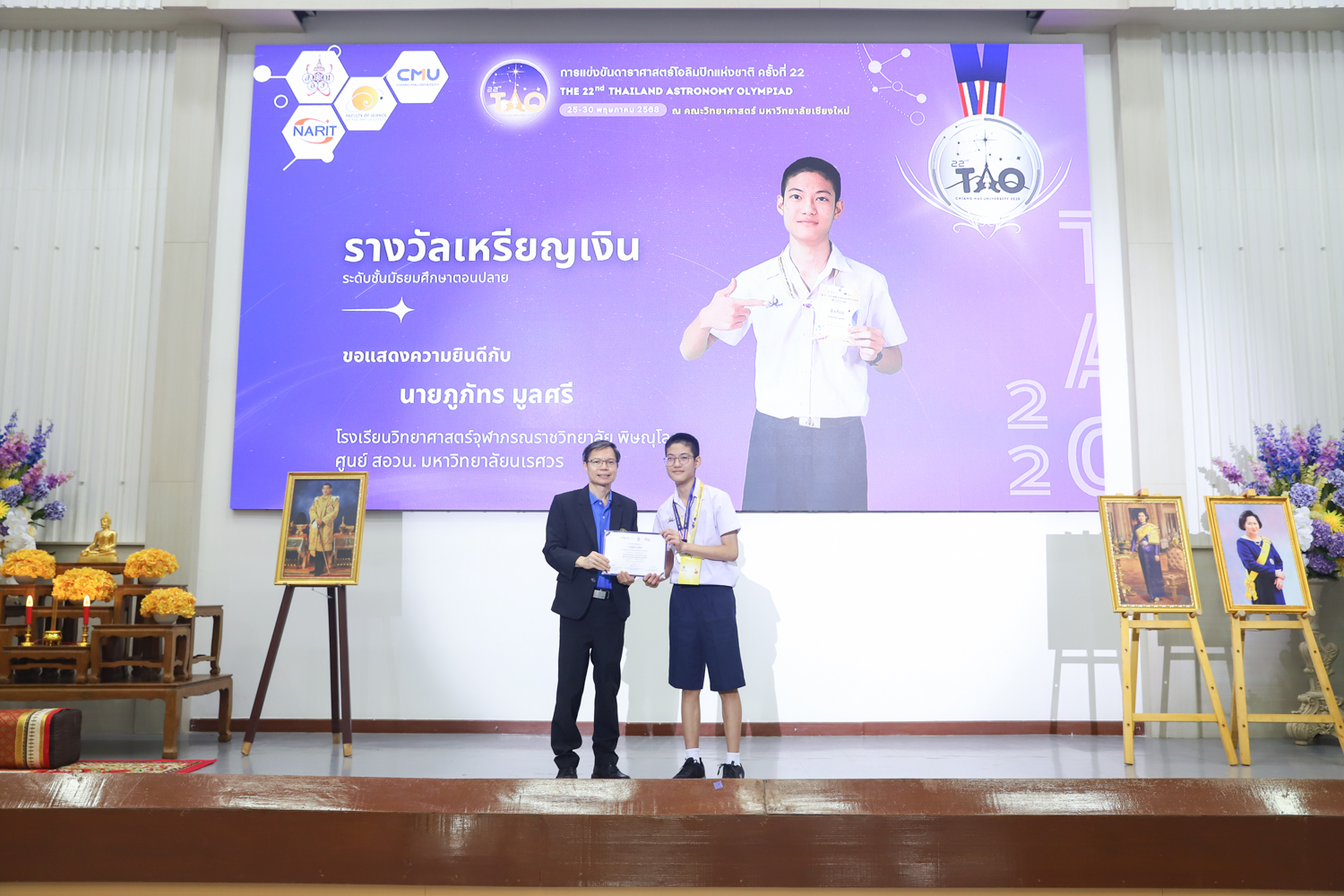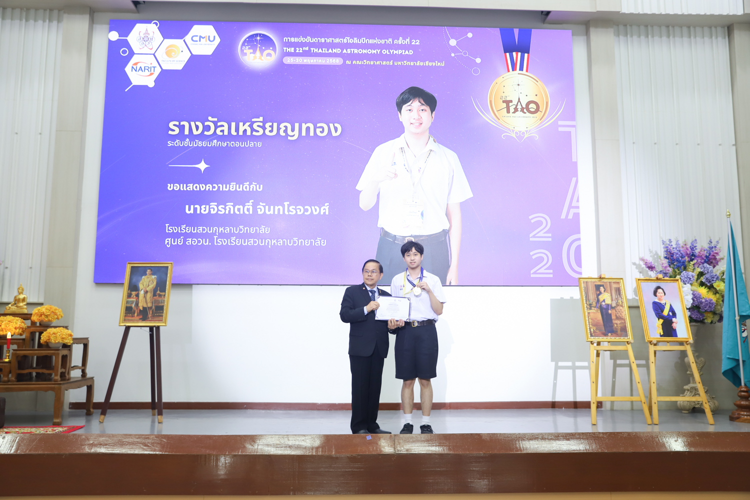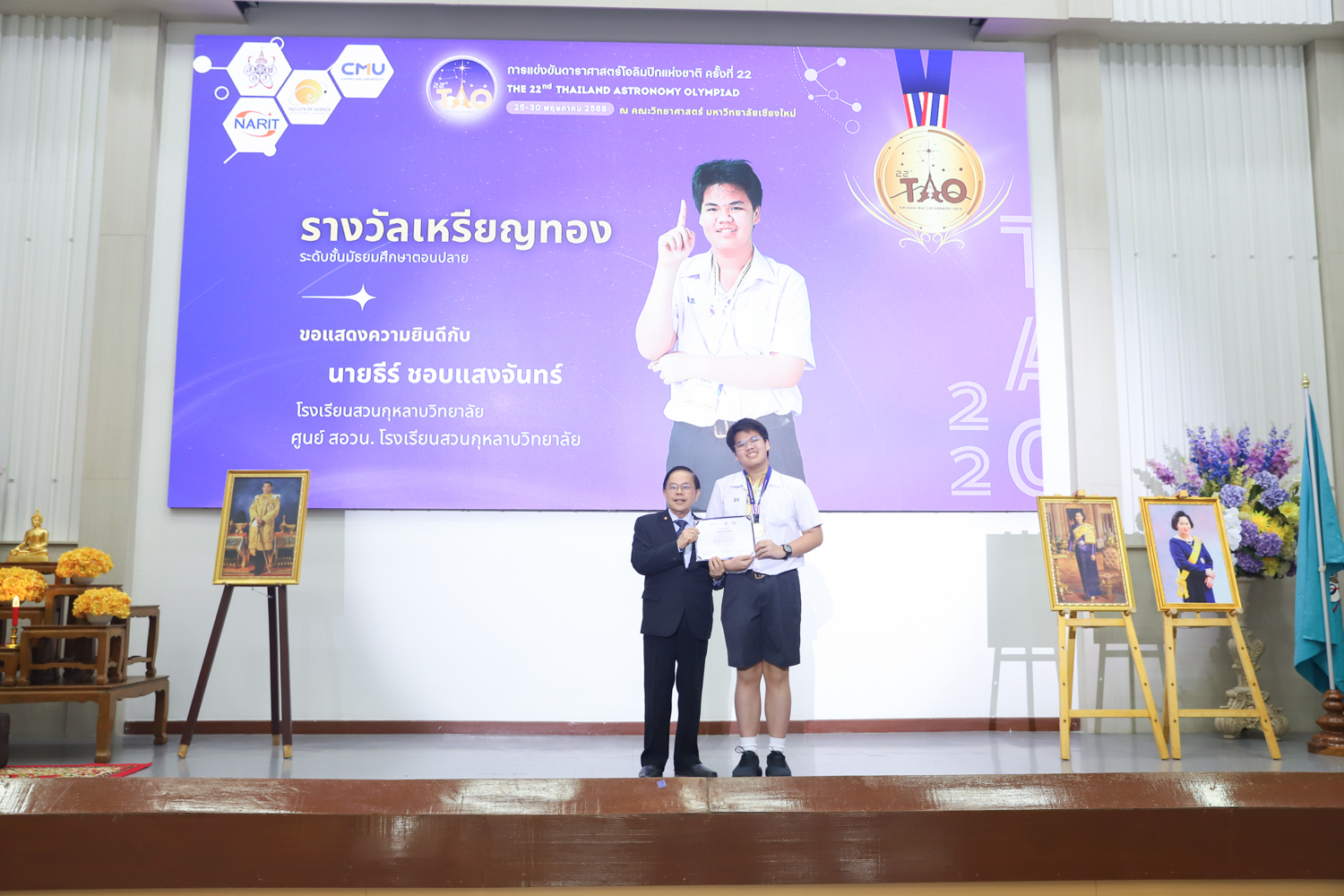 วันที่ 30 พฤษภาคม 2568 คณะวิทยาศาสตร์ มหาวิทยาลัยเชียงใหม่ จัดพิธีปิดการแข่งขันดาราศาสตร์โอลิมปิกระดับชาติ ครั้งที่ 22 (The 22nd Thailand Astronomy Olympiad (22nd TAO)) ณ ห้อง SCB2100 อาคาร 40 ปี คณะวิทยาศาสตร์ โดยได้รับเกียรติจาก รองศาสตราจารย์บุญรักษา สุนทรธรรม กรรมการและประธานสาขาดาราศาสตร์ มูลนิธิ สอวน. เป็นประธานในพิธีปิดการแข่งขัน และรองศาสตราจารย์ ดร.ปิยะพงศ์ เนียมทรัพย์ คณบดีคณะวิทยาศาสตร์ มหาวิทยาลัยเชียงใหม่ กล่าวต้อนรับและกล่าวรายงานการจัดการแข่งขัน โดยมีผู้ทรงคุณวุฒิจากหน่วยงานต่างๆ ตลอดจนครู อาจารย์ และนักเรียนผู้แทนศูนย์ ร่วมเป็นเกียรติในพิธี