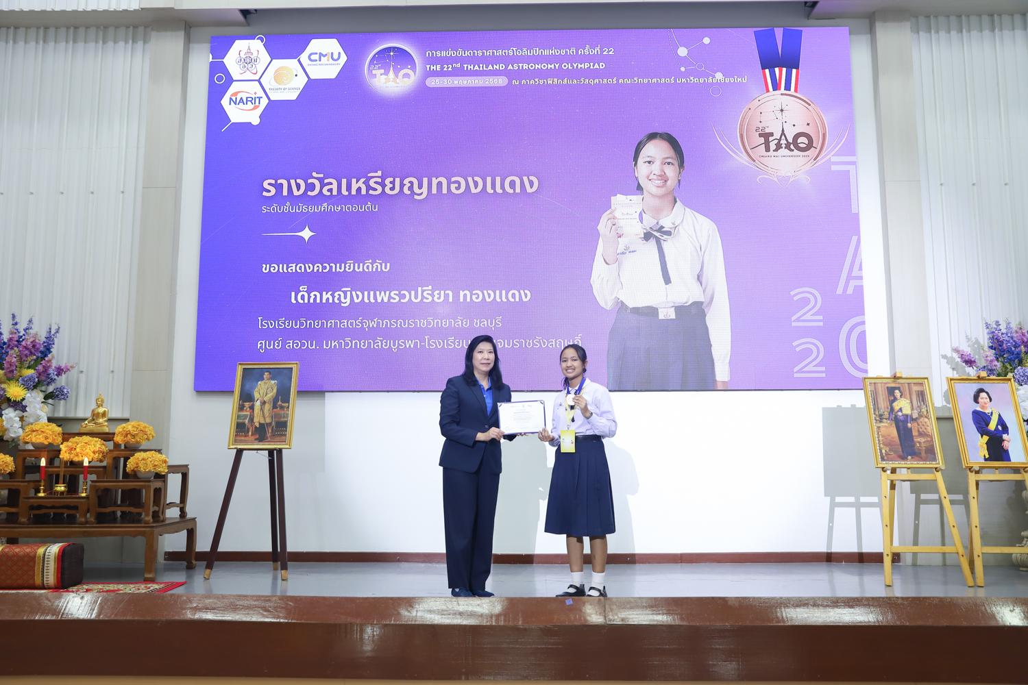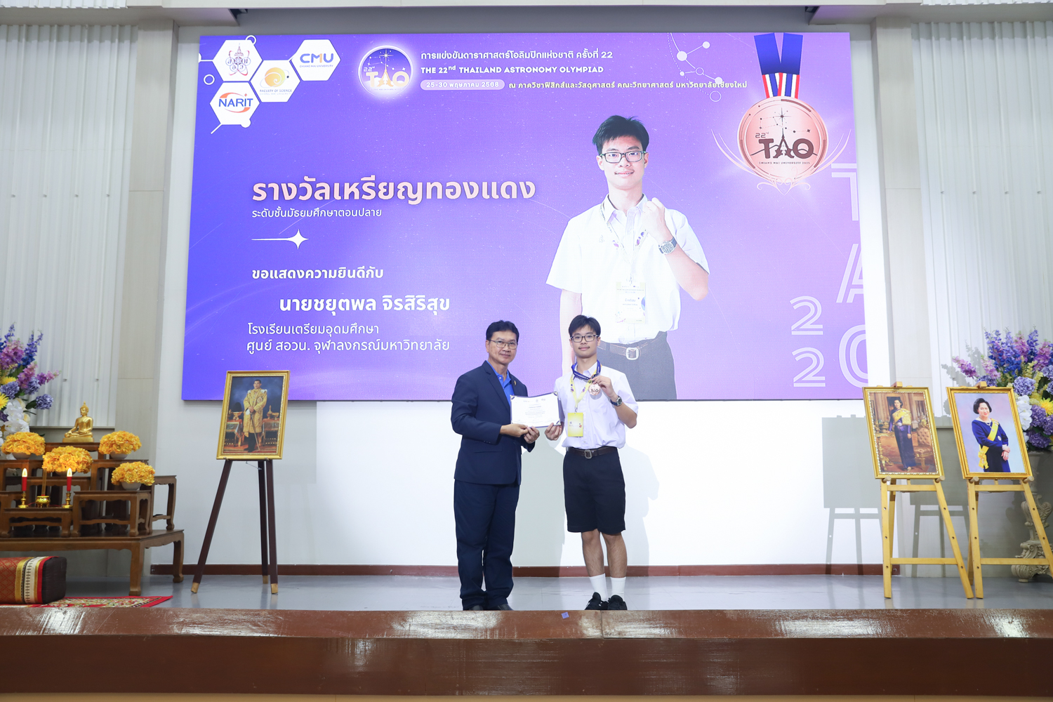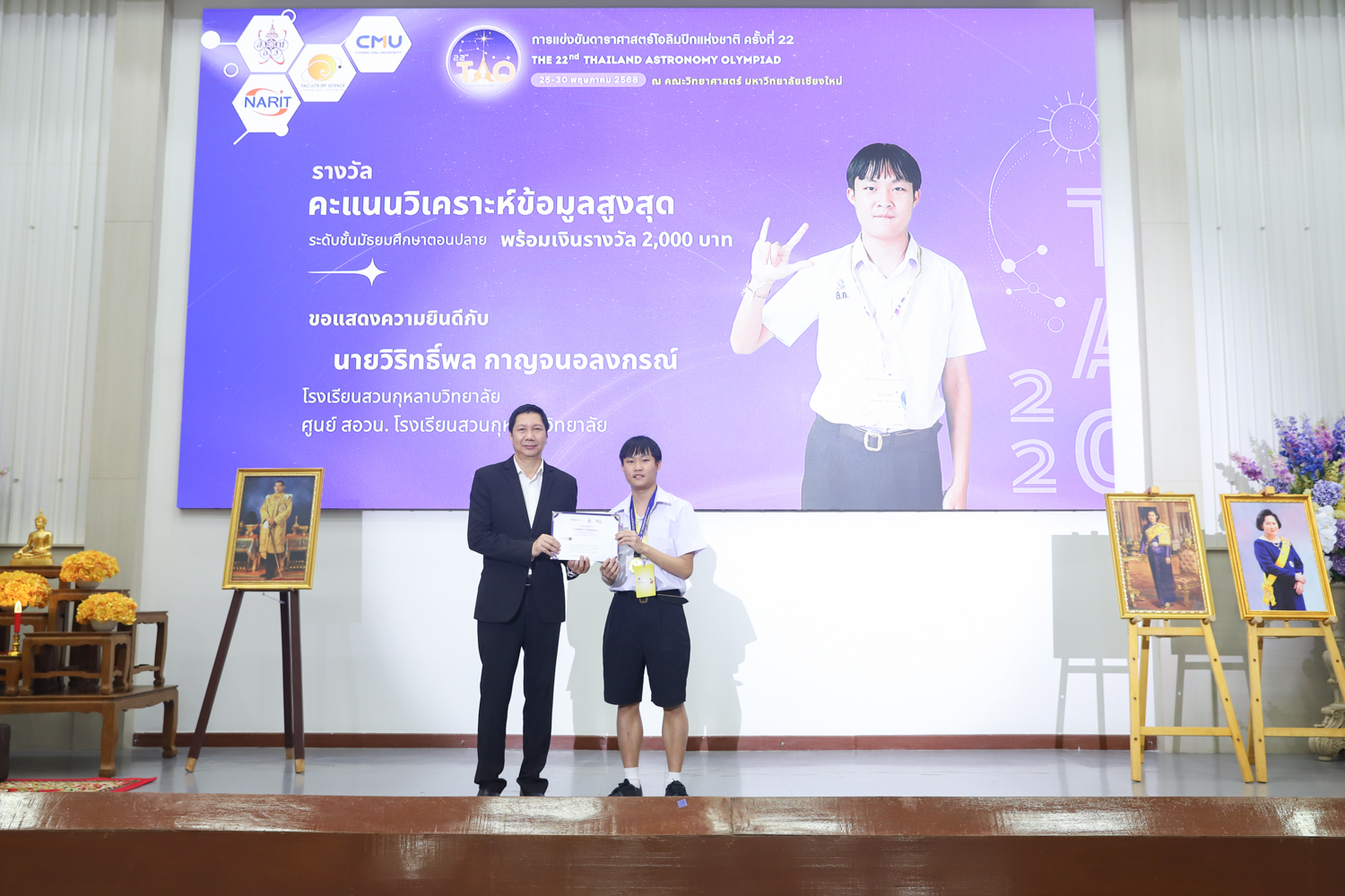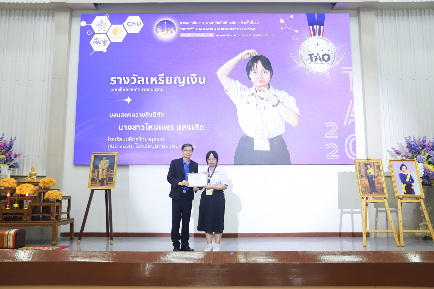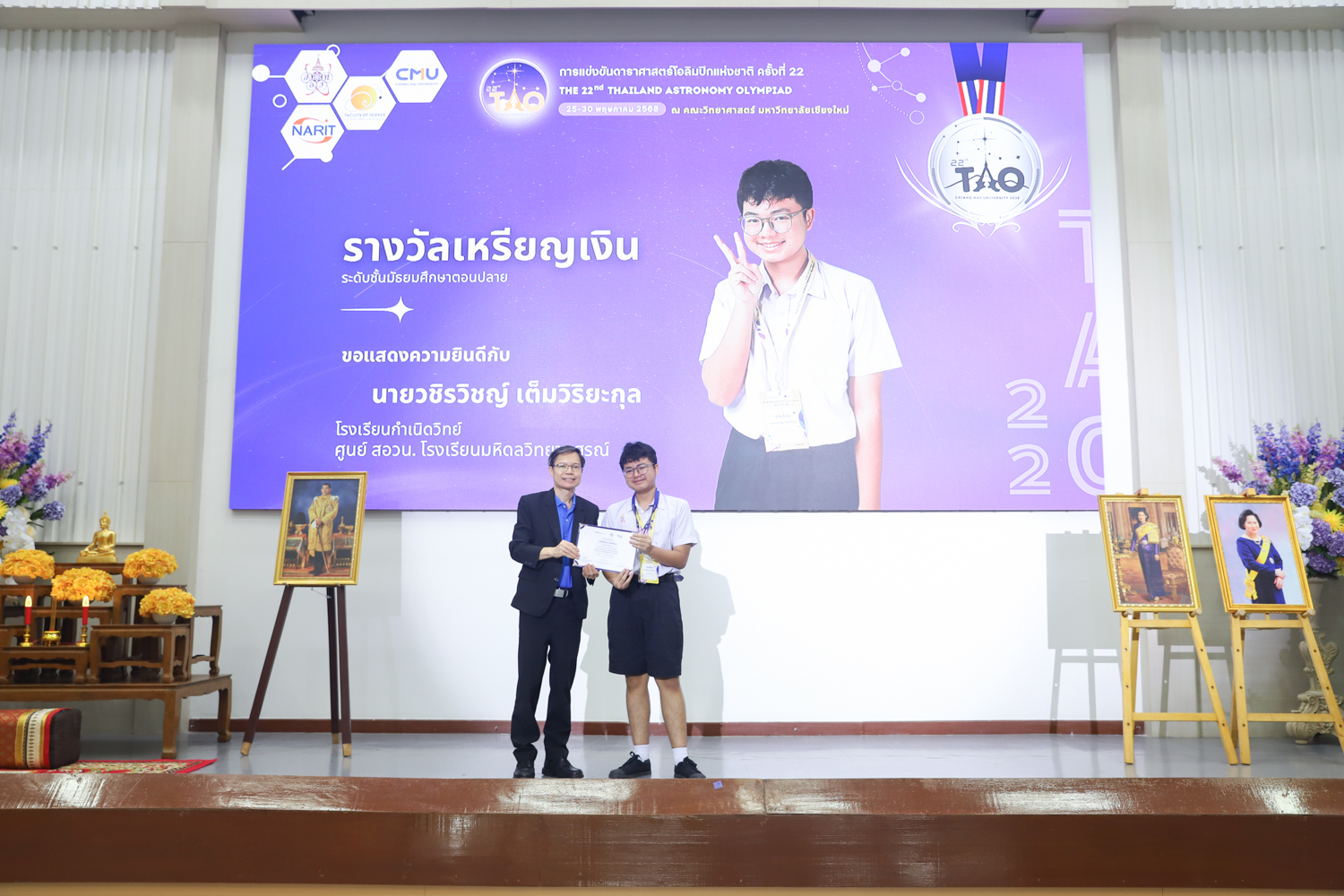 วันที่ 30 พฤษภาคม 2568 คณะวิทยาศาสตร์ มหาวิทยาลัยเชียงใหม่ จัดพิธีปิดการแข่งขันดาราศาสตร์โอลิมปิกระดับชาติ ครั้งที่ 22 (The 22nd Thailand Astronomy Olympiad (22nd TAO)) ณ ห้อง SCB2100 อาคาร 40 ปี คณะวิทยาศาสตร์ โดยได้รับเกียรติจาก รองศาสตราจารย์บุญรักษา สุนทรธรรม กรรมการและประธานสาขาดาราศาสตร์ มูลนิธิ สอวน. เป็นประธานในพิธีปิดการแข่งขัน และรองศาสตราจารย์ ดร.ปิยะพงศ์ เนียมทรัพย์ คณบดีคณะวิทยาศาสตร์ มหาวิทยาลัยเชียงใหม่ กล่าวต้อนรับและกล่าวรายงานการจัดการแข่งขัน โดยมีผู้ทรงคุณวุฒิจากหน่วยงานต่างๆ ตลอดจนครู อาจารย์ และนักเรียนผู้แทนศูนย์ ร่วมเป็นเกียรติในพิธี