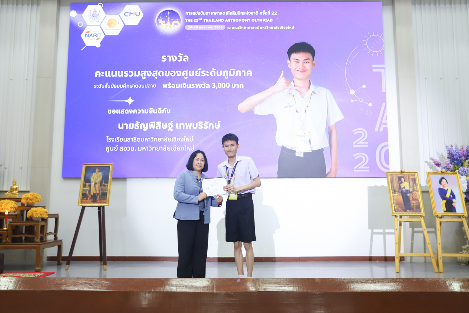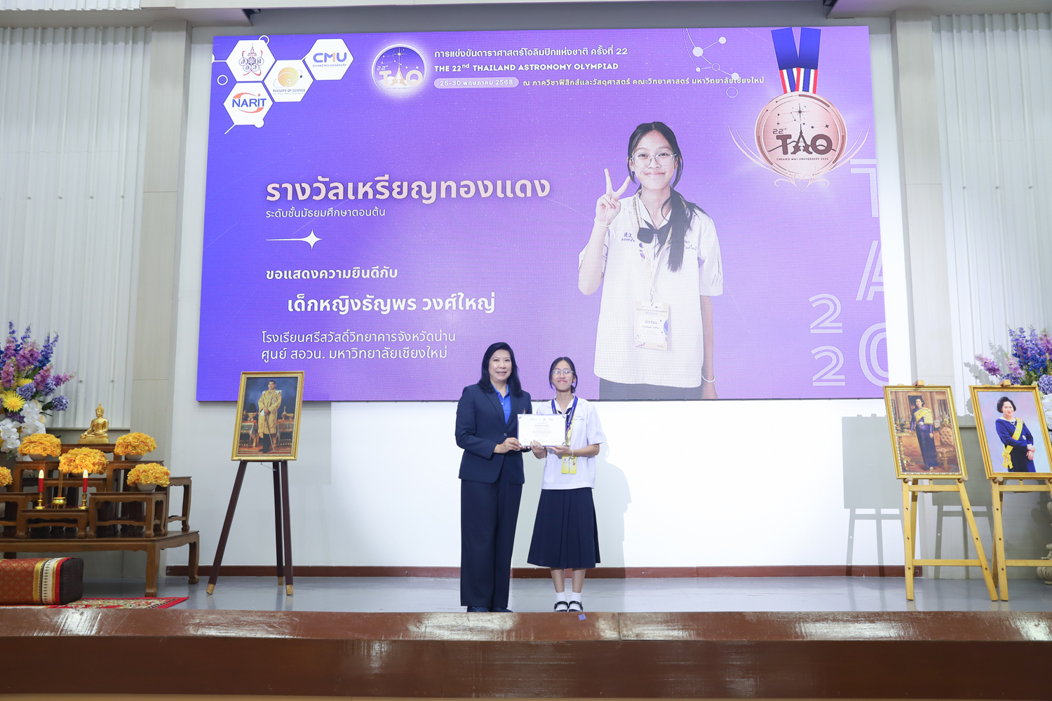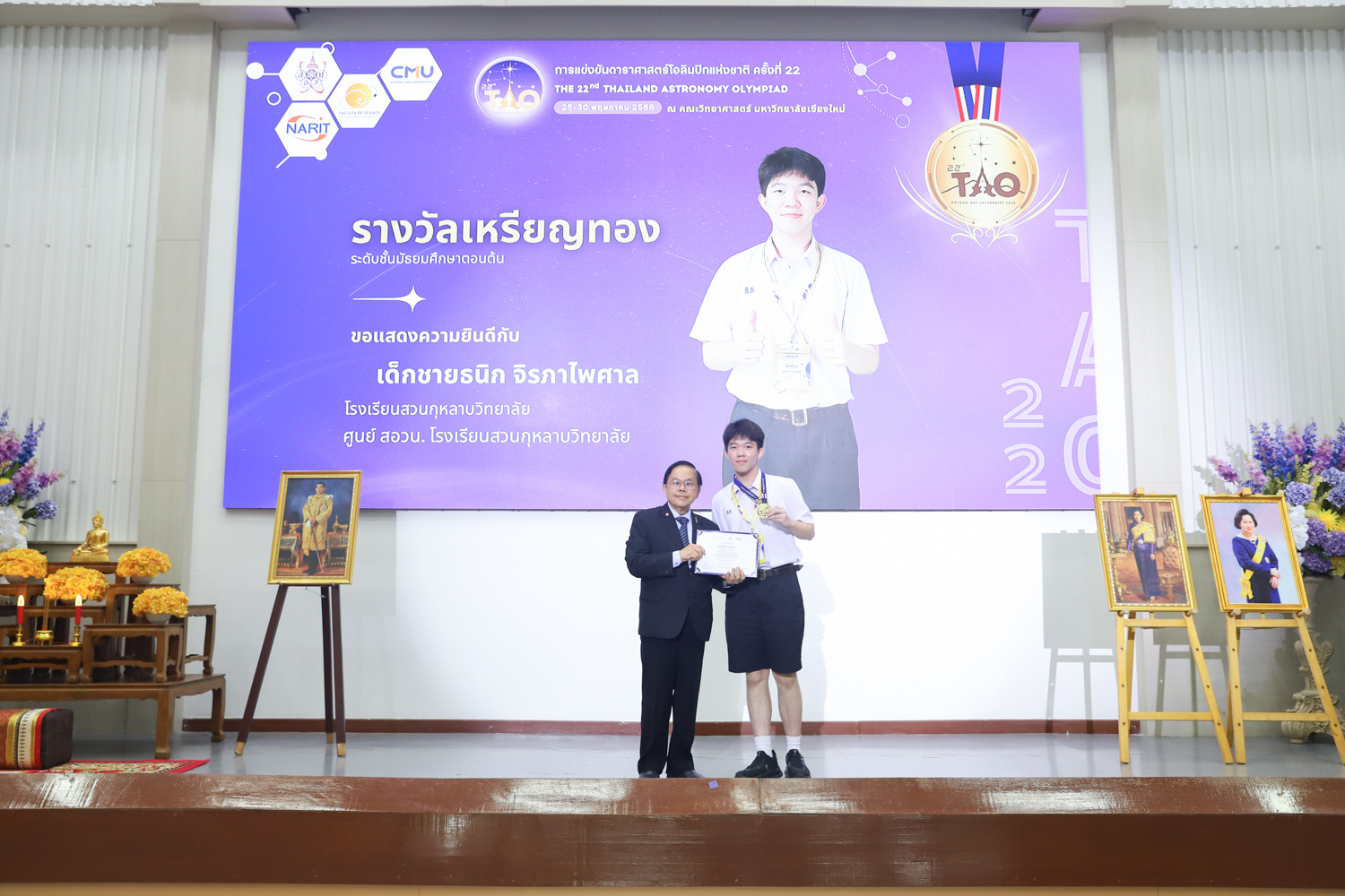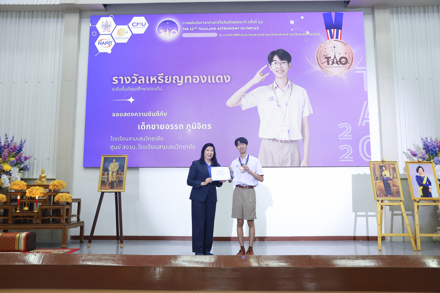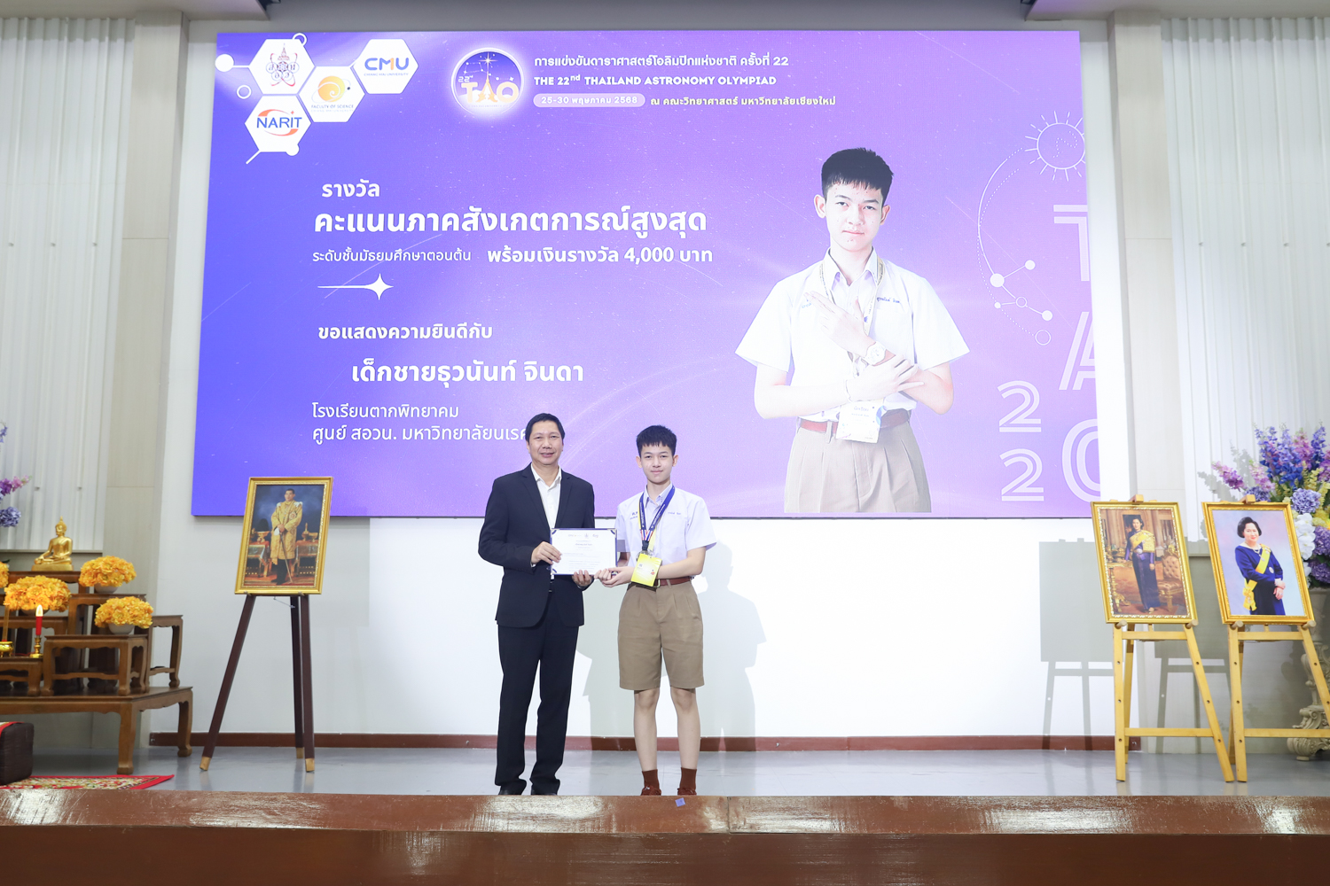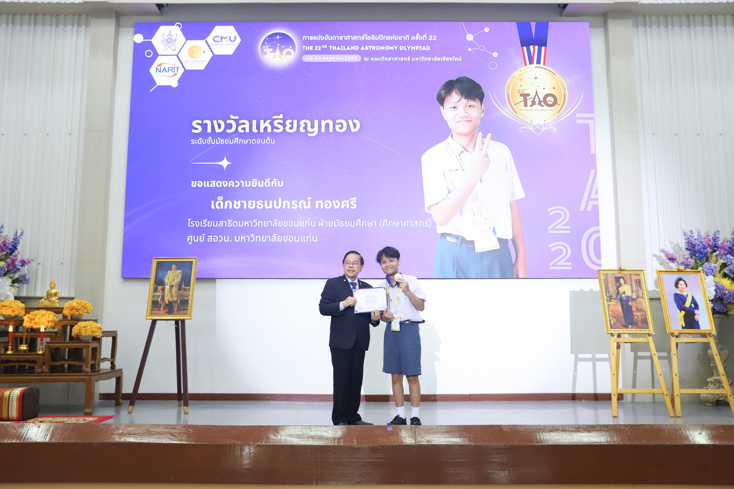 วันที่ 30 พฤษภาคม 2568 คณะวิทยาศาสตร์ มหาวิทยาลัยเชียงใหม่ จัดพิธีปิดการแข่งขันดาราศาสตร์โอลิมปิกระดับชาติ ครั้งที่ 22 (The 22nd Thailand Astronomy Olympiad (22nd TAO)) ณ ห้อง SCB2100 อาคาร 40 ปี คณะวิทยาศาสตร์ โดยได้รับเกียรติจาก รองศาสตราจารย์บุญรักษา สุนทรธรรม กรรมการและประธานสาขาดาราศาสตร์ มูลนิธิ สอวน. เป็นประธานในพิธีปิดการแข่งขัน และรองศาสตราจารย์ ดร.ปิยะพงศ์ เนียมทรัพย์ คณบดีคณะวิทยาศาสตร์ มหาวิทยาลัยเชียงใหม่ กล่าวต้อนรับและกล่าวรายงานการจัดการแข่งขัน โดยมีผู้ทรงคุณวุฒิจากหน่วยงานต่างๆ ตลอดจนครู อาจารย์ และนักเรียนผู้แทนศูนย์ ร่วมเป็นเกียรติในพิธี