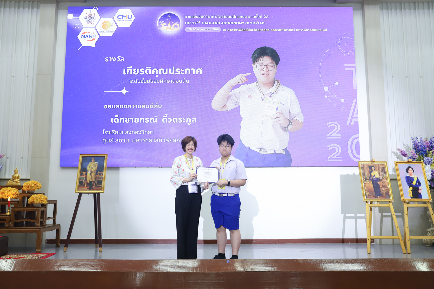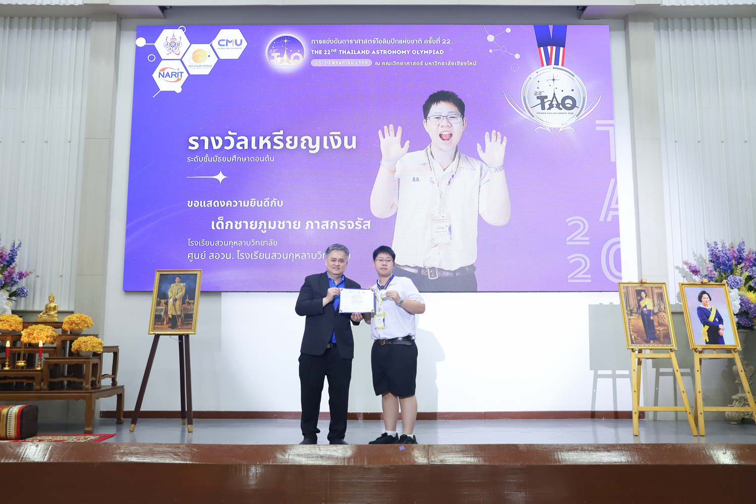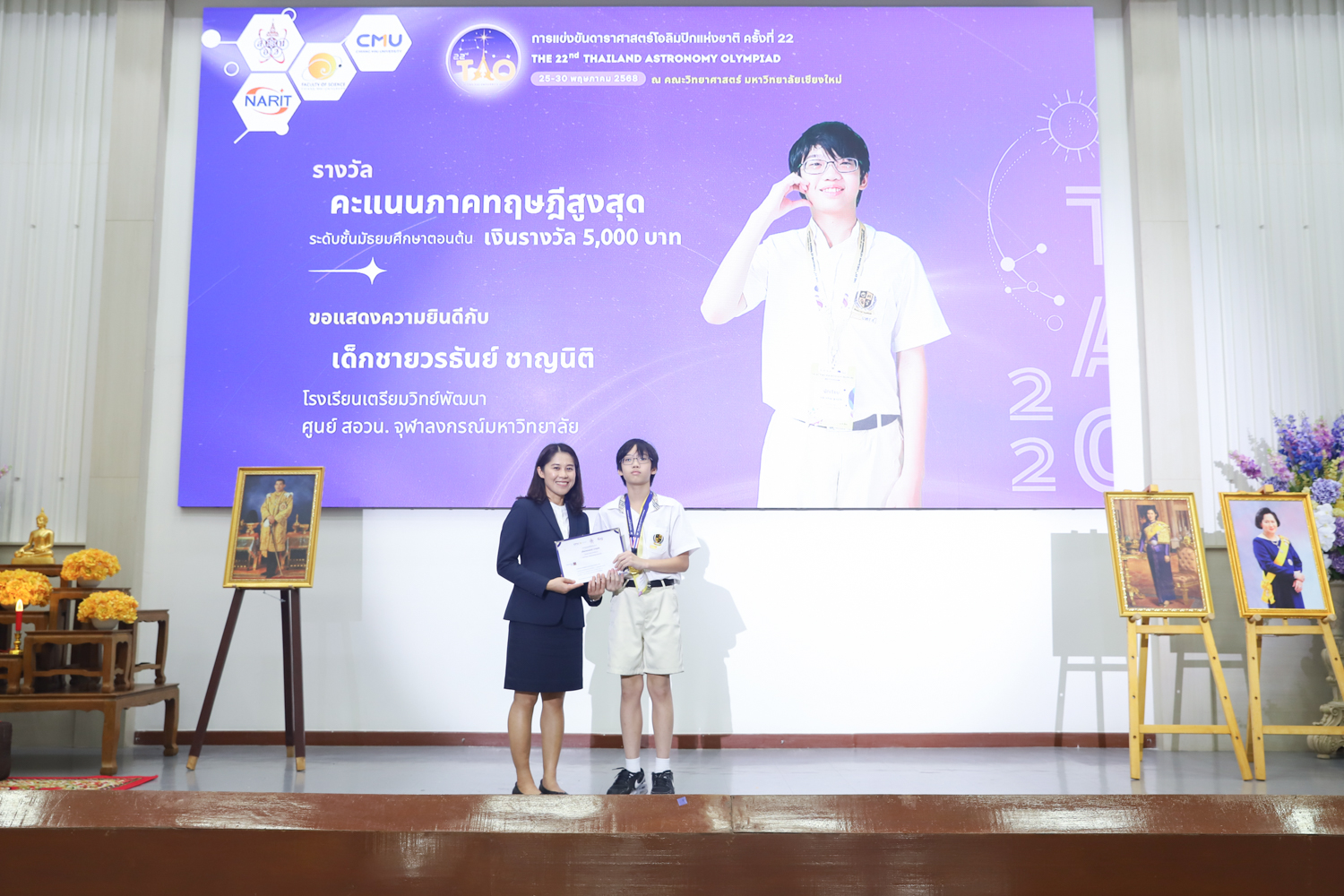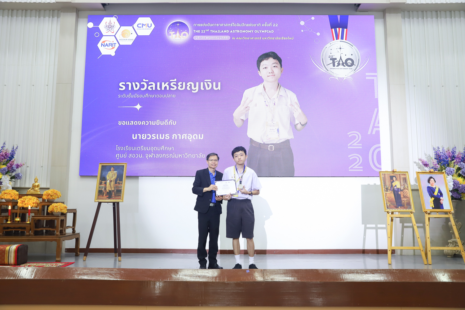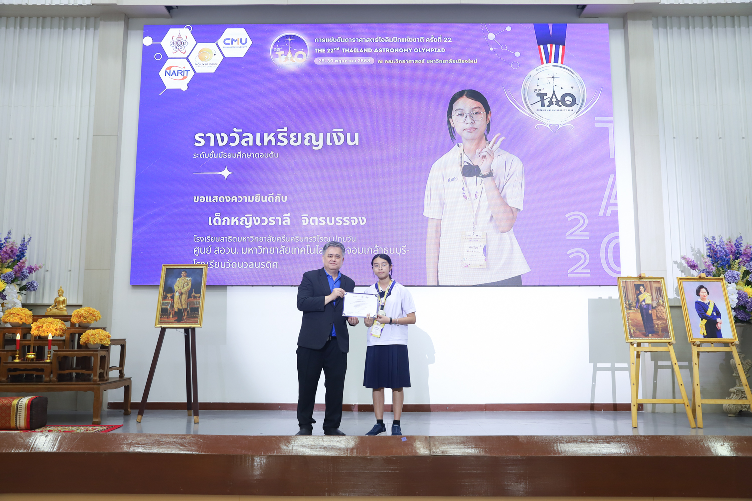 วันที่ 30 พฤษภาคม 2568 คณะวิทยาศาสตร์ มหาวิทยาลัยเชียงใหม่ จัดพิธีปิดการแข่งขันดาราศาสตร์โอลิมปิกระดับชาติ ครั้งที่ 22 (The 22nd Thailand Astronomy Olympiad (22nd TAO)) ณ ห้อง SCB2100 อาคาร 40 ปี คณะวิทยาศาสตร์ โดยได้รับเกียรติจาก รองศาสตราจารย์บุญรักษา สุนทรธรรม กรรมการและประธานสาขาดาราศาสตร์ มูลนิธิ สอวน. เป็นประธานในพิธีปิดการแข่งขัน และรองศาสตราจารย์ ดร.ปิยะพงศ์ เนียมทรัพย์ คณบดีคณะวิทยาศาสตร์ มหาวิทยาลัยเชียงใหม่ กล่าวต้อนรับและกล่าวรายงานการจัดการแข่งขัน โดยมีผู้ทรงคุณวุฒิจากหน่วยงานต่างๆ ตลอดจนครู อาจารย์ และนักเรียนผู้แทนศูนย์ ร่วมเป็นเกียรติในพิธี