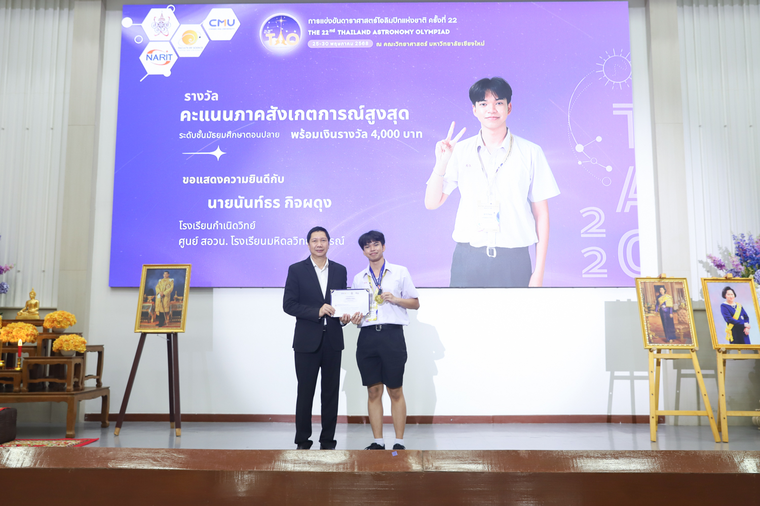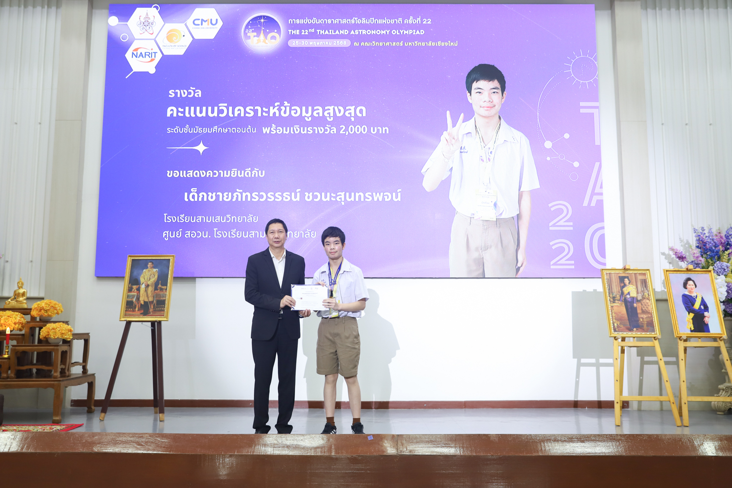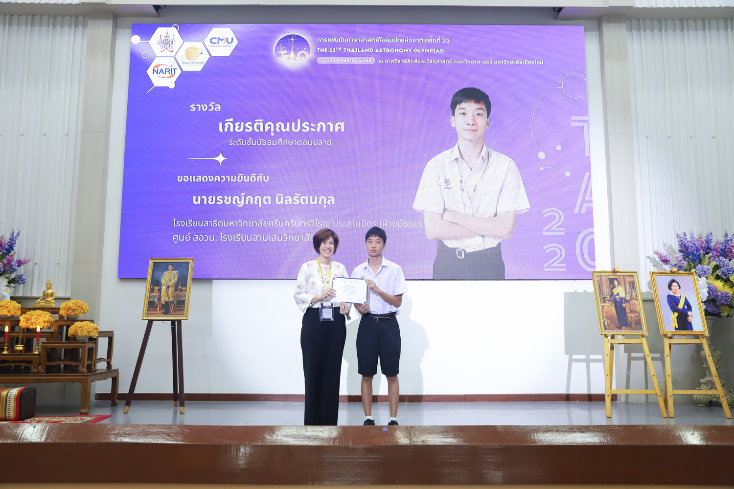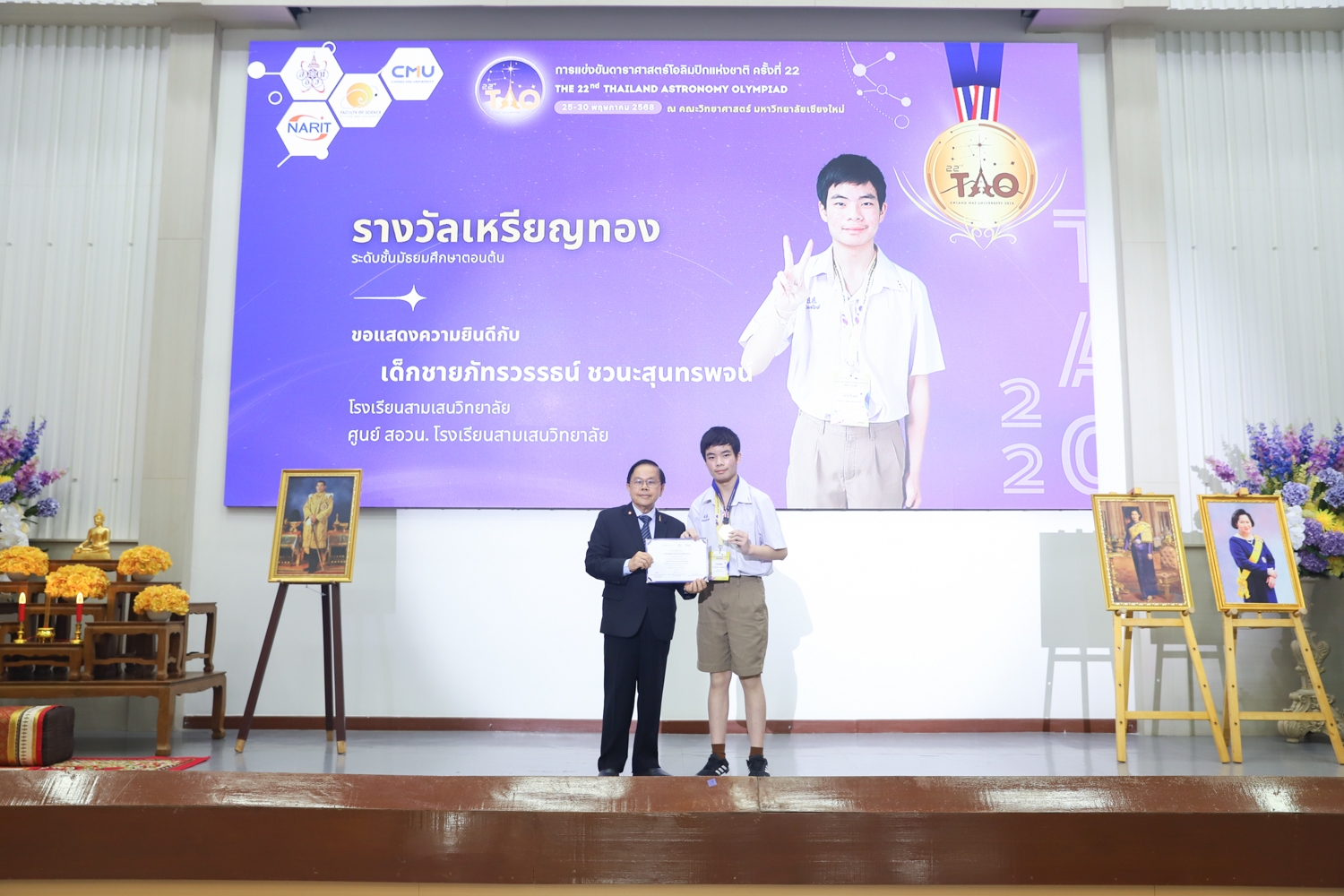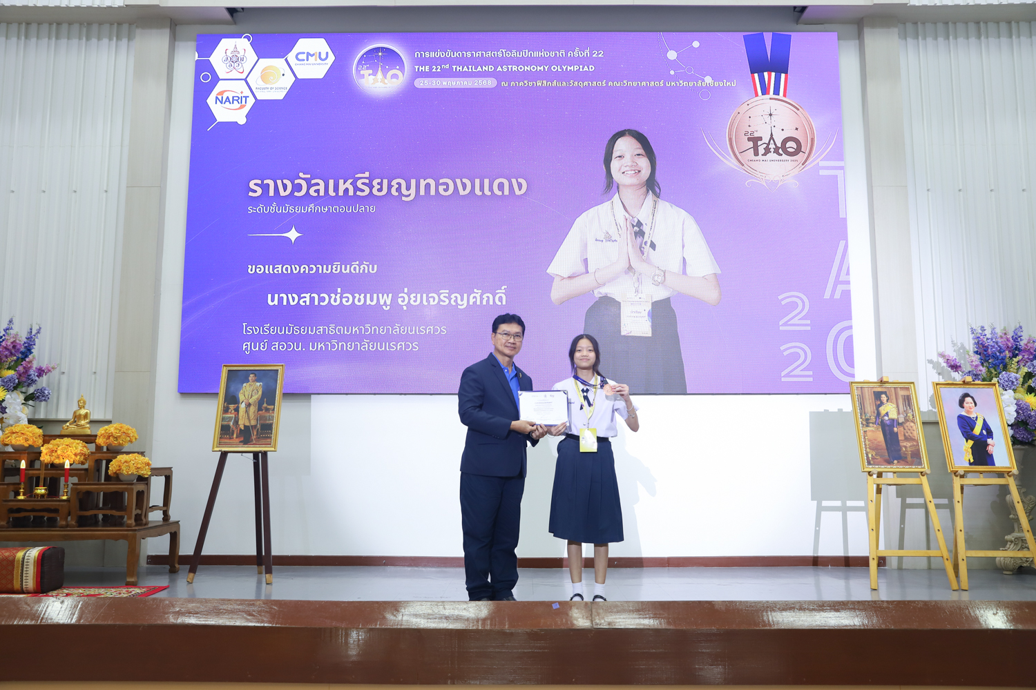 วันที่ 30 พฤษภาคม 2568 คณะวิทยาศาสตร์ มหาวิทยาลัยเชียงใหม่ จัดพิธีปิดการแข่งขันดาราศาสตร์โอลิมปิกระดับชาติ ครั้งที่ 22 (The 22nd Thailand Astronomy Olympiad (22nd TAO)) ณ ห้อง SCB2100 อาคาร 40 ปี คณะวิทยาศาสตร์ โดยได้รับเกียรติจาก รองศาสตราจารย์บุญรักษา สุนทรธรรม กรรมการและประธานสาขาดาราศาสตร์ มูลนิธิ สอวน. เป็นประธานในพิธีปิดการแข่งขัน และรองศาสตราจารย์ ดร.ปิยะพงศ์ เนียมทรัพย์ คณบดีคณะวิทยาศาสตร์ มหาวิทยาลัยเชียงใหม่ กล่าวต้อนรับและกล่าวรายงานการจัดการแข่งขัน โดยมีผู้ทรงคุณวุฒิจากหน่วยงานต่างๆ ตลอดจนครู อาจารย์ และนักเรียนผู้แทนศูนย์ ร่วมเป็นเกียรติในพิธี
