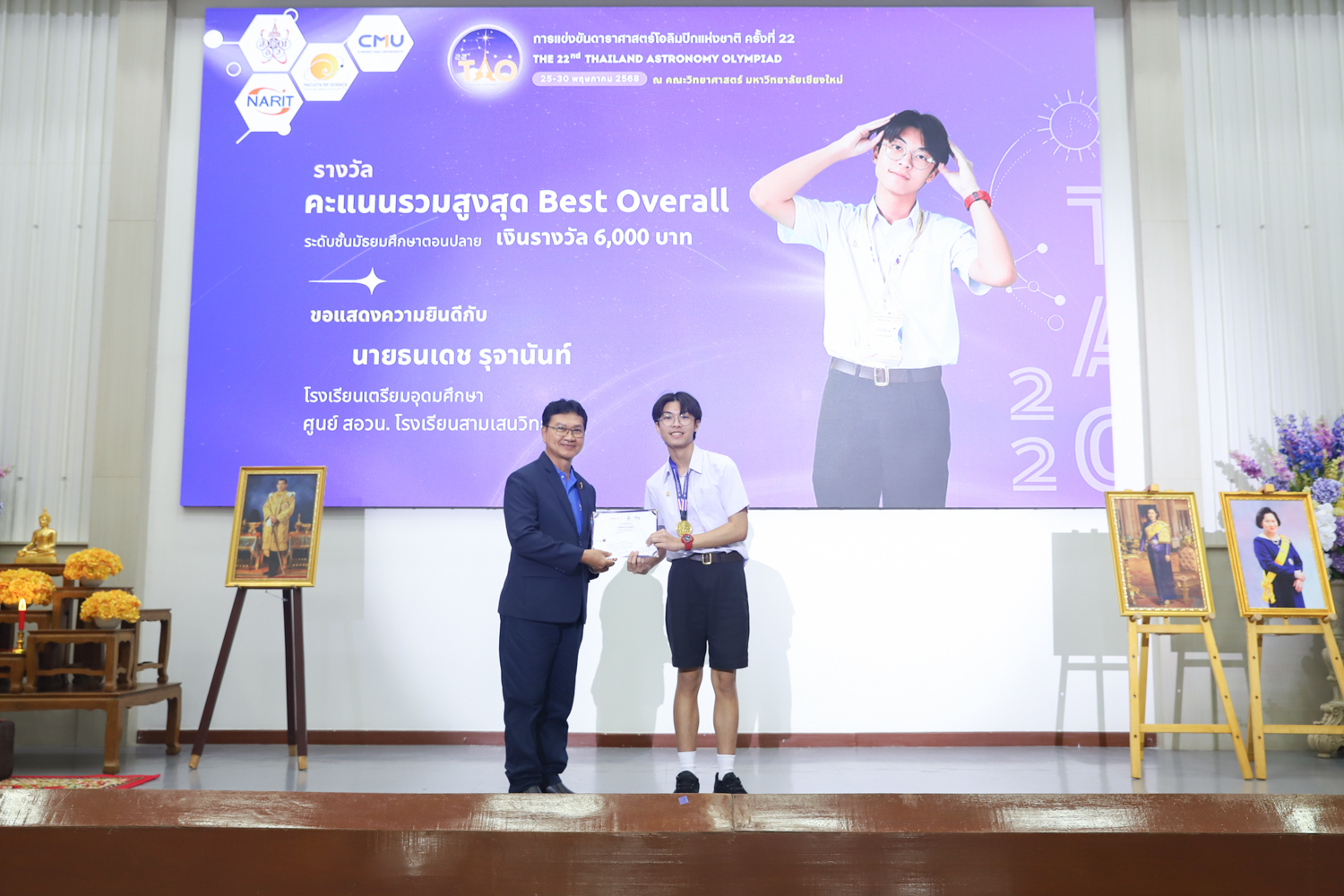 โดยนักเรียนที่มีคะแนนสูงสุด 5 ลำดับแรกในแต่ละระดับ จะได้รับสิทธิ์เป็นผู้แทนประเทศไทยเข้าร่วมการแข่งขันดาราศาสตร์โอลิมปิกระดับนานาชาติ