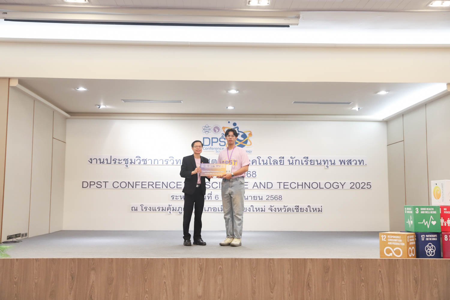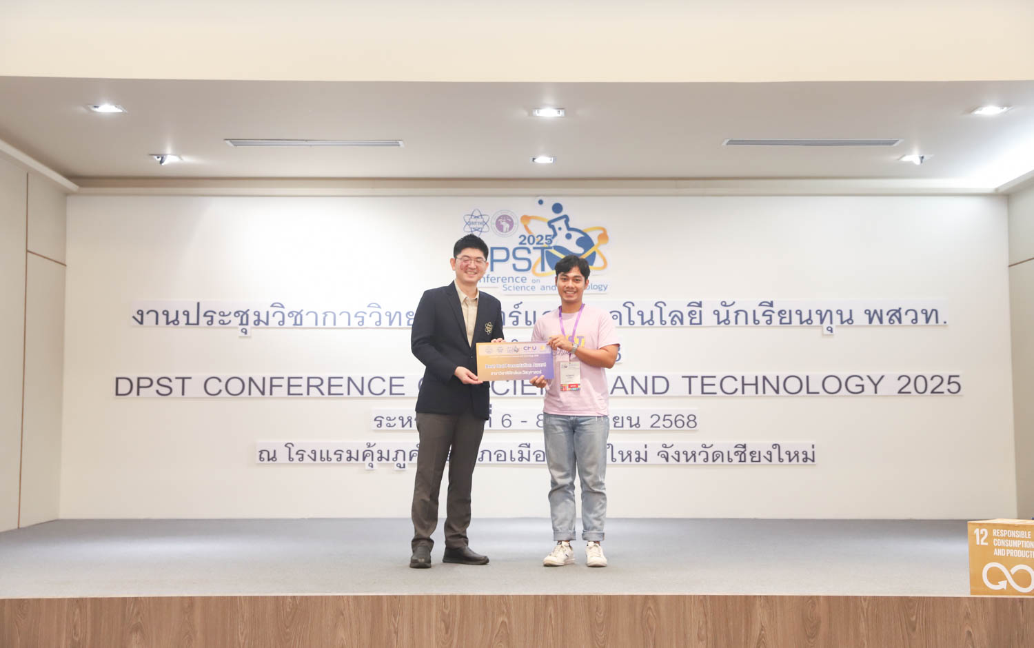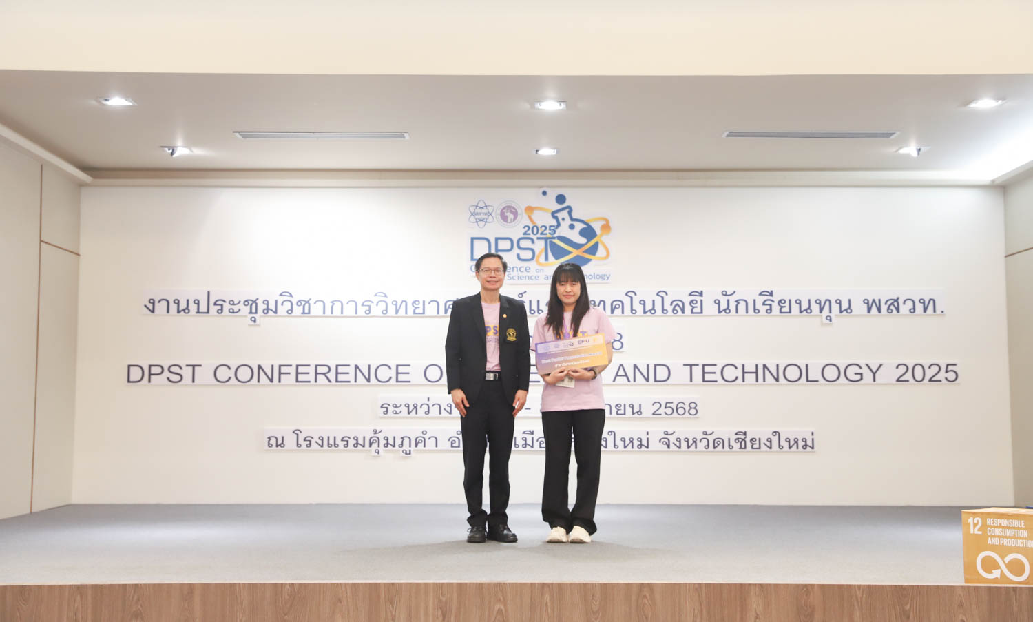 วันที่ 8 มิถุนายน 2568 คณะวิทยาศาสตร์ มหาวิทยาลัยเชียงใหม่ จัดพิธีปิดงานประชุมวิชาการวิทยาศาสตร์และเทคโนโลยี นักเรียนทุน พสวท. ประจำปี 2568 ณ โรงแรมคุ้มภูคำ จังหวัดเชียงใหม่ โดยได้รับเกียรติจาก รองศาสตราจารย์ธีระเดช เจียรสุขสกุล ผู้อำนวยการสถาบันส่งเสริมการสอนวิทยาศาสตร์และเทคโนโลยี (สสวท.) เป็นประธานในพิธีปิดงาน และรองศาสตราจารย์ ดร.ปิยะพงศ์ เนียมทรัพย์ คณบดีคณะวิทยาศาสตร์ มหาวิทยาลัยเชียงใหม่ ร่วมเป็นเกียรติในพิธี โดยภายในงานมีการมอบรางวัลการนำเสนอผลงานวิชาการ และการมอบธงแก่เจ้าภาพในปีถัดไป