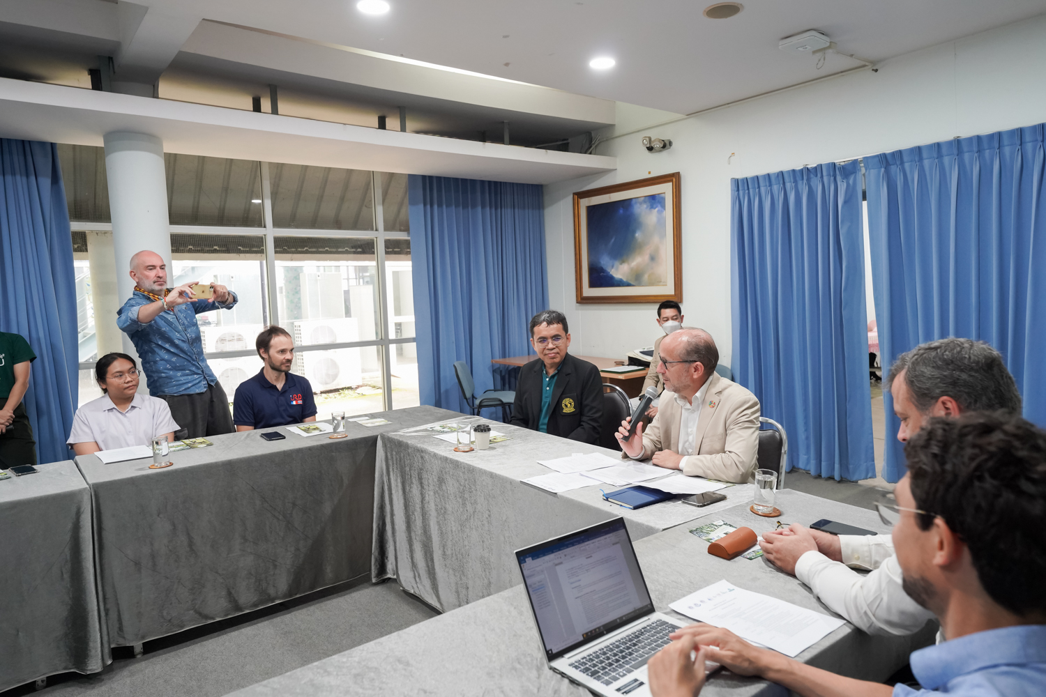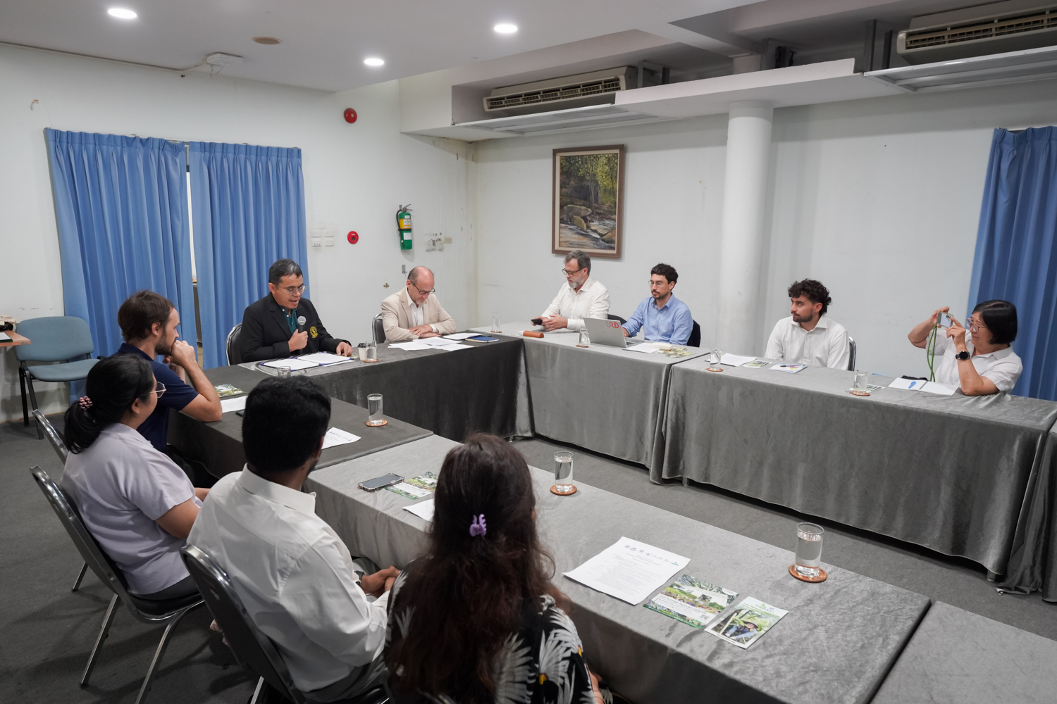 วันที่ 18 มิถุนายน 2568 รองศาสตราจารย์ ดร. จรูญ จักร์มุณี รองคณบดีคณะวิทยาศาสตร์ ให้เกียรติกล่าวต้อนรับและบรรยายภาพรวมของคณะวิทยาศาสตร์ให้แก่คณะผู้แทนจาก IRD (Institut de Recherche pour le Développement) หรือ สถาบันวิจัยแห่งชาติฝรั่งเศสเพื่อการพัฒนาอย่างยั่งยืน นำโดย Mr. Gilles Pecassou, Mr. Vincent Drapeau และ Dr. Xavier Mari ในโอกาสเดินทางเข้าตรวจเยี่ยมกิจกรรมการวิจัยที่ดำเนินการภายใต้ความร่วมมือระหว่างคณะวิทยาศาสตร์ และ IRD ณ ศูนย์ธรรมชาติวิทยาดอยสุเทพเฉลิมพระเกียรติฯ คณะวิทยาศาสตร์ มหาวิทยาลัยเชียงใหม่ โดยมีผู้บริหาร คณาจารย์ และนักวิจัยที่เกี่ยวข้อง ร่วมให้การต้อนรับ