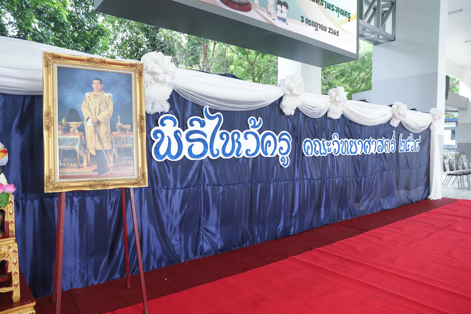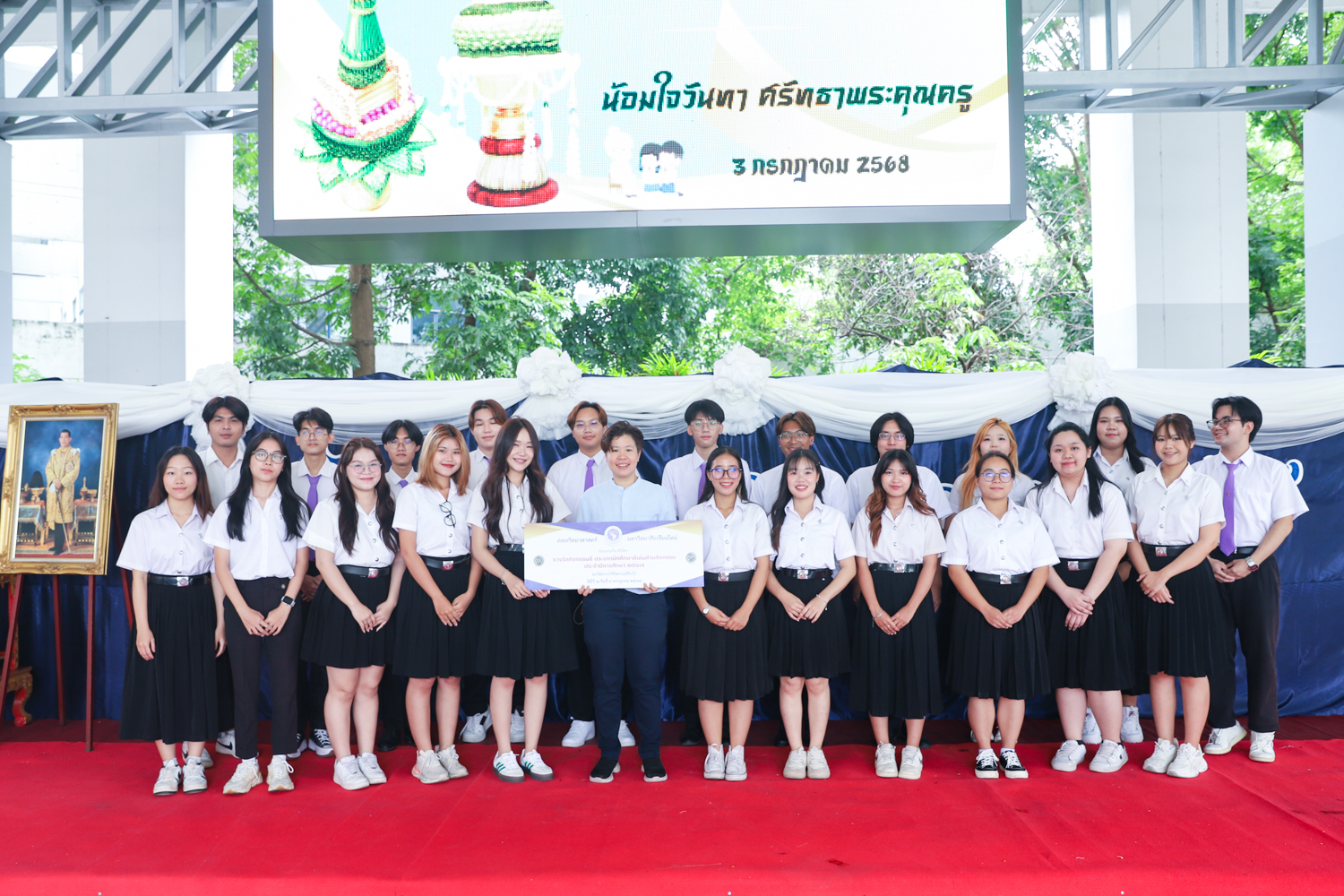 คณะวิทยาศาสตร์จัดพิธีไหว้ครู ประจำปี 2568 เพื่อให้นักศึกษาคณะวิทยาศาสตร์ทุกชั้นปี โดยเฉพาะนักศึกษาชั้นปีที่ 1 รหัส 68 ได้แสดงความเคารพนอบน้อมต่อครู อาจารย์ที่ประสิทธิ์ประสาทวิชาความรู้ ด้วยการนำพานดอกไม้ ธูปเทียน และกรวยดอกไม้มาไหว้ครูโดยพร้อมเพรียงกัน โดยมีรองศาสตราจารย์ ดร.ปิยะพงศ์ เนียมทรัพย์ คณบดีคณะวิทยาศาสตร์ เป็นประธานในพิธี พร้อมด้วยคณาจารย์จากทุกภาควิชาร่วมเป็นเกียรติในพิธี