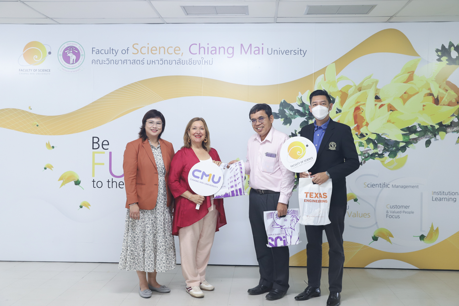 รองศาสตราจารย์ ดร. จรูญ จักร์มุณี รองคณบดีคณะวิทยาศาสตร์ ให้การต้อนรับคณะผู้แทนจาก University of Texas at Austin, USA ประกอบด้วย Ms. Helena Wilkins-Versalovic, Director of International Engineering Programs at the Cockrell School of Engineering, and Dr. Nuttada Panpradist, Assistant Professor in the Department of Biomedical Engineering at The University of Texas at Austin ในโอกาสเดินทางเยือนคณะวิทยาศาสตร์ มหาวิทยาลัยเชียงใหม่ เพื่อหารือความร่วมมือทางวิชาการร่วมกันระหว่างทั้ง 2 สถาบัน เมื่อวันที่ 22 กรกฎาคม 2568 ณ ห้องประชุม 2 ชั้น 2 อาคาร 40 ปีคณะวิทยาศาสตร์