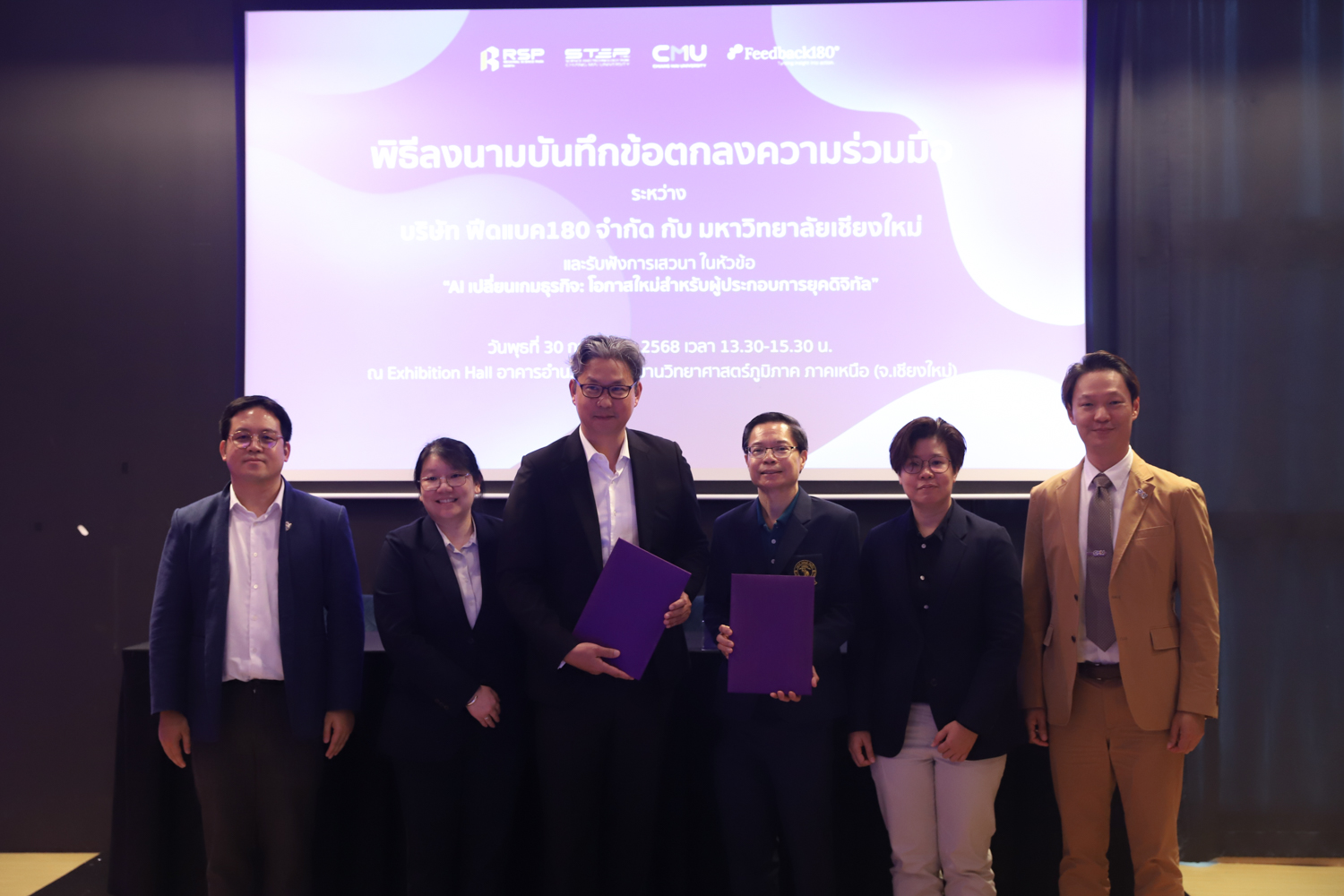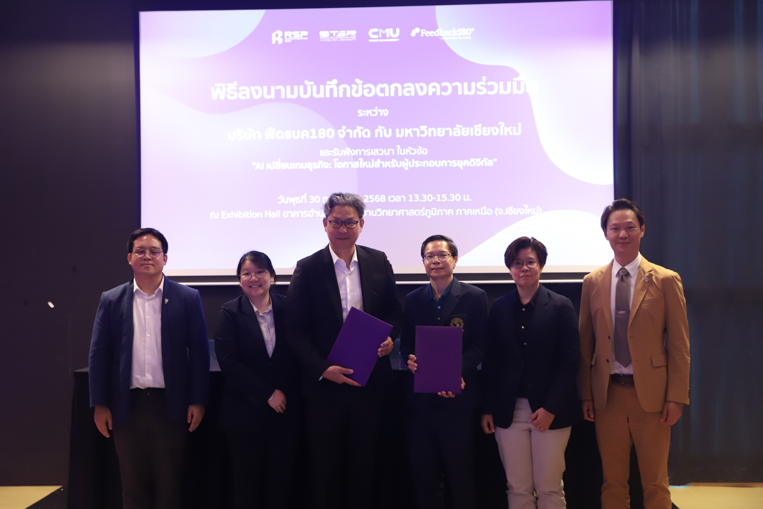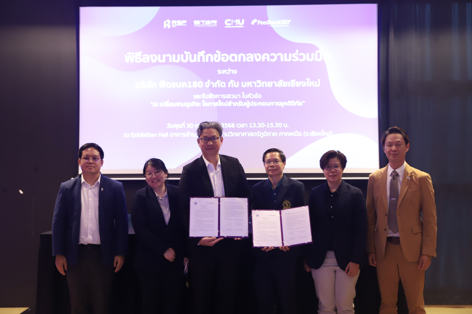 วันพุธที่ 30 กรกฎาคม 2568 คณะวิทยาศาสตร์ มหาวิทยาลัยเชียงใหม่ ร่วมลงนามในบันทึกข้อตกลงความร่วมมือทางวิชาการ กับบริษัท Feedback 180 จำกัด ณ อาคารอำนวยการอุทยานวิทยาศาสตร์ภูมิภาค ภาคเหนือ จังหวัดเชียงใหม่ เพื่อเสริมสร้างความร่วมมือด้านการวิจัยและการผลิตบัณฑิตในสาขาวิชาวิทยาการคอมพิวเตอร์ สถิติ คณิตศาสตร์ และวิทยาการข้อมูล
