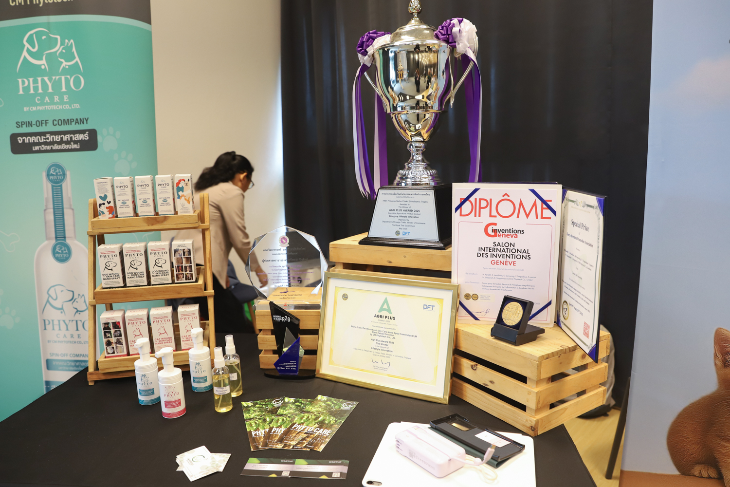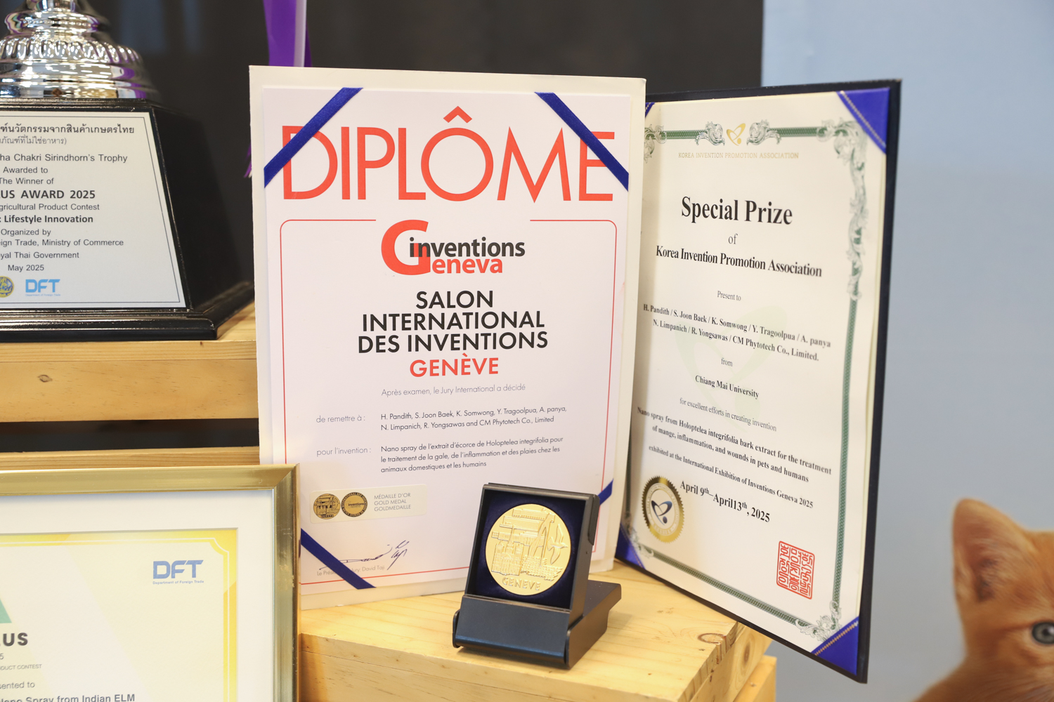 “สเปรย์นาโนขะจาว” ผลงานวิจัยจากคณะวิทยาศาสตร์ มช. โดยผศ.ดร.หทัยชนก ปันดิษฐ์ ผู้คิดค้น และต่อยอดออกมาเป็นนวัตกรรมสมุนไพรที่พัฒนามาจากภูมิปัญญาท้องถิ่น จ.ลำปาง สู่การวิจัยกว่า 7 ปี จนได้สารสกัดที่พิสูจน์แล้วว่าช่วยต้านการอักเสบ สมานแผล และยับยั้งจุลชีพได้อย่างมีประสิทธิภาพ ปลอดภัยต่อสัตว์เลี้ยงและสิ่งแวดล้อมเหมาะกับการใช้ดูแลแผลและปัญหาผิวหนังในสัตว์เลี้ยง โดยได้รับการสนับสนุนการพัฒนาผลิตภัณฑ์เชิงพาณิชย์จากอุทยานวิทยาศาสตร์และเทคโนโลยี มหาวิทยาลัยเชียงใหม่ (STeP)