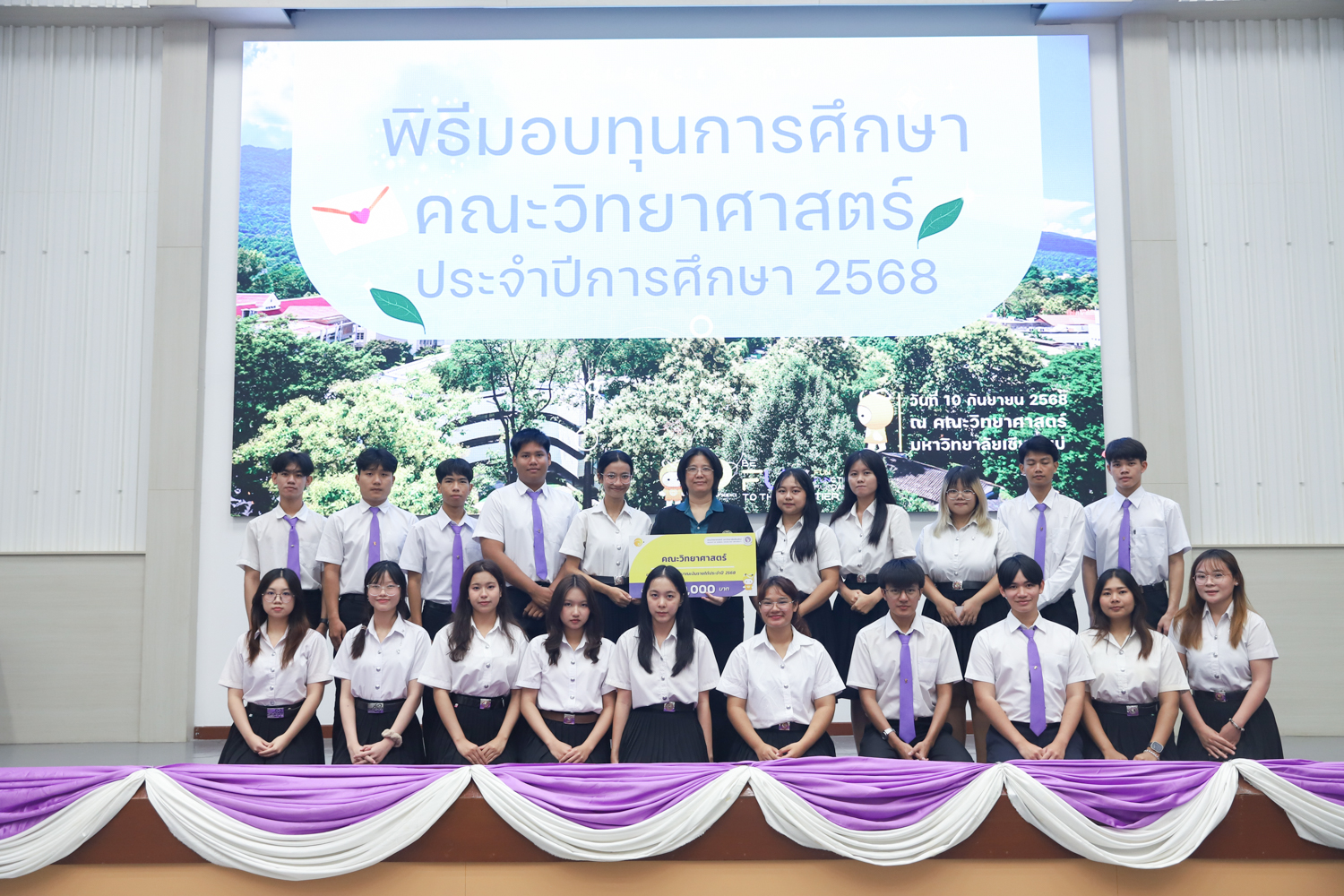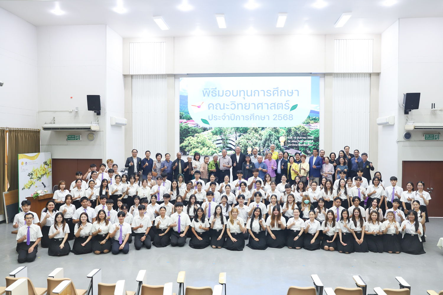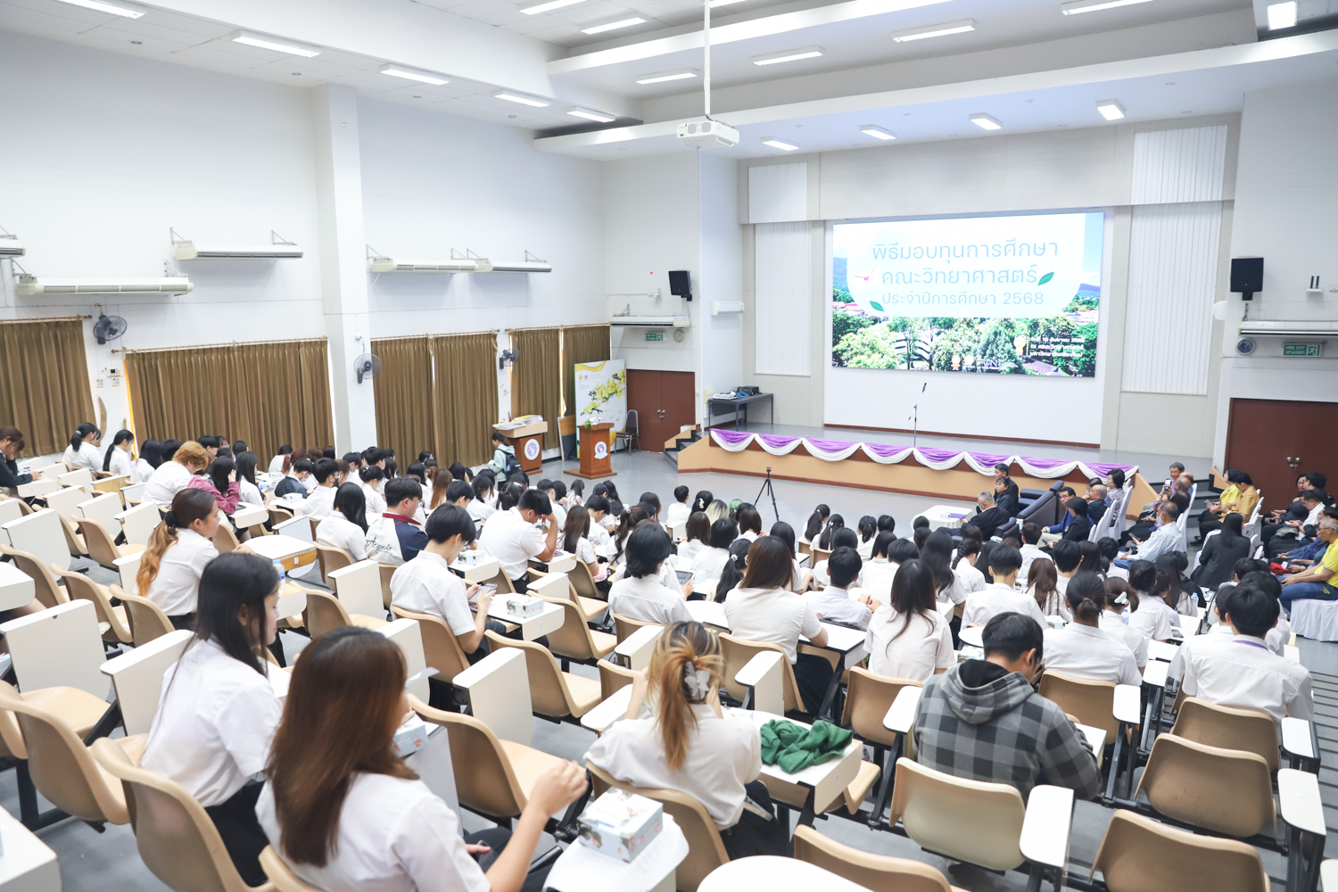 คณะวิทยาศาสตร์จัดพิธีมอบทุนการศึกษา ประจำปีการศึกษา 2568 แก่นักศึกษาคณะวิทยาศาสตร์ ในวันที่ 10 กันยายน 2568 ณ ห้องบรรยาย SCB2100 อาคาร 40 ปี คณะวิทยาศาสตร์ โดยได้รับเกียรติจาก รศ.ดร.ยิ่งมณี ตระกูลพัว รองคณบดีคณะวิทยาศาสตร์ เป็นประธานในพิธี ทั้งนี้ ภายในงานยังได้รับเกียรติจากผู้บริหารคณะวิทยาศาสตร์ ตลอดจนผู้มีอุปการคุณที่ร่วมบริจาคทุนการศึกษาเข้าร่วมพิธีมอบทุนด้วย