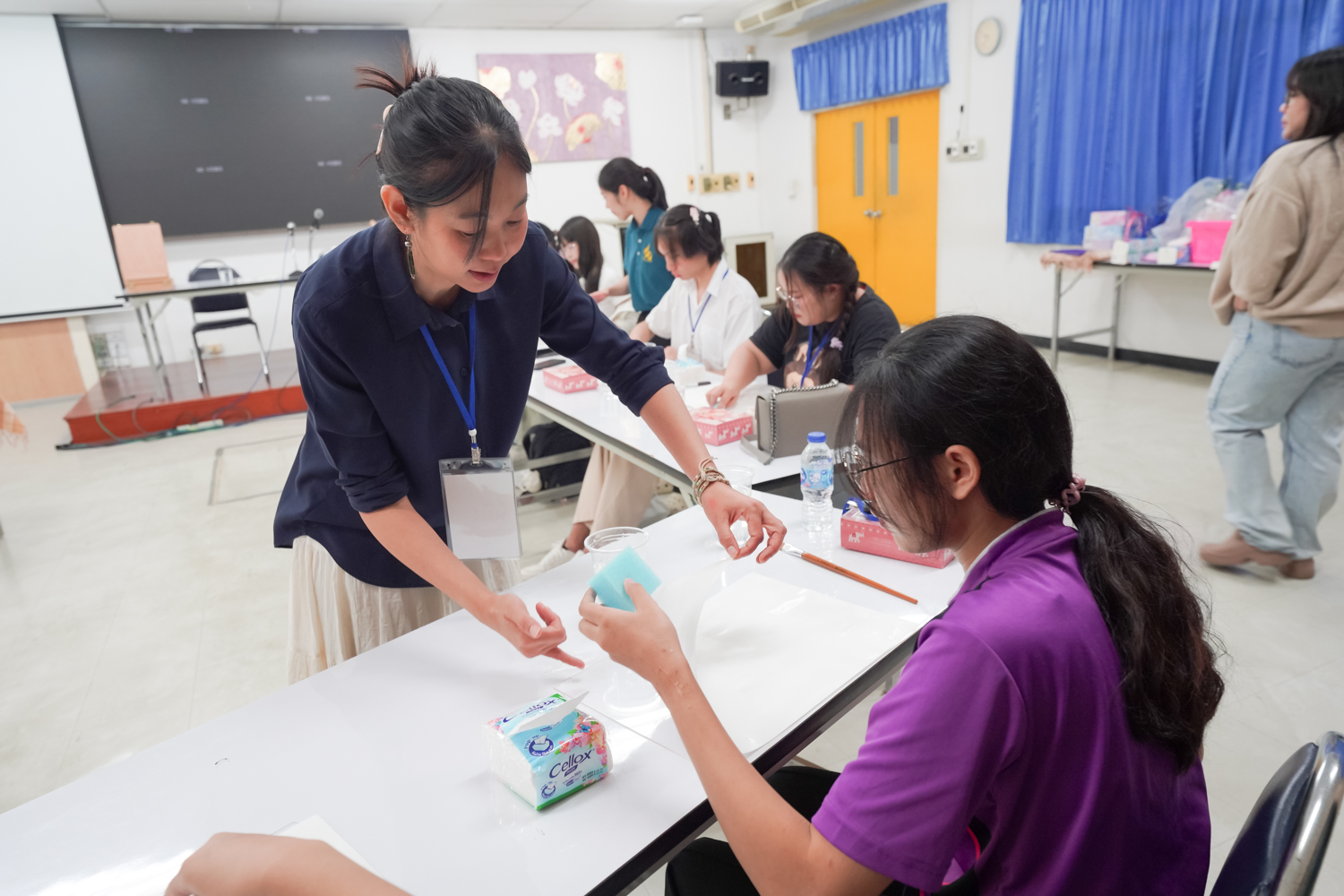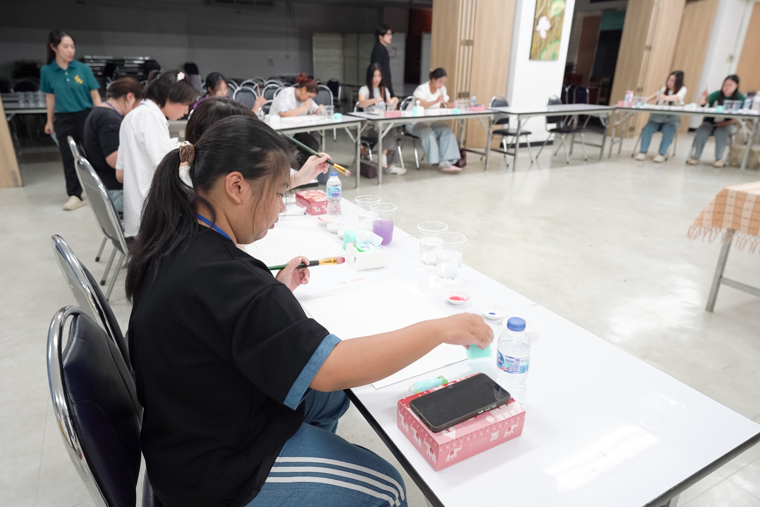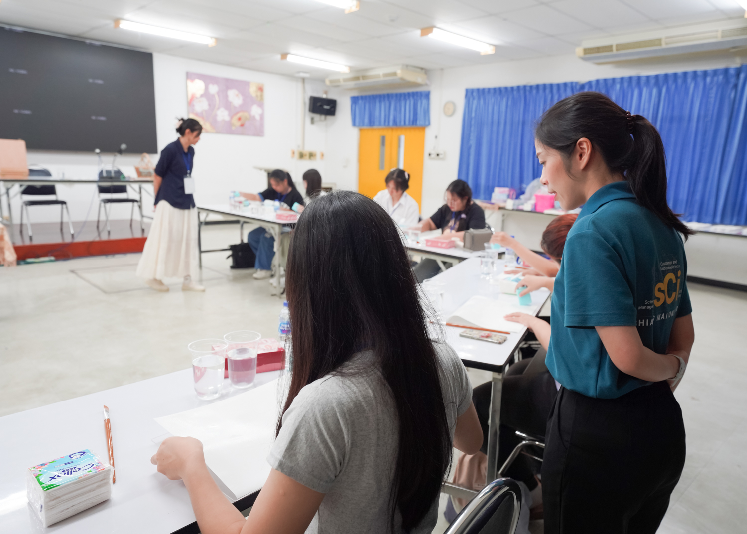 หน่วยพัฒนาคุณภาพนักศึกษาและศิษย์เก่าสัมพันธ์ คณะวิทยาศาสตร์ จัดกิจกรรมระบายสี (น้ำ) ระบายใจ เพื่อให้นักศึกษาได้ทำกิจกรรมที่ช่วยให้ผ่อนคลาย ทำให้จิตใจสงบ และระบายความรู้สึกภายในออกมาผ่านการระบายสี ซึ่งเป็นส่วนหนึ่งที่จะช่วยส่งเสริมสุขภาพจิตที่ดีแก่ผู้เข้าร่วมกิจกรรม เมื่อวันที่ 17 กันยายน 2568 ณ ห้องสัมมนา ชั้น 2 อาคาร 40 ปี คณะวิทยาศาสตร์ ทั้งนี้ การระบายสีน้ำ เป็นการส่งเสริมให้ผู้เข้าร่วมกิจกรรมได้อยู่กับห้วงเวลา 'ปัจจุบัน' และกลับมาสังเกตใจตนเอง ความรู้สึกของตนเอง และมีอิสระในการถ่ายทอดความรู้สึกออกมาผ่านงานศิลปะ และได้หยุดพักจากกรอบของความคิด ความกดดัน ความคาดหวังต่างๆ ที่เป็นสาเหตุของความเครียดในปัจจุบัน