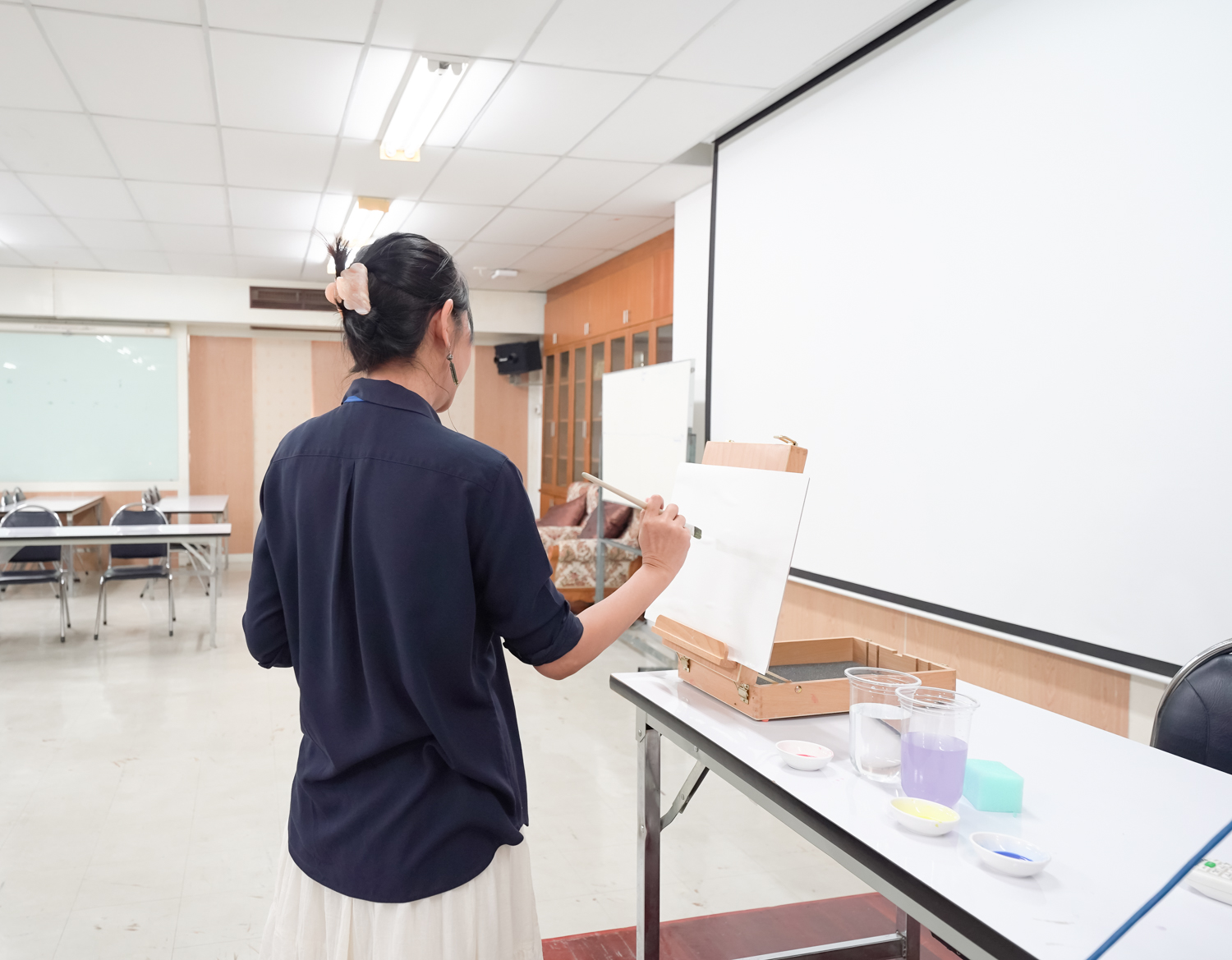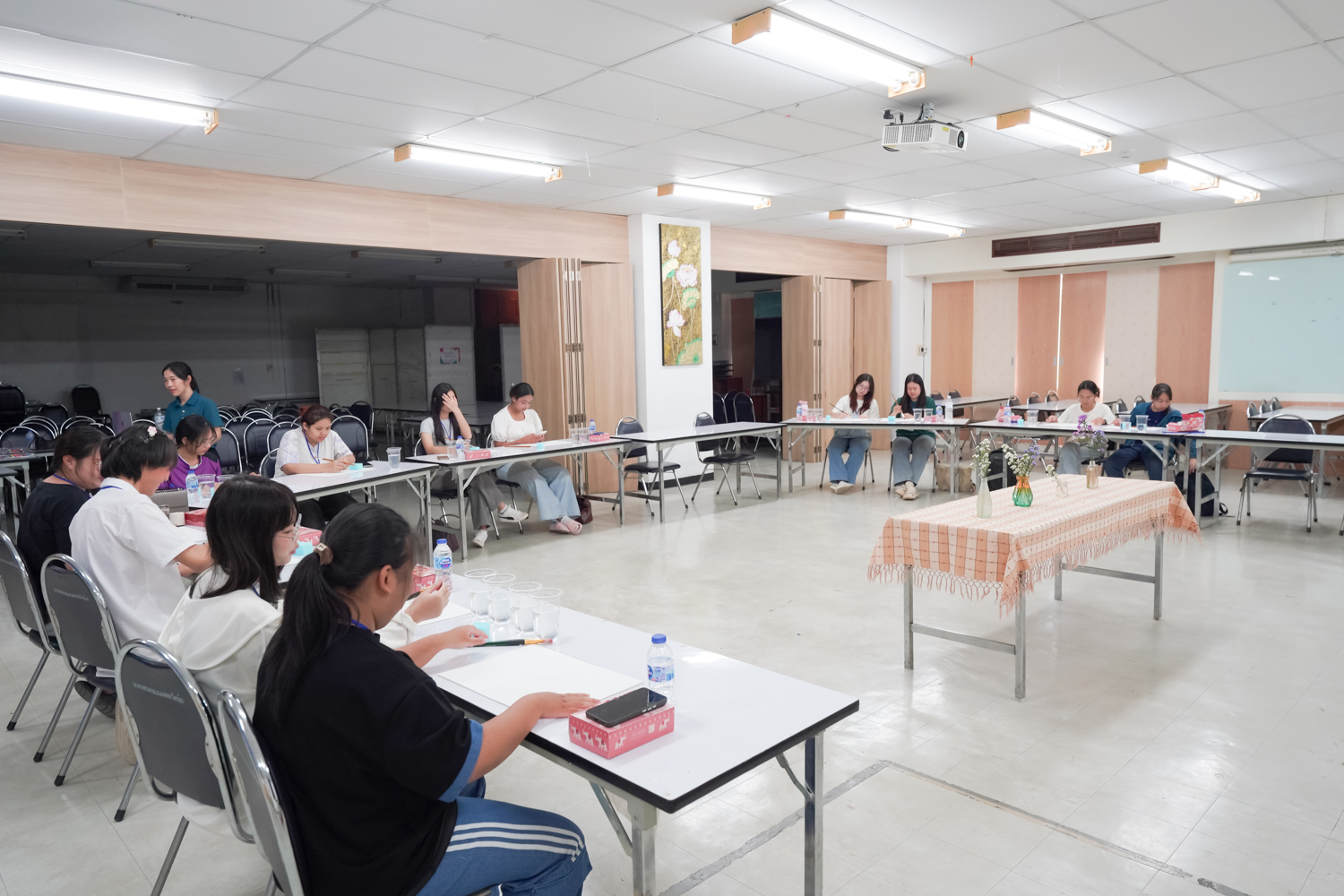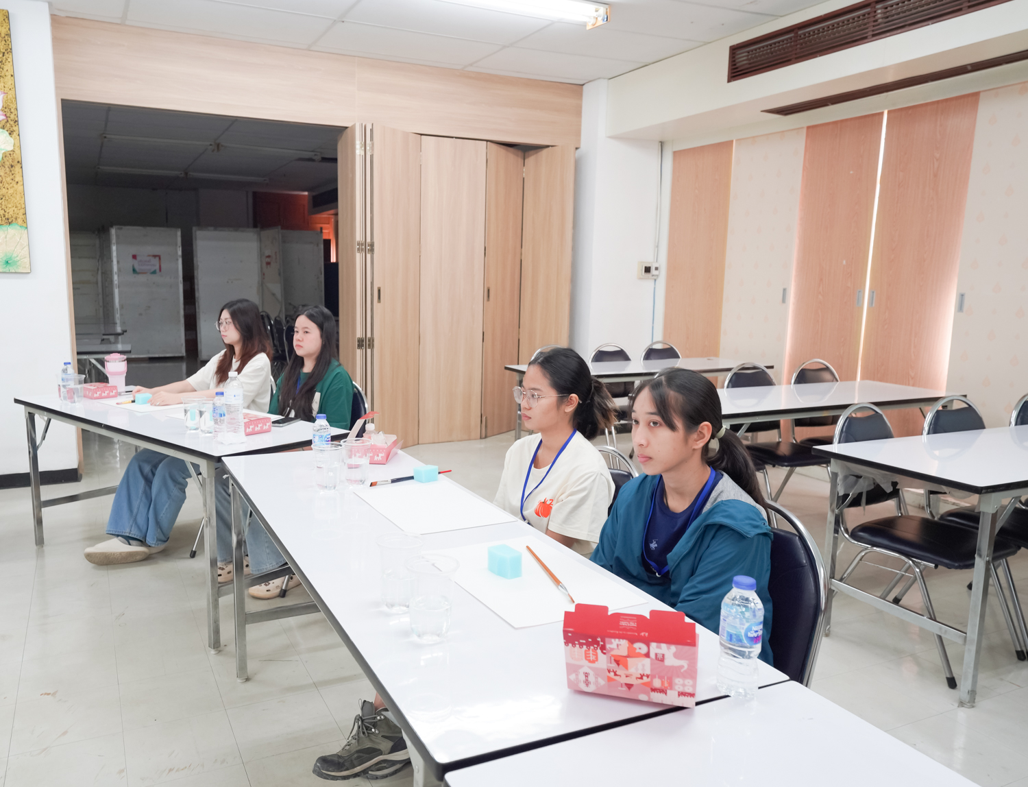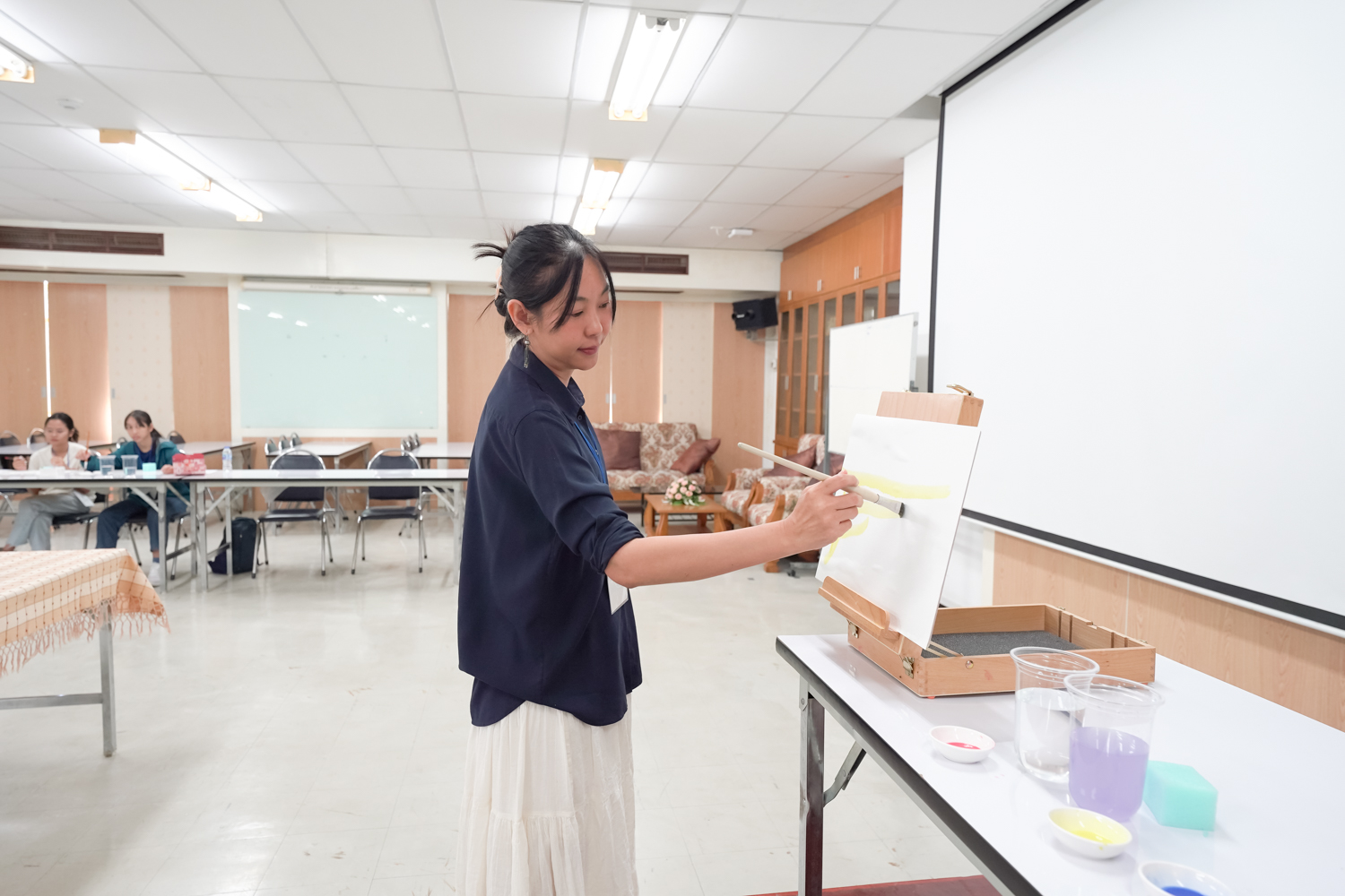 หน่วยพัฒนาคุณภาพนักศึกษาและศิษย์เก่าสัมพันธ์ คณะวิทยาศาสตร์ จัดกิจกรรมระบายสี (น้ำ) ระบายใจ เพื่อให้นักศึกษาได้ทำกิจกรรมที่ช่วยให้ผ่อนคลาย ทำให้จิตใจสงบ และระบายความรู้สึกภายในออกมาผ่านการระบายสี ซึ่งเป็นส่วนหนึ่งที่จะช่วยส่งเสริมสุขภาพจิตที่ดีแก่ผู้เข้าร่วมกิจกรรม เมื่อวันที่ 17 กันยายน 2568 ณ ห้องสัมมนา ชั้น 2 อาคาร 40 ปี คณะวิทยาศาสตร์ ทั้งนี้ การระบายสีน้ำ เป็นการส่งเสริมให้ผู้เข้าร่วมกิจกรรมได้อยู่กับห้วงเวลา 'ปัจจุบัน' และกลับมาสังเกตใจตนเอง ความรู้สึกของตนเอง และมีอิสระในการถ่ายทอดความรู้สึกออกมาผ่านงานศิลปะ และได้หยุดพักจากกรอบของความคิด ความกดดัน ความคาดหวังต่างๆ ที่เป็นสาเหตุของความเครียดในปัจจุบัน