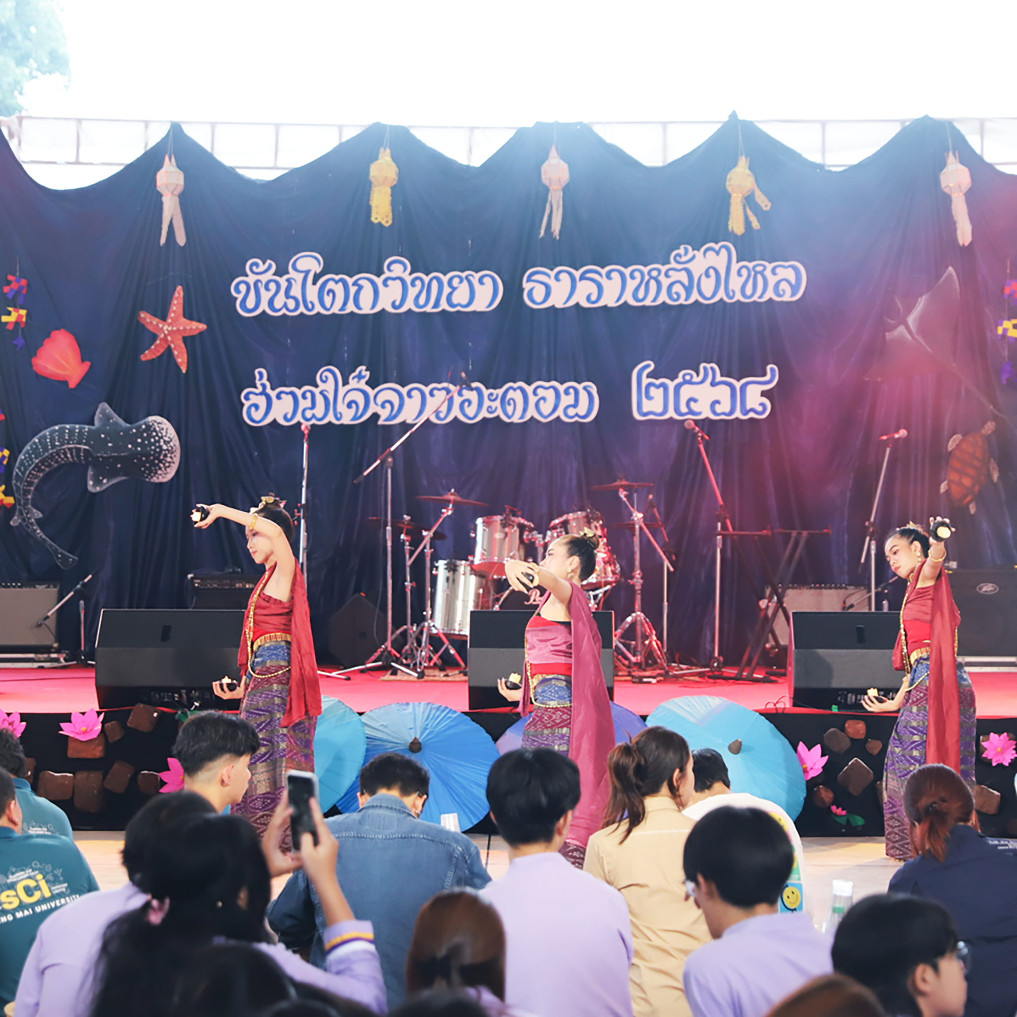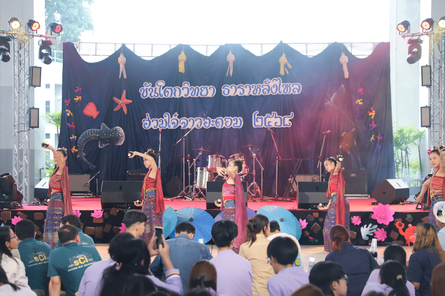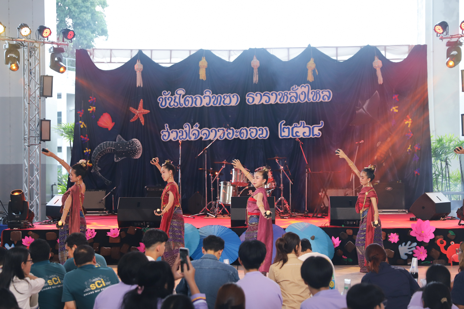 สโมสรนักศึกษาคณะวิทยาศาสตร์ จัดงานงานขันโตกวิทยา ธาราหลั่งไหล ฮ่วมใจ๋จาวอะตอม ประจำปี 2568 เพื่อสืบสานประเพณีอันดีงามของล้านนาไทย และเพื่อสร้างขวัญและกำลังใจให้กับนักศึกษาคณะวิทยาศาสตร์ที่มีความอุตสาหะอดทนในการเรียน และได้ร่วมใจกันทำกิจกรรมต่างๆ ของคณะฯ และมหาวิทยาลัยด้วยความสามัคคีกลมเกลียว เมื่อวันที่ 17 กันยายน 2568 ณ โถงชั้น 1 อาคาร 40 ปี คณะวิทยาศาสตร์ โดยมีผู้บริหาร คณาจารย์ เจ้าหน้าที่ และนักศึกษาคณะวิทยาศาสตร์ร่วมพิธี
