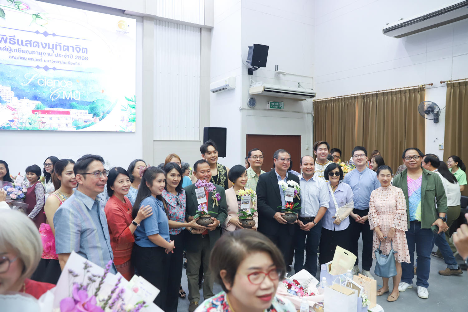 คณะวิทยาศาสตร์จัดพิธีแสดงมุทิตาจิตแด่ผู้เกษียณอายุงาน ประจำปี 2568 โดยได้รับเกียรติจาก รองศาสตราจารย์ ดร.ปิยะพงศ์ เนียมทรัพย์ คณบดีคณะวิทยาศาสตร์ เป็นประธานในพิธี และ รศ.สุรินทร์ ขนาบศักดิ์ ประธานชมรมผู้เกษียณ คณะวิทยาศาสตร์ กล่าวต้อนรับผู้เกษียณเข้าสู่ชมรมฯ เมื่อวันที่ 24 กันยายน 2568 ณ ห้องบรรยาย SCB2100 ชั้น 1 อาคาร 40 ปี คณะวิทยาศาสตร์