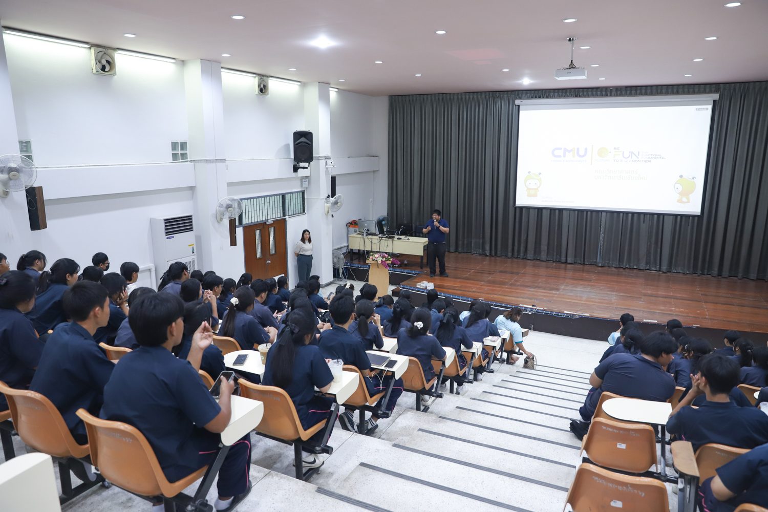 ผู้ช่วยศาสตราจารย์ ดร. ศุภณัฐ ชัยดี ผู้ช่วยคณบดี คณะวิทยาศาสตร์ ร่วมให้การต้อนรับและบรรยายแนะนำภาพรวมของคณะวิทยาศาสตร์ ให้แก่นักเรียน จาก โรงเรียนเตรียมอุดมศึกษา ภาคเหนือ จำนวน 120 คน ที่เข้าศึกษาดูงานด้านการเรียนการสอนของคณะวิทยาศาสตร์ เพื่อให้นักเรียนมีข้อมูลประกอบการตัดสินใจศึกษาต่อในระดับอุดมศึกษา อีกทั้งยังเปิดโอกาสให้นักเรียนได้เข้าเยี่ยมชมห้องปฏิบัติการต่างๆ ของภาควิชาวิทยาการคอมพิวเตอร์เพื่อให้เห็นบรรยากาศการเรียนในสถานที่จริง เมื่อวันที่ 29 กันยายน 2568
