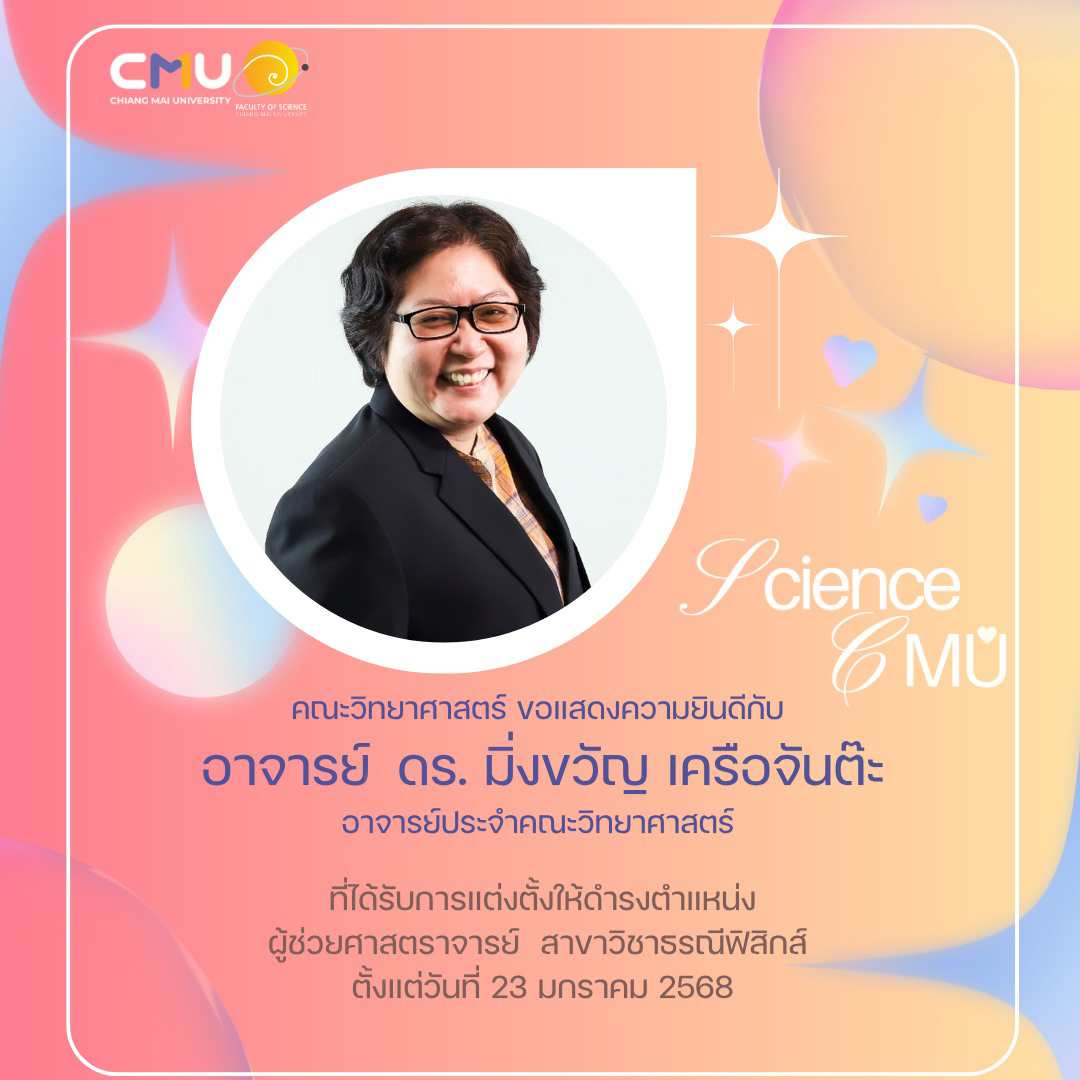คณะวิทยาศาสตร์ มหาวิทยาลัยเชียงใหม่ ขอแสดงความยินดีกับอาจารย์ประจำคณะวิทยาศาสตร์ ในโอกาสที่ได้รับการแต่งตั้งให้ดำรงตำแหน่งทางวิชาการ