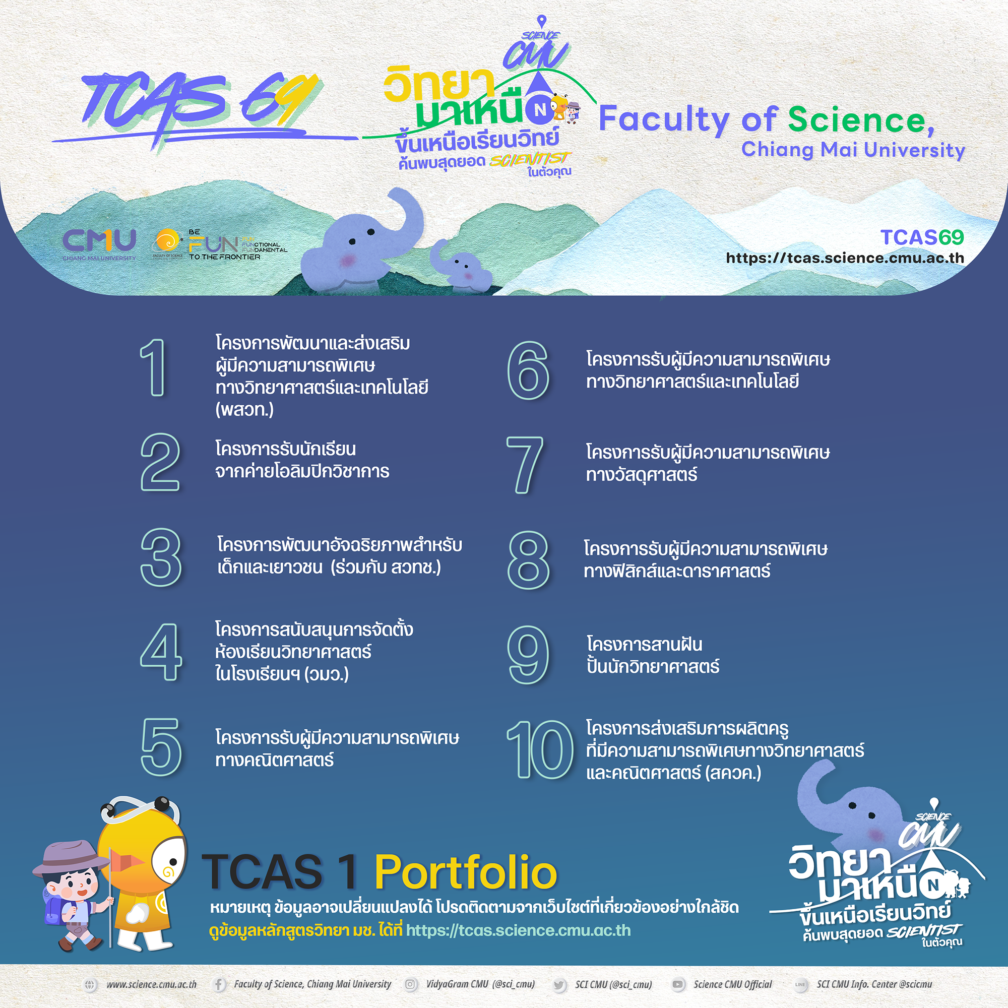 ติดตามรายละเอียด TCAS วิทยา มช. ได้ที่ https://tcas.science.cmu.ac.th