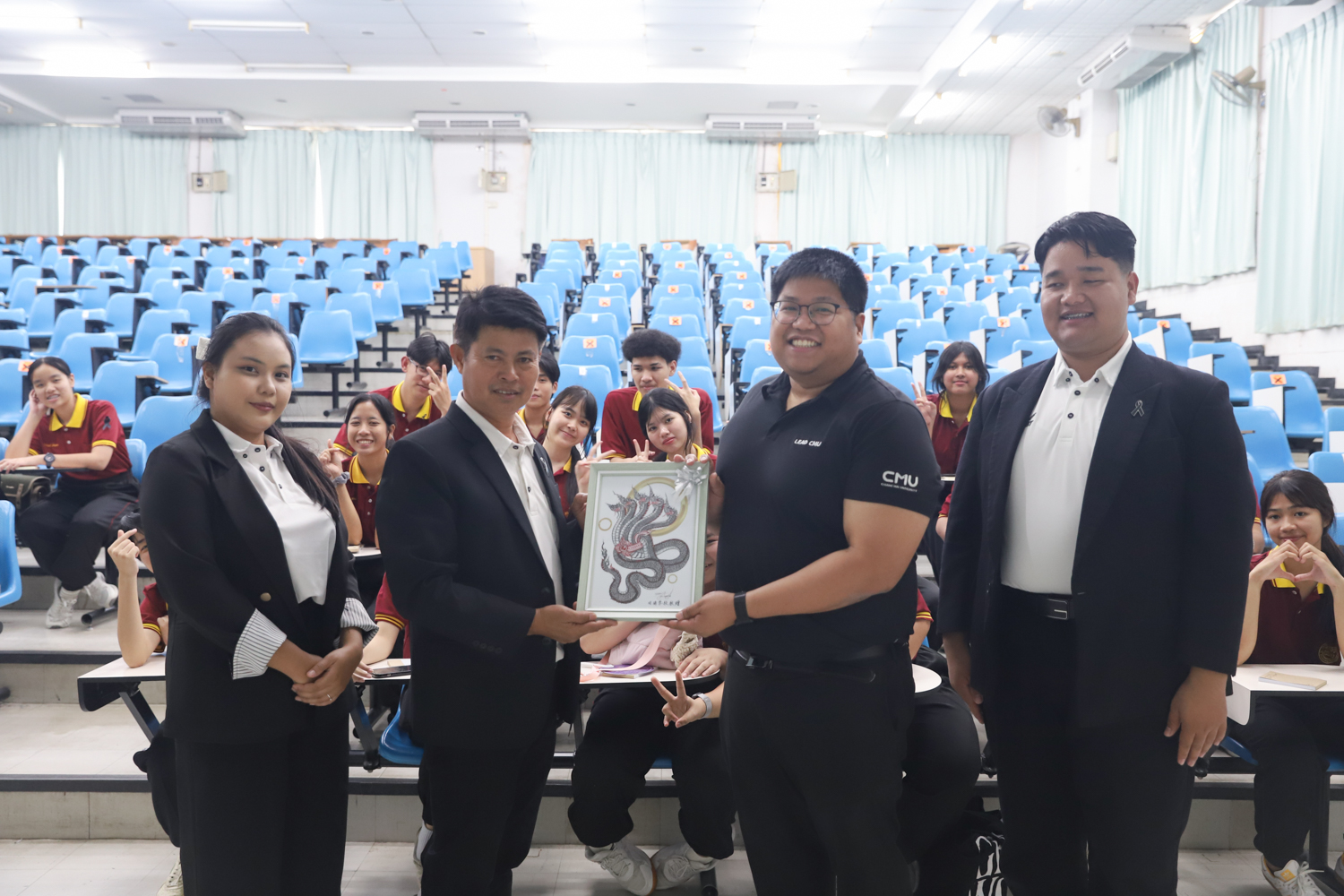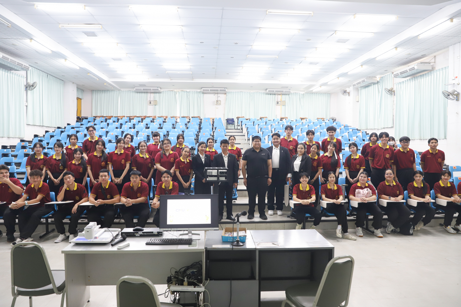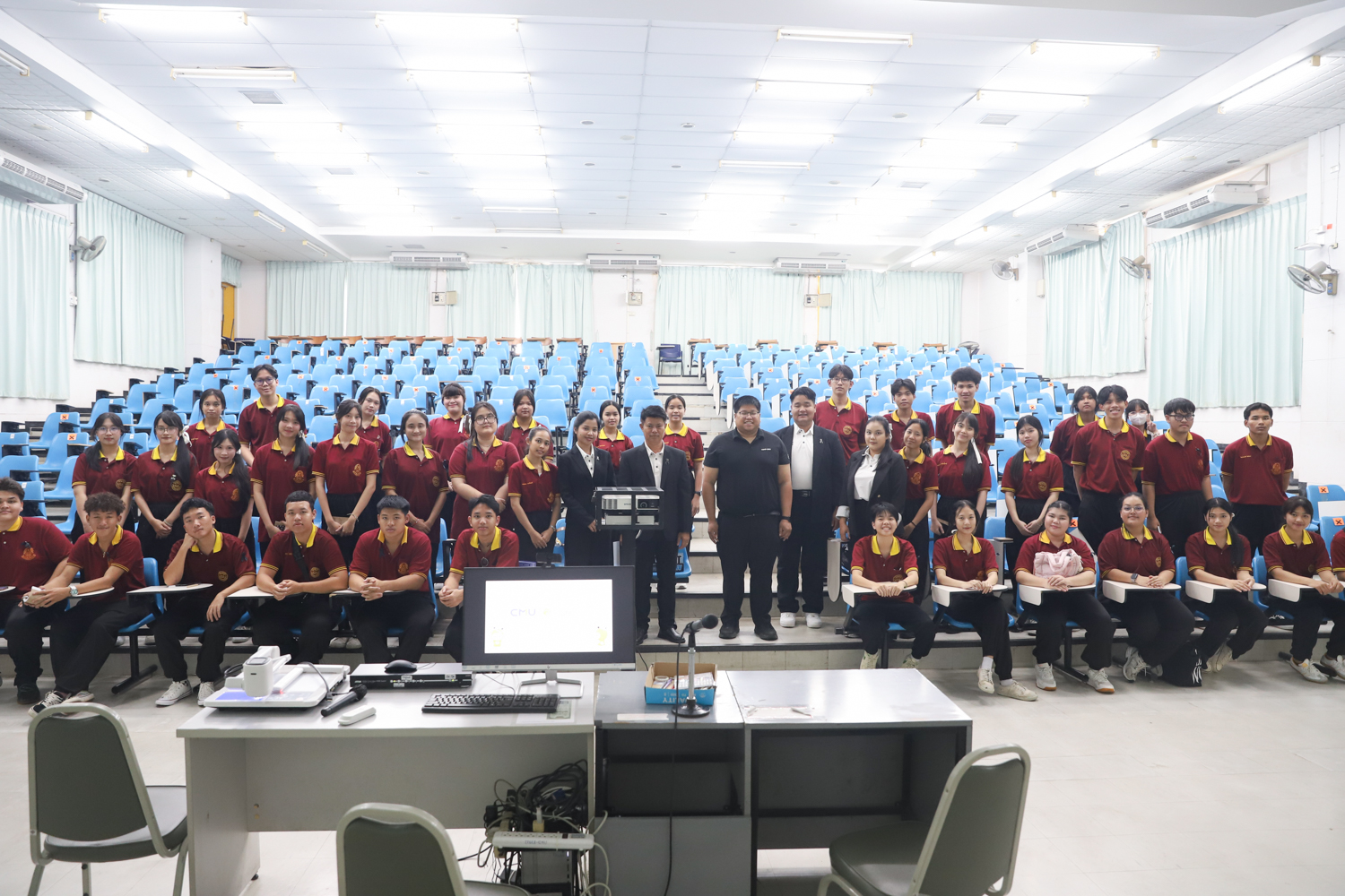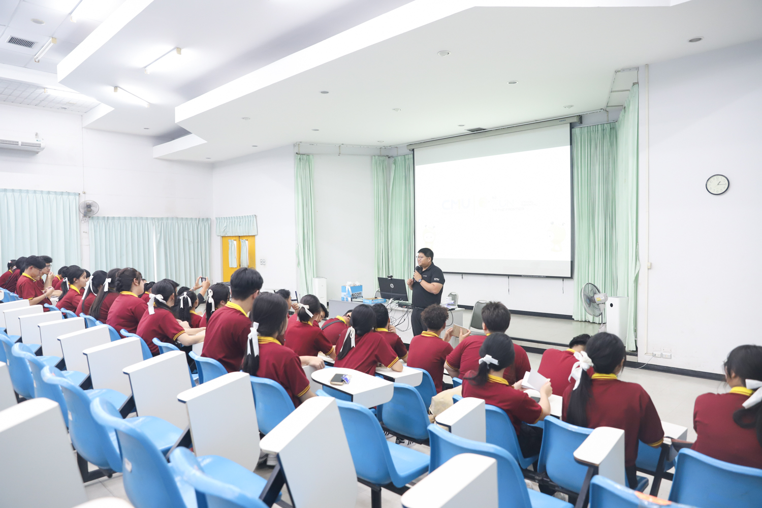 วันที่ 5 พฤศจิกายน 2568 ผศ.ดร.ศุภณัฐ ชัยดี ผู้ช่วยคณบดีคณะวิทยาศาสตร์ กล่าวต้อนรับพร้อมกับบรรยายแนะนำหลักสูตร และภาพรวมการเรียนการสอนของคณะวิทยาศาสตร์ ให้แก่นักเรียนระดับมัธยมศึกษาจากโรงเรียนสว่างบริบูรณ์วิทยา จ.ชลบุรี ที่มาเยี่ยมชมและศึกษาดูงานด้านการเรียนการสอนของคณะฯ ณ ห้อง SCB3100 อาคารเรียนรวมและปฏิบัติการ 3 คณะวิทยาศาสตร์ เพื่อให้นักเรียนมีข้อมูลประกอบการตัดสินใจศึกษาต่อระดับอุมดมศึกษา นอกจากนี้ คณะวิทยาศาสตร์ยังได้เปิดโอกาสให้นักเรียนเข้าเยี่ยมชมบรรยากาศห้องเรียนจริง ณ ภาควิชาธรณีวิทยาและภาควิชาฟิสิกส์และวัสดุศาสตร์อีกด้วย