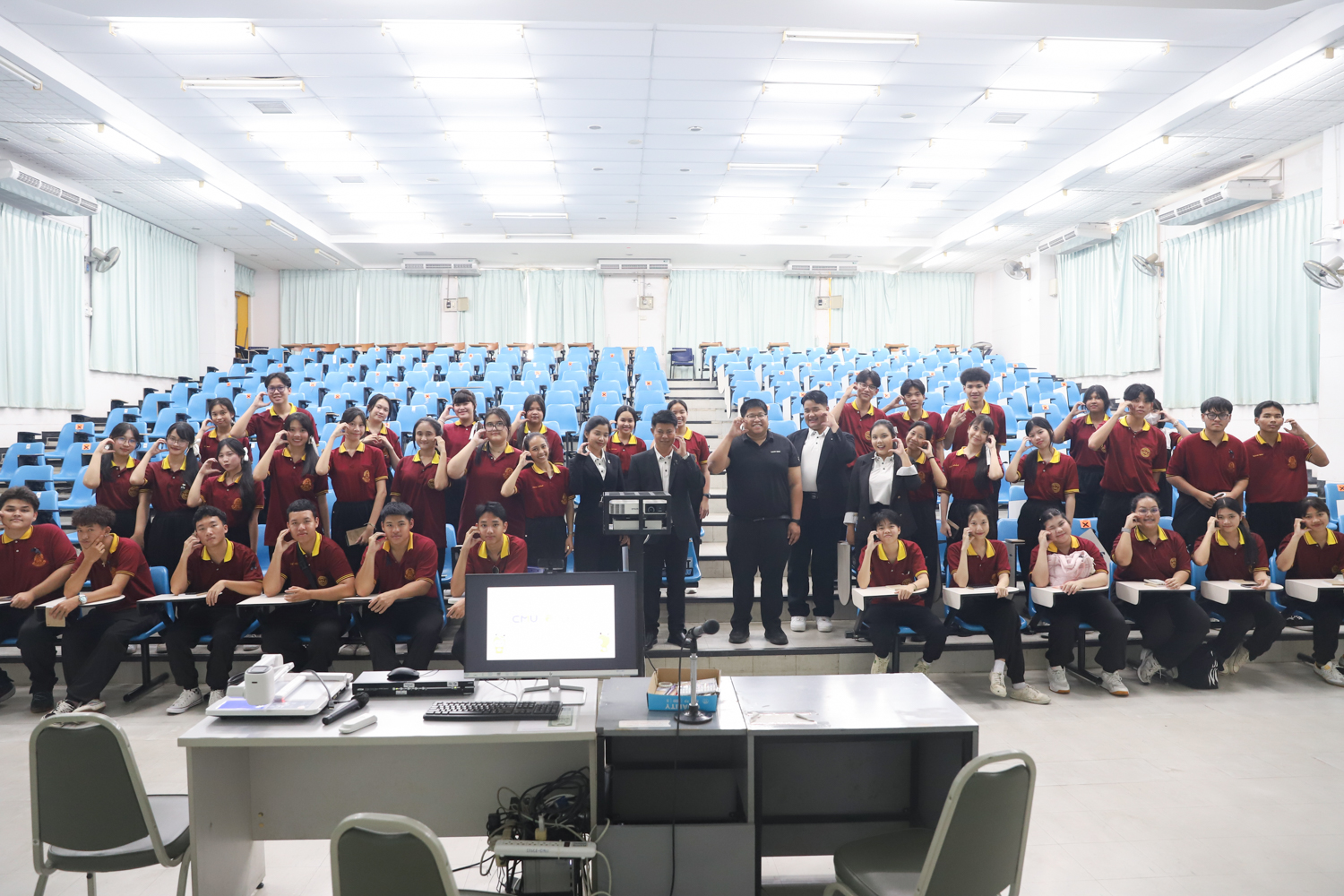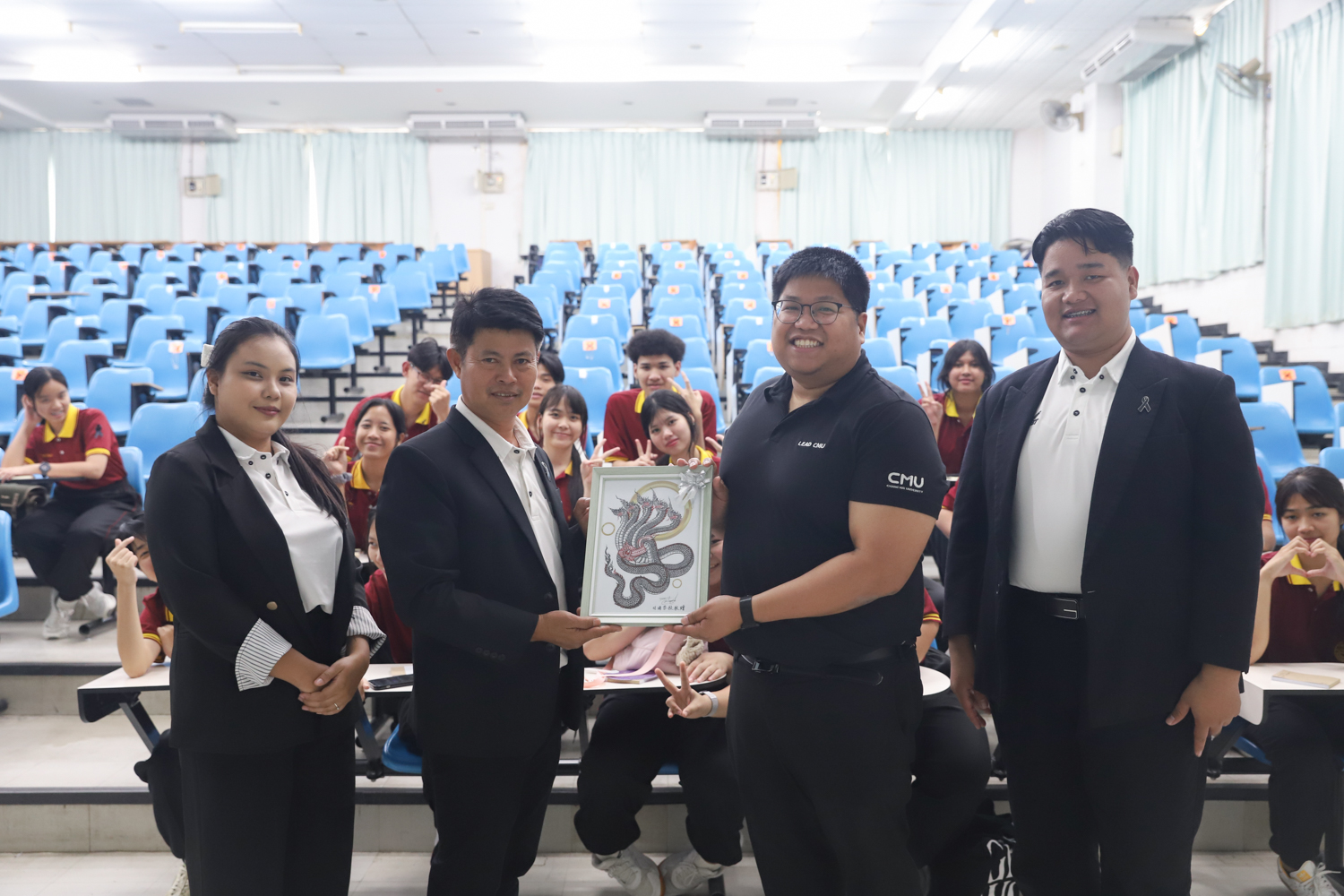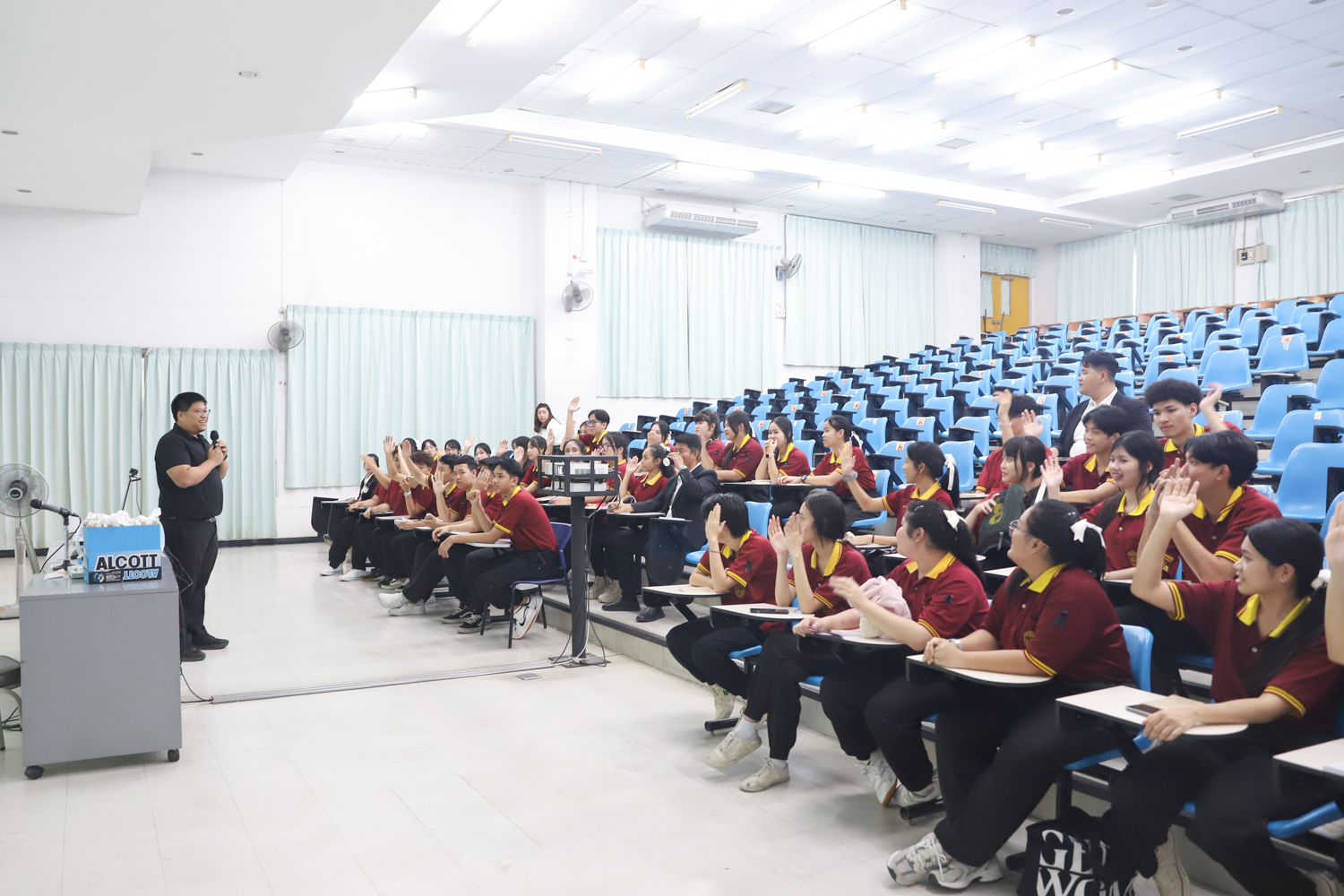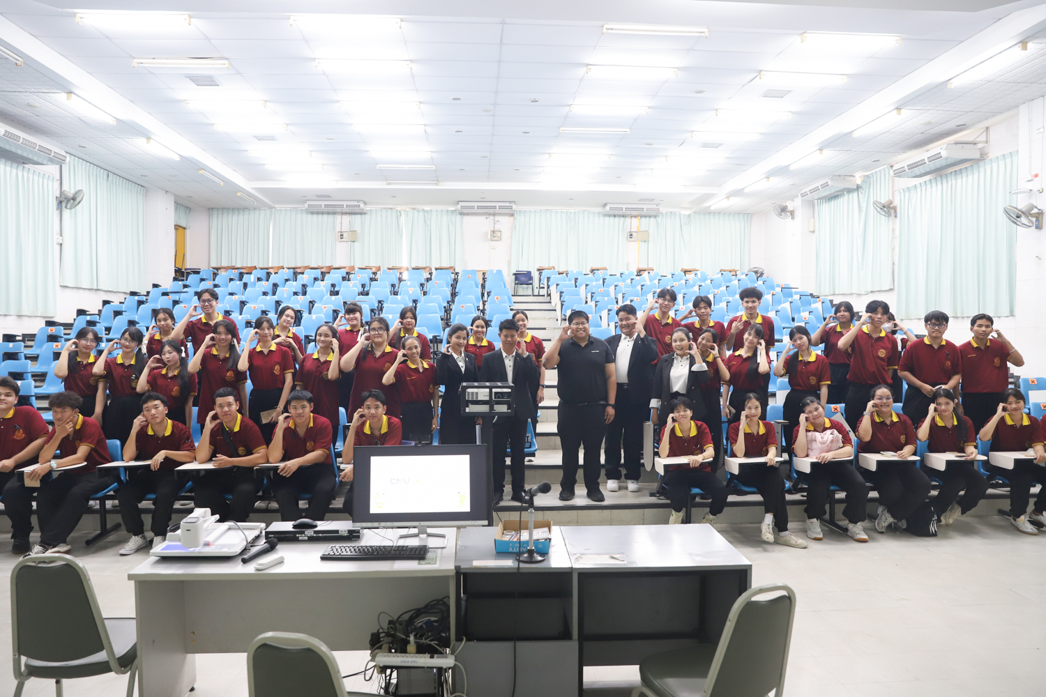 วันที่ 5 พฤศจิกายน 2568 ผศ.ดร.ศุภณัฐ ชัยดี ผู้ช่วยคณบดีคณะวิทยาศาสตร์ กล่าวต้อนรับพร้อมกับบรรยายแนะนำหลักสูตร และภาพรวมการเรียนการสอนของคณะวิทยาศาสตร์ ให้แก่นักเรียนระดับมัธยมศึกษาจากโรงเรียนสว่างบริบูรณ์วิทยา จ.ชลบุรี ที่มาเยี่ยมชมและศึกษาดูงานด้านการเรียนการสอนของคณะฯ ณ ห้อง SCB3100 อาคารเรียนรวมและปฏิบัติการ 3 คณะวิทยาศาสตร์ เพื่อให้นักเรียนมีข้อมูลประกอบการตัดสินใจศึกษาต่อระดับอุมดมศึกษา นอกจากนี้ คณะวิทยาศาสตร์ยังได้เปิดโอกาสให้นักเรียนเข้าเยี่ยมชมบรรยากาศห้องเรียนจริง ณ ภาควิชาธรณีวิทยาและภาควิชาฟิสิกส์และวัสดุศาสตร์อีกด้วย