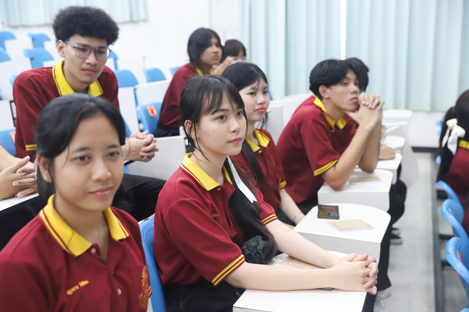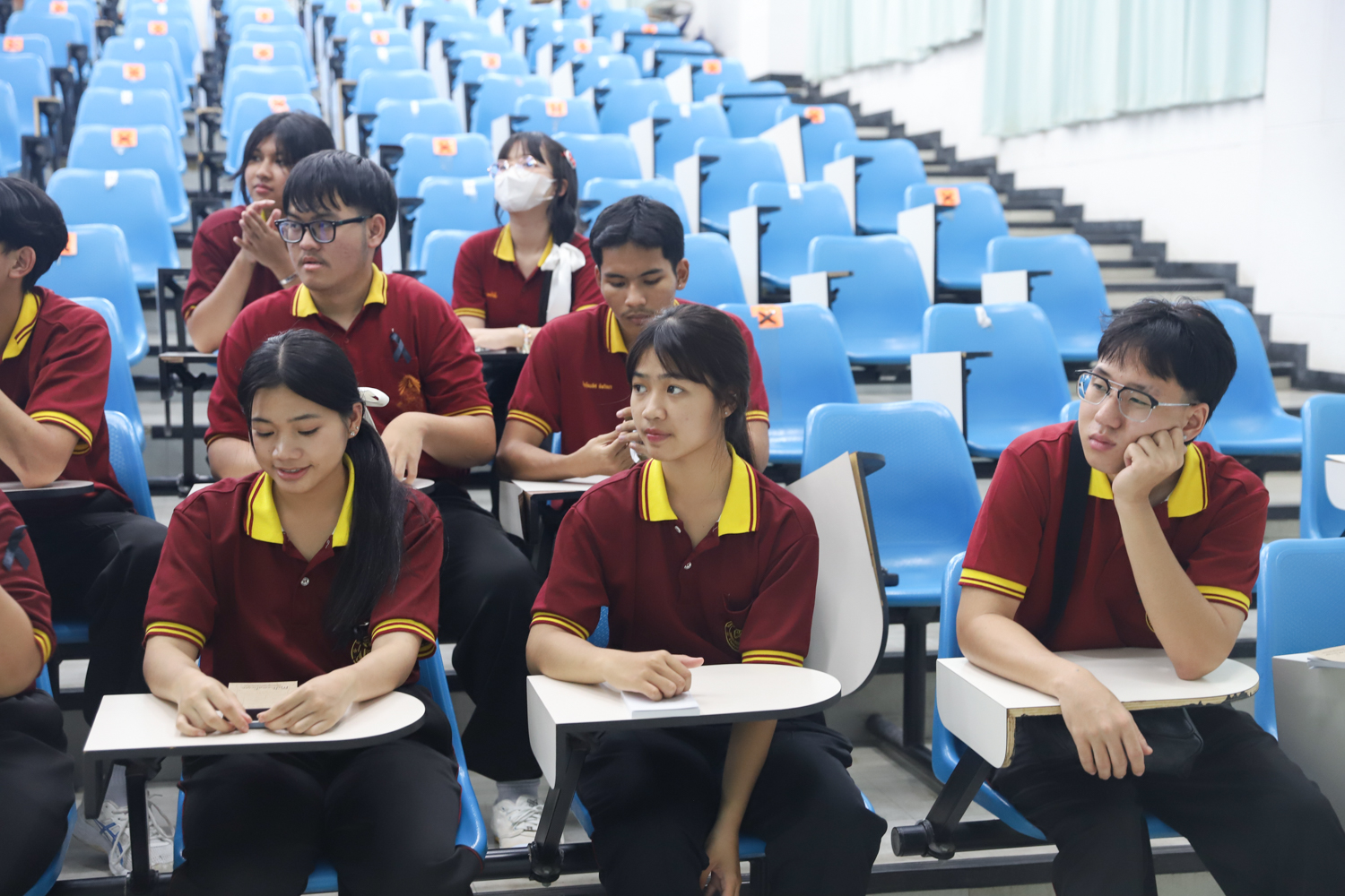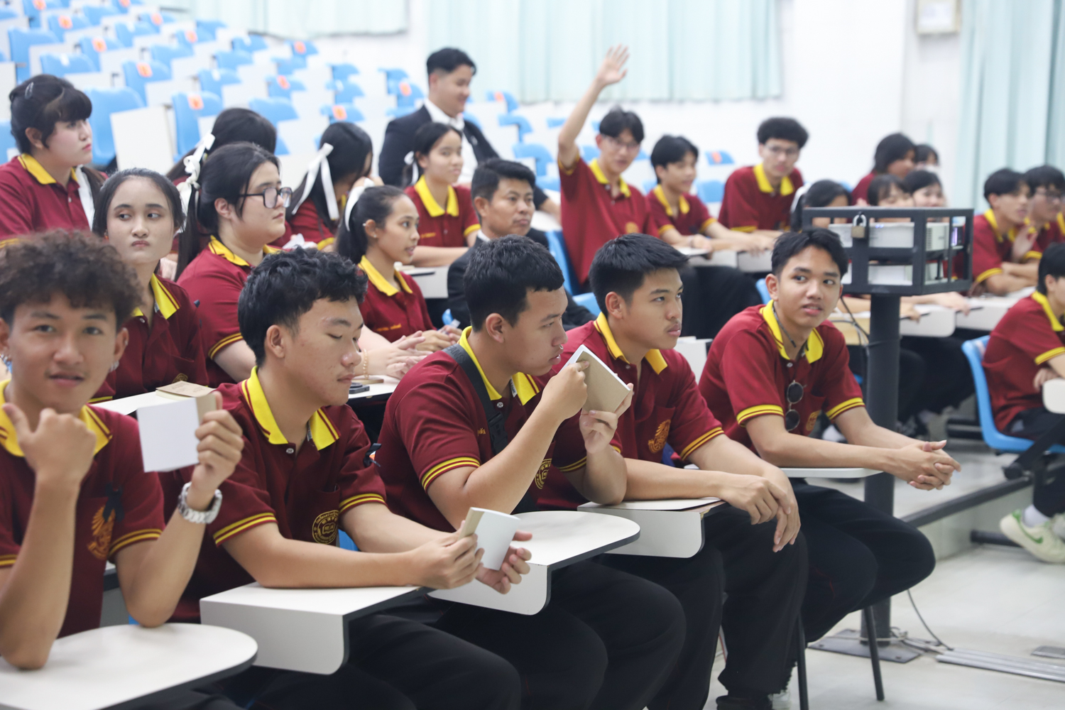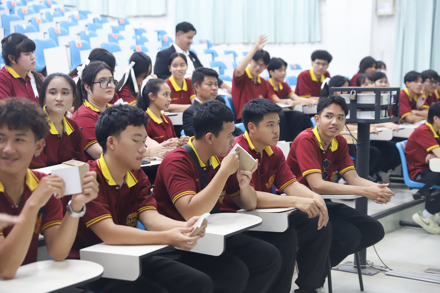 วันที่ 5 พฤศจิกายน 2568 ผศ.ดร.ศุภณัฐ ชัยดี ผู้ช่วยคณบดีคณะวิทยาศาสตร์ กล่าวต้อนรับพร้อมกับบรรยายแนะนำหลักสูตร และภาพรวมการเรียนการสอนของคณะวิทยาศาสตร์ ให้แก่นักเรียนระดับมัธยมศึกษาจากโรงเรียนสว่างบริบูรณ์วิทยา จ.ชลบุรี ที่มาเยี่ยมชมและศึกษาดูงานด้านการเรียนการสอนของคณะฯ ณ ห้อง SCB3100 อาคารเรียนรวมและปฏิบัติการ 3 คณะวิทยาศาสตร์ เพื่อให้นักเรียนมีข้อมูลประกอบการตัดสินใจศึกษาต่อระดับอุมดมศึกษา นอกจากนี้ คณะวิทยาศาสตร์ยังได้เปิดโอกาสให้นักเรียนเข้าเยี่ยมชมบรรยากาศห้องเรียนจริง ณ ภาควิชาธรณีวิทยาและภาควิชาฟิสิกส์และวัสดุศาสตร์อีกด้วย