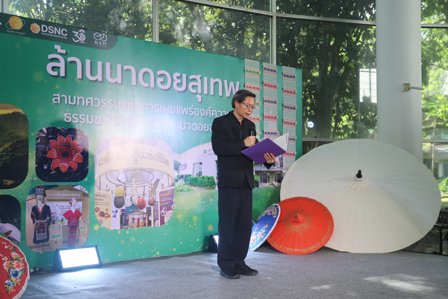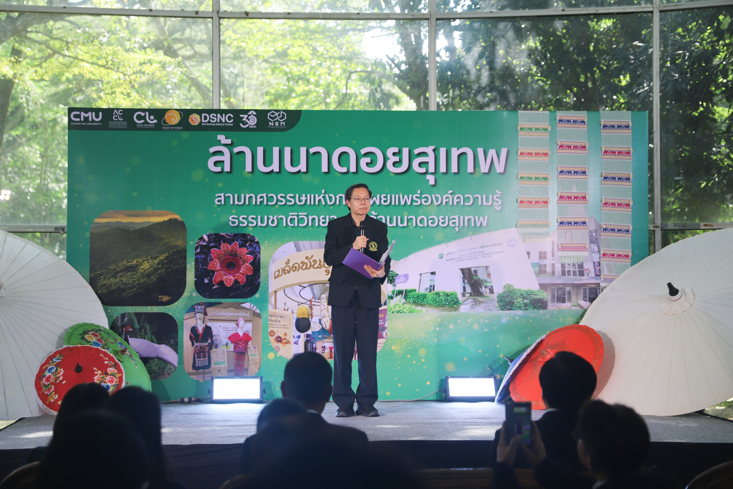 ศูนย์ธรรมชาติวิทยาดอยสุเทพฯ คณะวิทยาศาสตร์ จัดงาน “ล้านนาดอยสุเทพ” สามทศวรรษแห่งการเผยแพร่ความรู้ธรรมชาติวิทยาและล้านนาดอยสุเทพ โดยได้รับเกียรติจาก ศ.ปฏิบัติ ดร.ชรินทร์ เตชะพันธ์ รองอธิการบดีมหาวิทยาลัยเชียงใหม่ กล่าวเปิดกิจกรรม รศ.ดร.ปิยะพงศ์ เนียมทรัพย์ คณบดีคณะวิทยาศาสตร์ กล่าวต้อนรับผู้เข้าร่วมกิจกรรม และ ผศ.ดร.พิมลรัตน์ เทียนสวัสดิ์ รองหัวหน้าศูนย์ฯ กล่าวรายงานความเป็นมาของการจัดกิจกรรม ในวันศุกร์ที่ 14 พฤศจิกายน 2568 ณ ศูนย์ธรรมชาติวิทยาดอยสุเทพฯ ภายในงานมีการจัดกิจกรรมเปิดตัวหลักสูตรออนไลน์ “ดอยสุเทพศึกษา” เปิดตัวสื่อการเรียนรู้ “ธรรมชาติวิทยาและล้านนาดอยสุเทพ” เปิดนิทรรศการ “มรดกเมล็ดพันธุ์ล้านนา” และสนทนาหัวข้อ “มองไปข้างหน้ากับศูนย์ดอย” เพื่อเปิดโอกาสให้ทุกคน ทุกภาคส่วนได้ร่วมเรียนรู้ แบ่งปัน และต่อยอดองค์ความรู้ธรรมชาติวิทยา และภูมิปัญญาล้านนาดอยสุเทพ