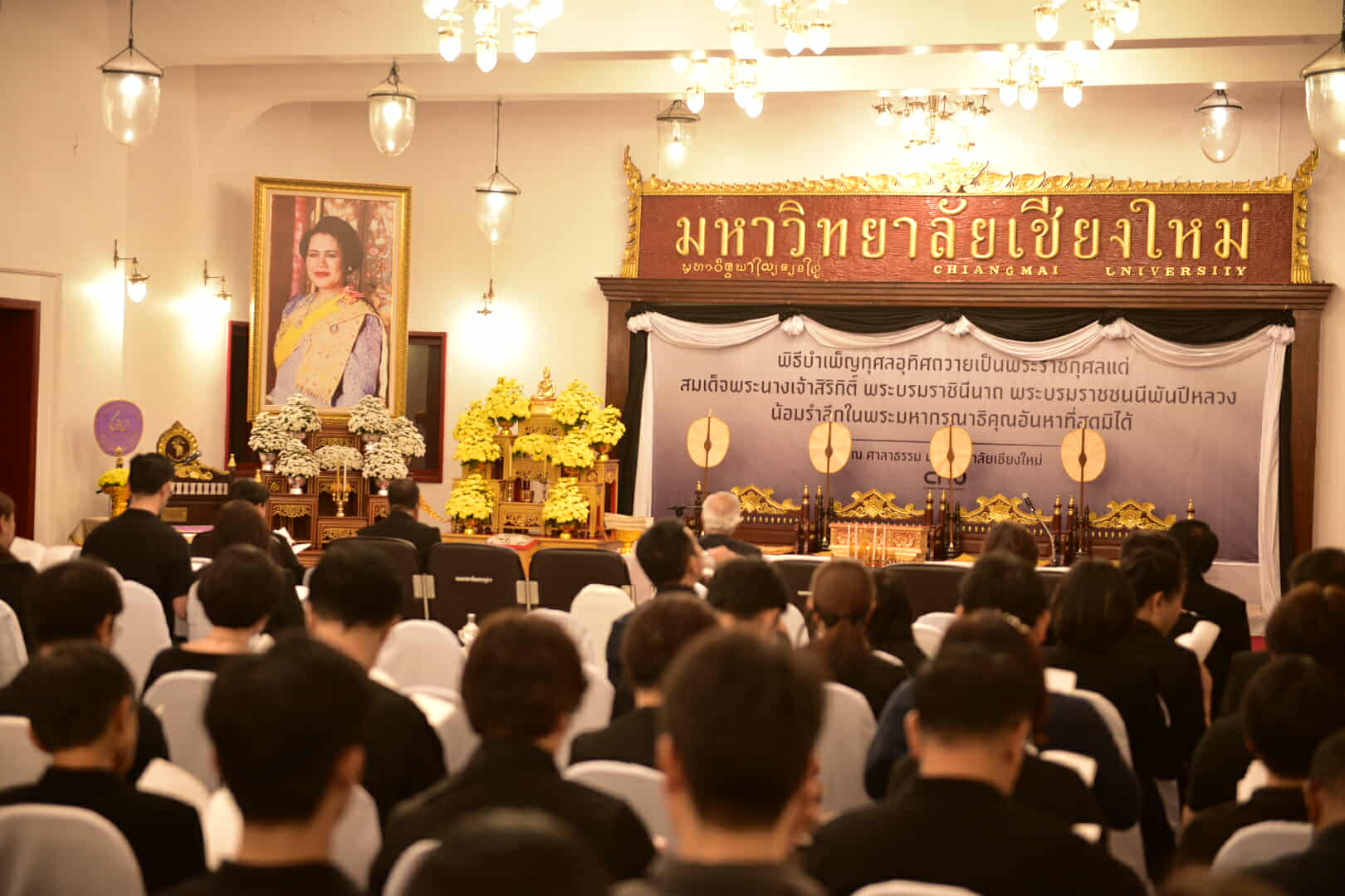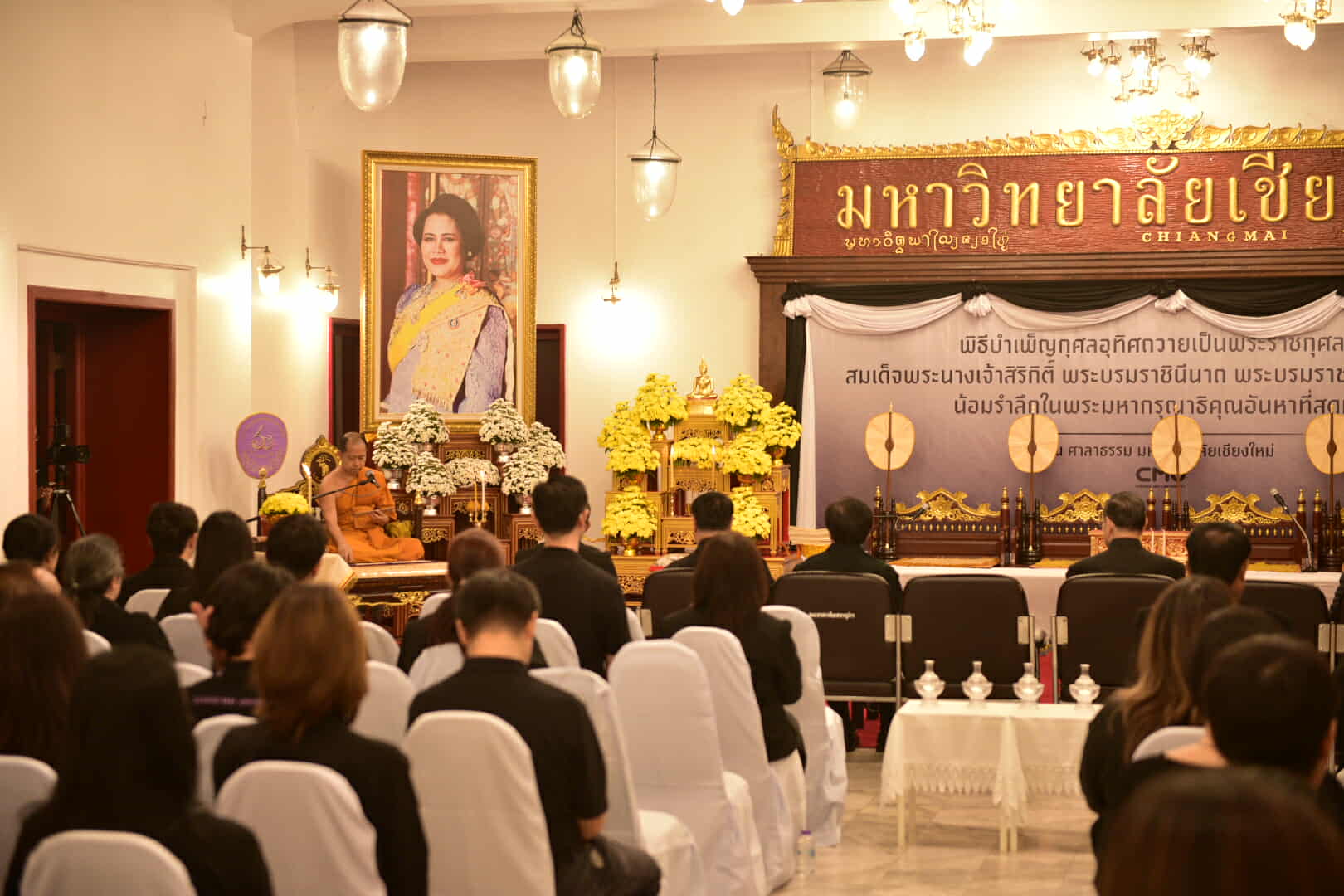 ผู้บริหารและบุคลากรคณะวิทยาศาสตร์ นำโดย รองศาสตราจารย์ ดร.ยิ่งมณี ตระกูลพัว รองคณบดี ร่วมพิธีบำเพ็ญกุศลอุทิศถวายเป็นพระราชกุศล แด่สมเด็จพระนางเจ้าสิริกิติ์ พระบรมราชินีนาถ พระบรมราชชนนีพันปีหลวง ณ ศาลาธรรม มหาวิทยาลัยเชียงใหม่ ในวันเสาร์ที่ 15 พฤศจิกายน 2568 โดยมีพระครูธีรสุตพจน์ ดร. (สง่า ธีรสํวโร) เจ้าอาวาสวัดผาลาด (สกทาคามี) เจ้าคณะตำบลสุเทพ เขต 2 ผู้ช่วยอธิการบดีฝ่ายบริหาร มหาวิทยาลัยมหาจุฬาลงกรณราชวิทยาลัย วิทยาเขตเชียงใหม่ เป็นองค์แสดงพระธรรมเทศนา ในโอกาสนี้ ได้รับเกียรติจาก ศาสตราจารย์พิเศษ ดร.สุรเกียรติ์ เสถียรไทย นายกสภามหาวิทยาลัยเชียงใหม่ เป็นประธานในพิธี พร้อมด้วยศาสตราจารย์เกียรติคุณ ดร.พงษ์ศักดิ์ อังกสิทธิ์ อดีตอธิการบดีมหาวิทยาลัยเชียงใหม่ ศาสตราจารย์ปฏิบัติ ดร.ชรินทร์ เตชะพันธุ์ รองอธิการบดี คณะผู้บริหาร คณาจารย์ บุคลากร จากส่วนงานต่างๆ นักศึกษามหาวิทยาลัยเชียงใหม่ และประชาชนร่วมพิธีฯ