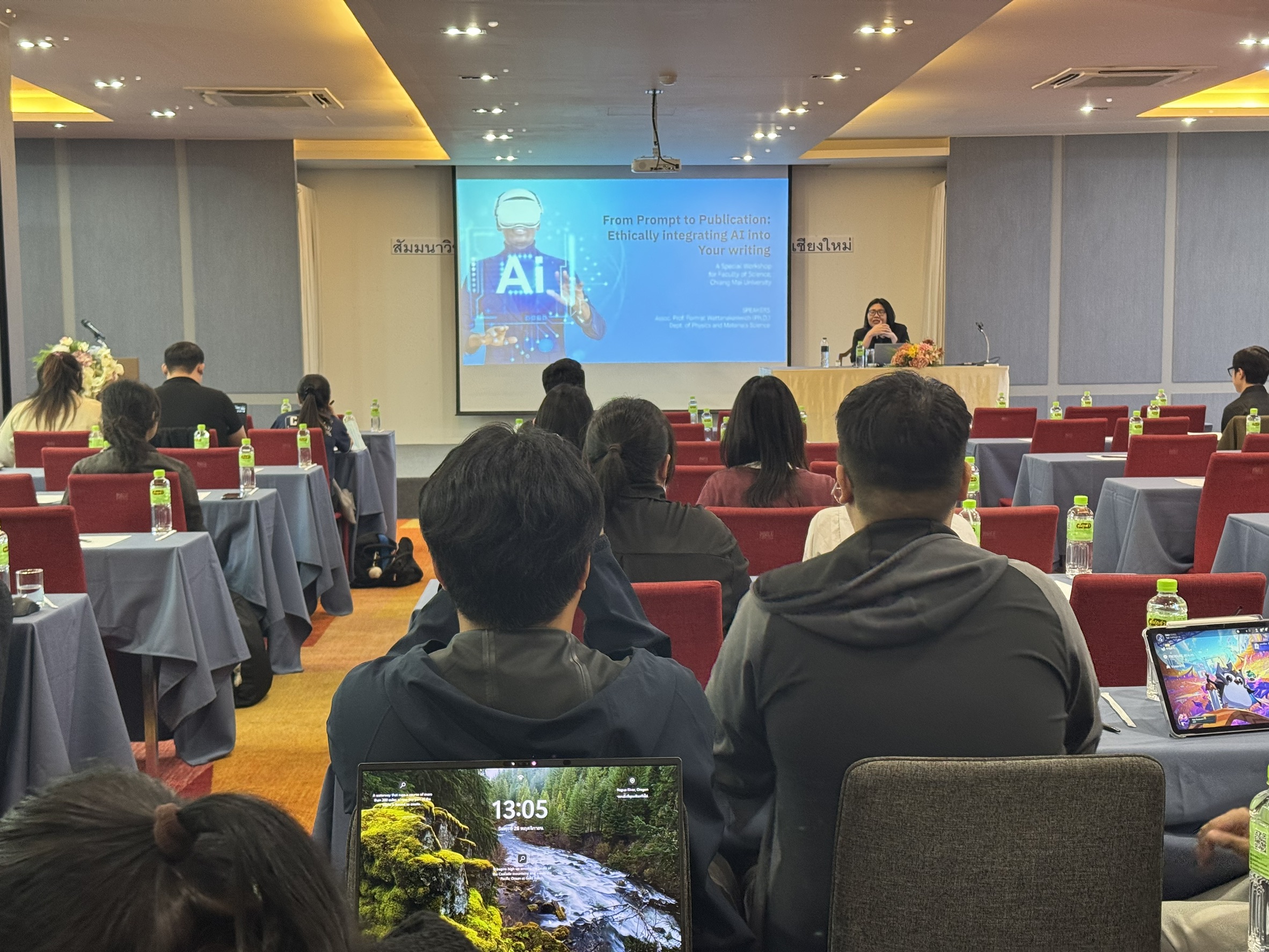 คณะวิทยาศาสตร์จัดการสัมมนาวิชาการบัณฑิตศึกษาคณะวิทยาศาสตร์ ประจำปีการศึกษา 2568 โดยได้รับเกียรติจาก ผู้ช่วยศาสตราจารย์ ดร.ภควรรณ พวงสมบัติ รองคณบดี เป็นประธานเปิดการสัมมนา ภายในงานมีการบรรยาย หัวข้อ การใช้ฐานข้อมูลอิเล็กทรอนิกส์เพื่อใช้ในการสืบค้นงานวิจัย และหัวข้อ From Prompt to Publication: Ethically, Integrating AI into Your Writing จาก Prompt ถึงการตีพิมพ์: การใช้ AI ในงานเขียนอย่างมีจริยธรรม ในวันที่ 26 พฤศจิกายน 2568 ณ ห้องประชุมสุพรรณิการ์ โรงแรมคุ้มภูคำ จังหวัดเชียงใหม่