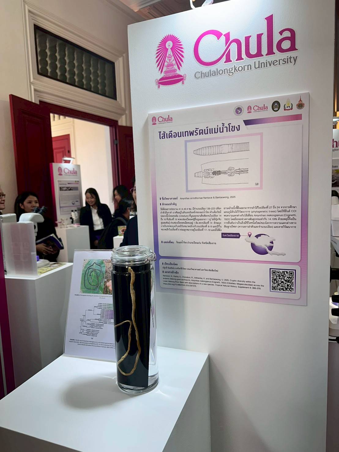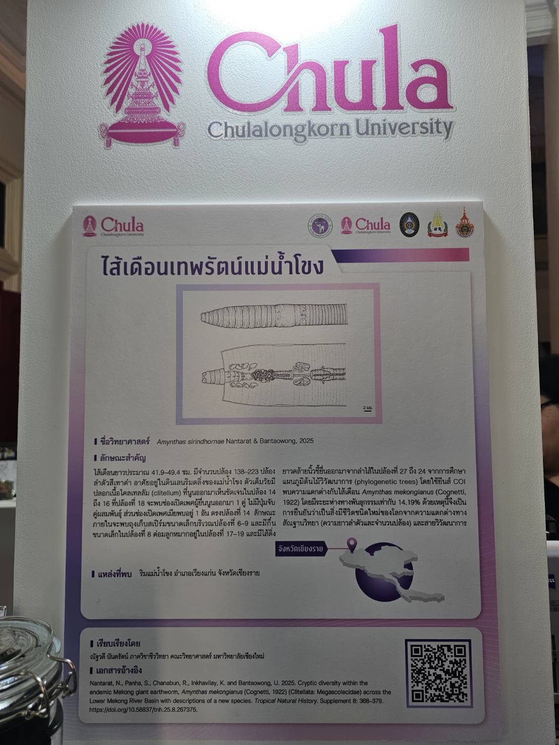 ทั้งนี้ 1 ใน สิ่งมีชีวิตชนิดใหม่ของโลกที่ค้นพบในประเทศไทย และมีการจัดแสดงในงานดังกล่าว คือ ไส้เดือนเทพรัตน์แม่น้ำโขง Amynthas sirindhornae ค้นพบโดยคณะนักวิจัย ซึ่งนำโดย ผศ.ดร.ณัฐวดี นันตรัตน์ ภาควิชาชีววิทยา คณะวิทยาศาสตร์ มหาวิทยาลัยเชียงใหม่ ร่วมกับนักวิจัยจากจุฬาลงกรณ์มหาวิทยาลัย และมหาวิทยาลัยต่างๆ แหล่งที่พบบริเวณริมแม่น้ำโขง อำเภอเวียงแก่น จังหวัดเชียงราย การค้นพบครั้งนี้ไม่เพียงแต่แสดงถึงความก้าวหน้าทางวิชาการและความร่วมมือของนักวิจัยไทยเท่านั้น แต่ยังแสดงถึงความสำคัญของระบบนิเวศลุ่มน้ำโขงที่ต้องได้รับความร่วมมือจากทุกภาคส่วนในการดูแลรักษาให้คงอยู่อย่างสมบูรณ์ต่อไป