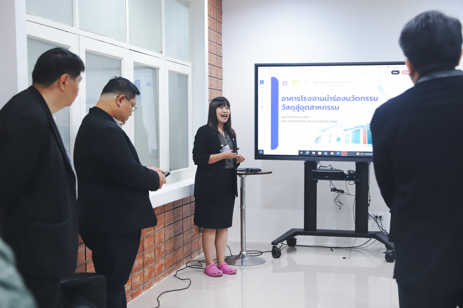 กิจกรรมครั้งนี้ได้รับเกียรติจาก รองศาสตราจารย์ ดร.วินิตา บุณโยดม รองอธิการบดีมหาวิทยาลัยเชียงใหม่ รองศาสตราจารย์ ดร.ปิยะพงศ์ เนียมทรัพย์ คณบดีคณะวิทยาศาสตร์ และผู้ช่วยศาสตราจารย์ ดร.ชัยสิทธิ์ บรรจงประเสริฐ หัวหน้าศูนย์วิจัยวัสดุศาสตร์ ร่วมให้การต้อนรับคณะผู้บริหารกว่า 40 ท่าน พร้อมนำเสนอผลงานวิจัยที่โดดเด่นของคณะฯ ซึ่งกำลังเปลี่ยนผ่านจากห้องปฏิบัติการสู่การใช้งานจริงในภาคอุตสาหกรรม