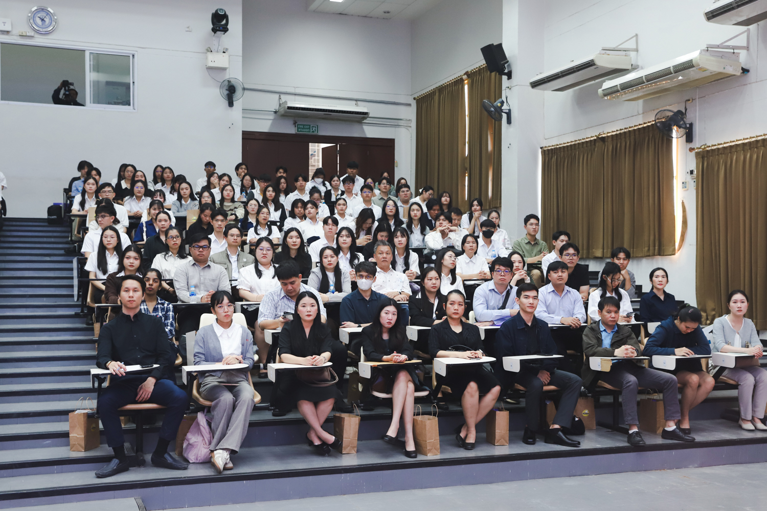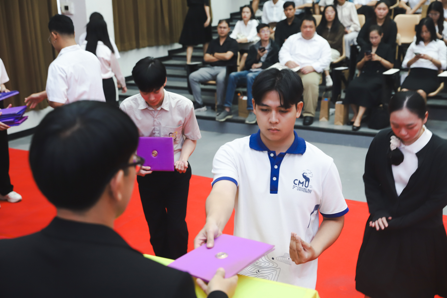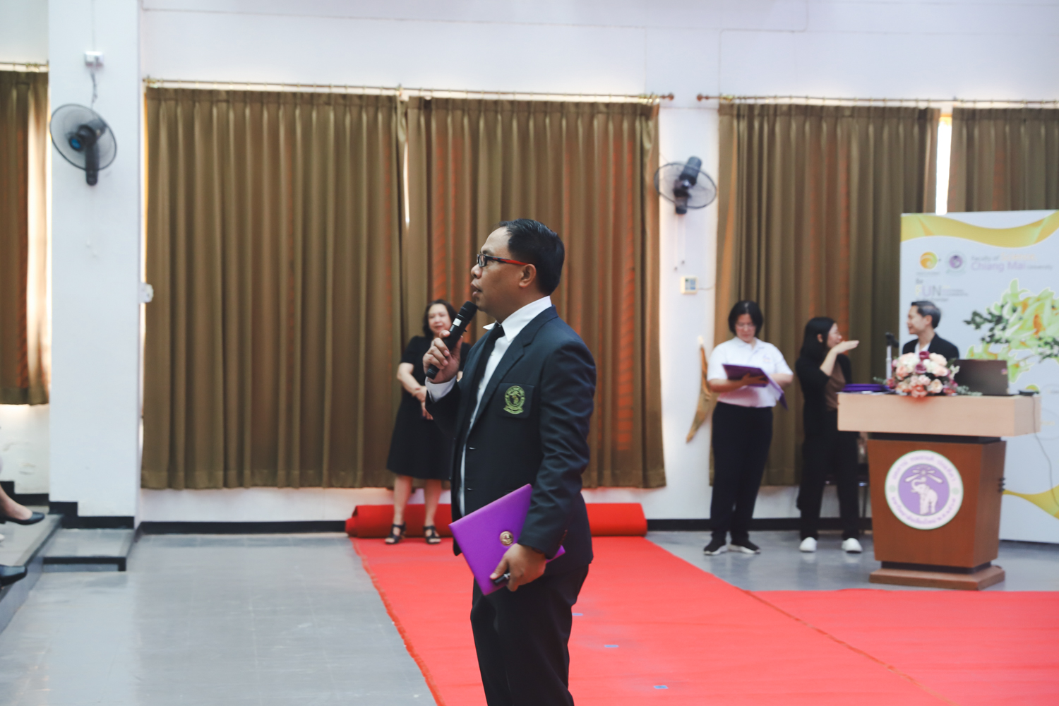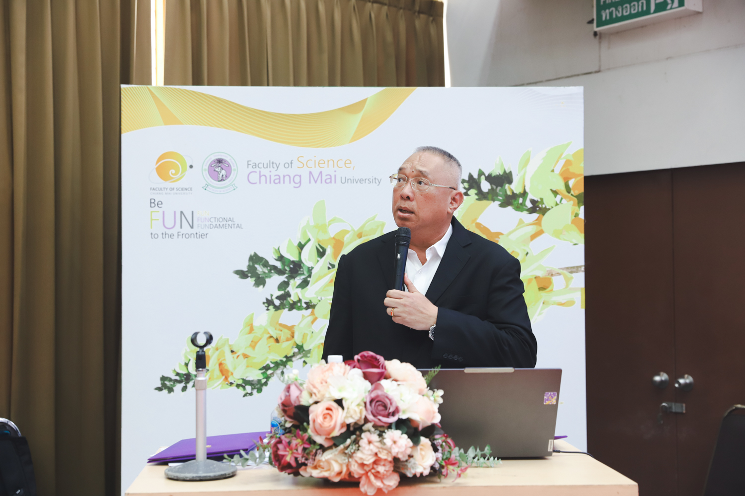 รศ.ดร.ปิยะพงศ์ เนียมทรัพย์ คณบดีคณะวิทยาศาสตร์ และคุณพร้อมพร อิศรางกูร ณ อยุธยา นายกสมาคมนักศึกษาเก่าคณะวิทยาศาสตร์ กล่าวต้อนรับ และแสดงความยินดีกับบัณฑิตใหม่ของคณะวิทยาศาสตร์ ที่จะเข้ารับพระราชทานปริญญาบัตร ครั้งที่ 60 ของมหาวิทยาลัยเชียงใหม่ ในวันที่ 21-22 มกราคม 2569 ในการฝึกซ้อมเข้ารับพระราชทานปริญญาบัตรของบัณฑิตคณะวิทยาศาสตร์ เมื่อวันที่ 18 มกราคม 2569 ณ ห้องบรรยาย SCB2100 อาคาร 40 ปี คณะวิทยาศาสตร์