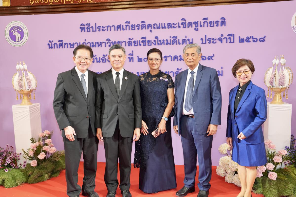 รศ.ดร.ปิยะพงศ์ เนียมทรัพย์ คณบดีคณะวิทยาศาสตร์ พร้อมด้วยคุณพร้อมพร อิศรางกูร ณ อยุธยา นายกสมาคมนักศึกษาเก่าคณะวิทยาศาสตร์ และผู้บริหาร ร่วมแสดงความยินดีกับนักศึกษาเก่าคณะวิทยาศาสตร์ที่เข้ารับการเชิดชูเกียรติในพิธีประกาศเกียรติคุณและแสดงความยินดีแก่นักศึกษาเก่ามหาวิทยาลัยเชียงใหม่ดีเด่น ประจำปี พ.ศ. 2568 โดยมี ศาสตราจารย์ ดร.นายแพทย์พงษ์รักษ์ ศรีบัณทิตมงคล อธิการบดีมหาวิทยาลัยเชียงใหม่ เป็นประธานในพิธี ในวันอังคารที่ 20 มกราคม 2569 ณ ศาลาธรรม มหาวิทยาลัยเชียงใหม่