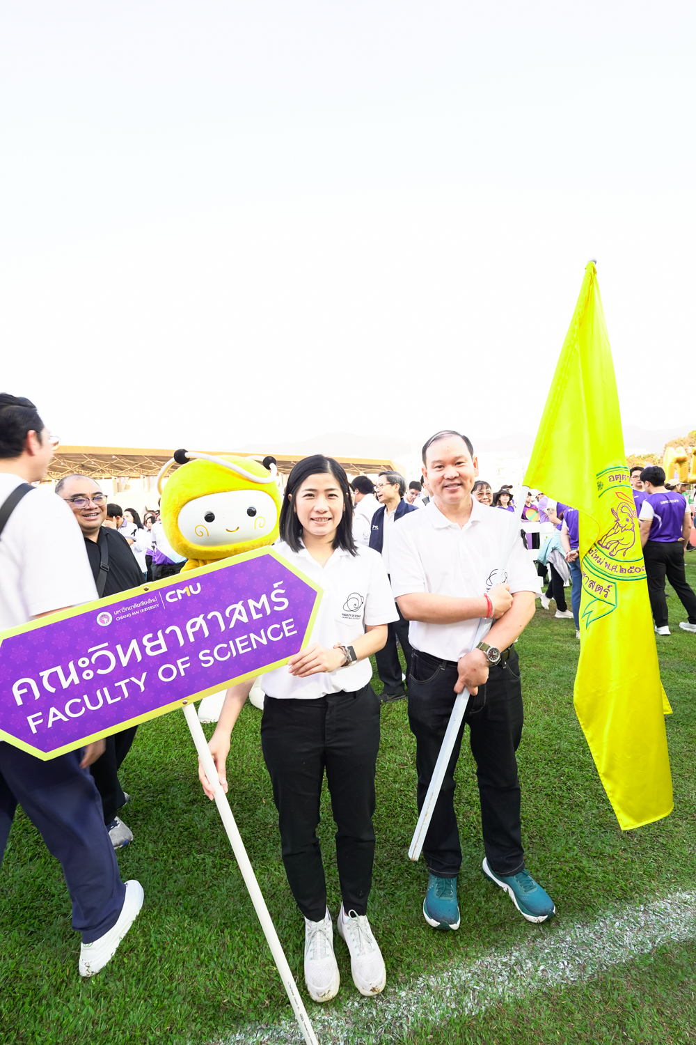 รองศาสตราจารย์ ดร.ปิยะพงศ์ เนียมทรัพย์ คณบดีคณะวิทยาศาสตร์ นำทีมผู้บริหาร คณาจารย์ และบุคลากรคณะวิทยาศาสตร์ ร่วมเดินขบวนพาเหรด และร่วมแข่งขันกรีฑา ในงาน CMU Sports Day 2026 การแข่งขันกีฬาบุคลากรมหาวิทยาลัยเชียงใหม่ ประจำปี 2569 เมื่อวันเสาร์ที่ 7 กุมภาพันธ์ 2569 ณ สนามกีฬากลาง มหาวิทยาลัยเชียงใหม่ ซึ่งจัดขึ้นเพื่อส่งเสริมให้บุคลากรชาวมหาวิทยาลัยเชียงใหม่มีสุขภาพร่ายกายที่แข็งแรง มีความสามัคคีกลมเกลียว และสร้างความสัมพันธ์อันดีระหว่างบุคลากรทั้งภายในคณะ และระหว่างหน่วยงานต่างๆ ภายในมหาวิทยาลัยเชียงใหม่ โดยมีผู้บริหาร คณาจารย์ และบุคลากรคณะวิทยาศาสตร์ เข้าร่วมกิจกรรมอย่างคับคั่ง