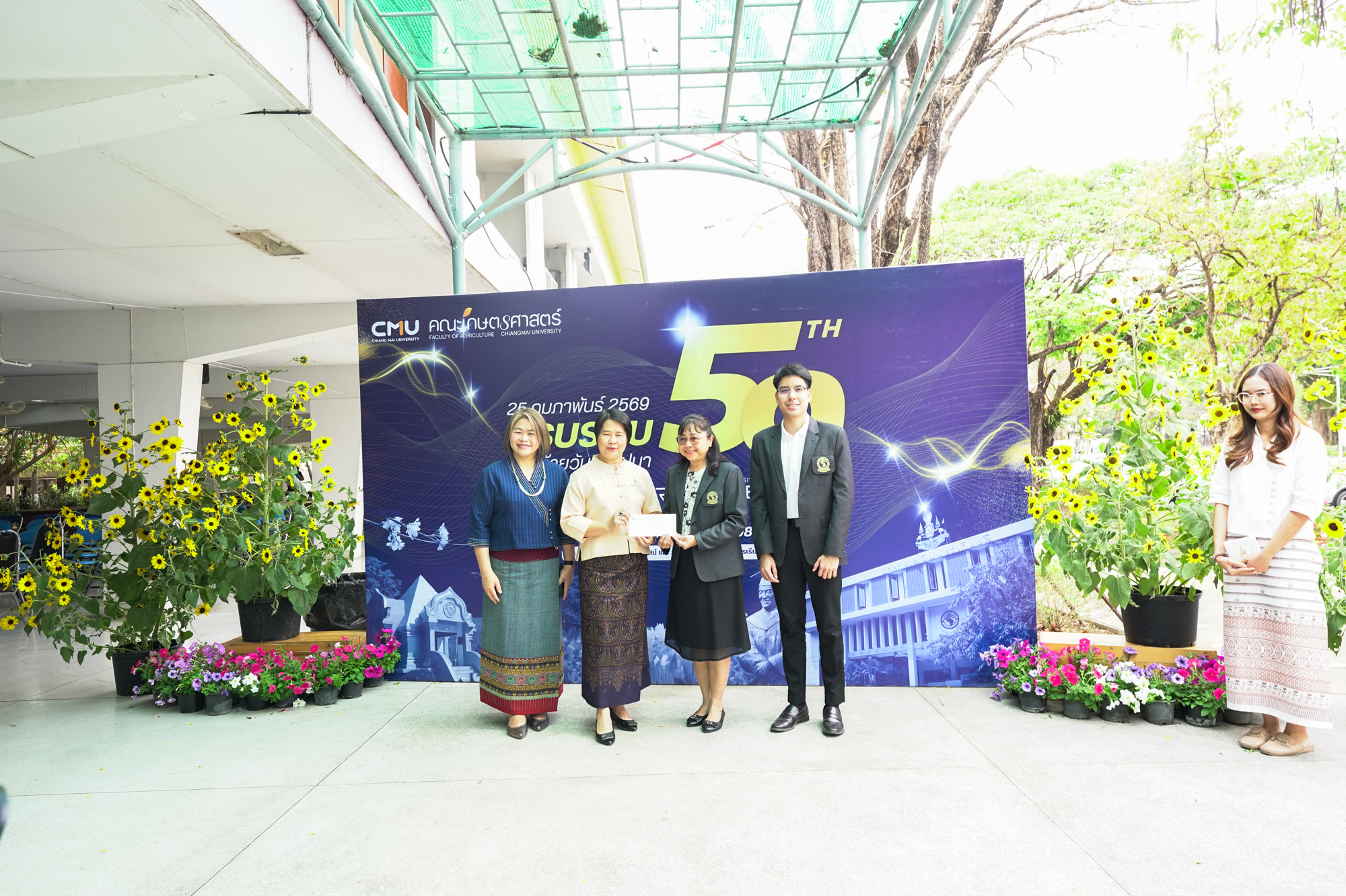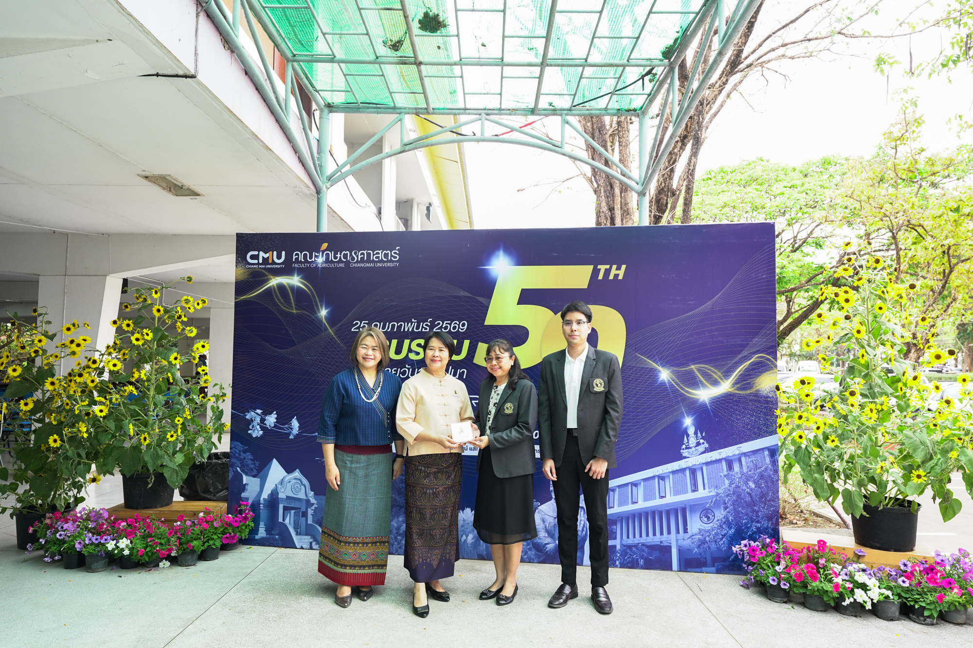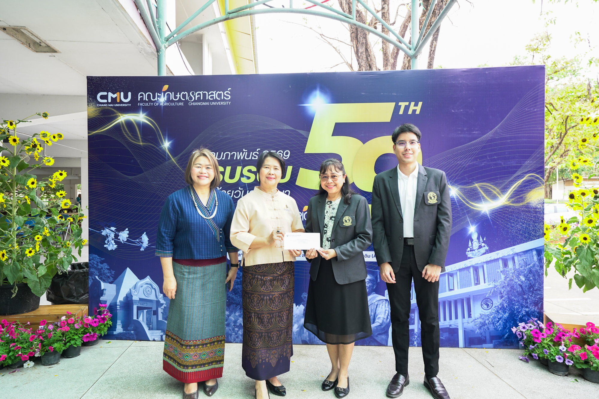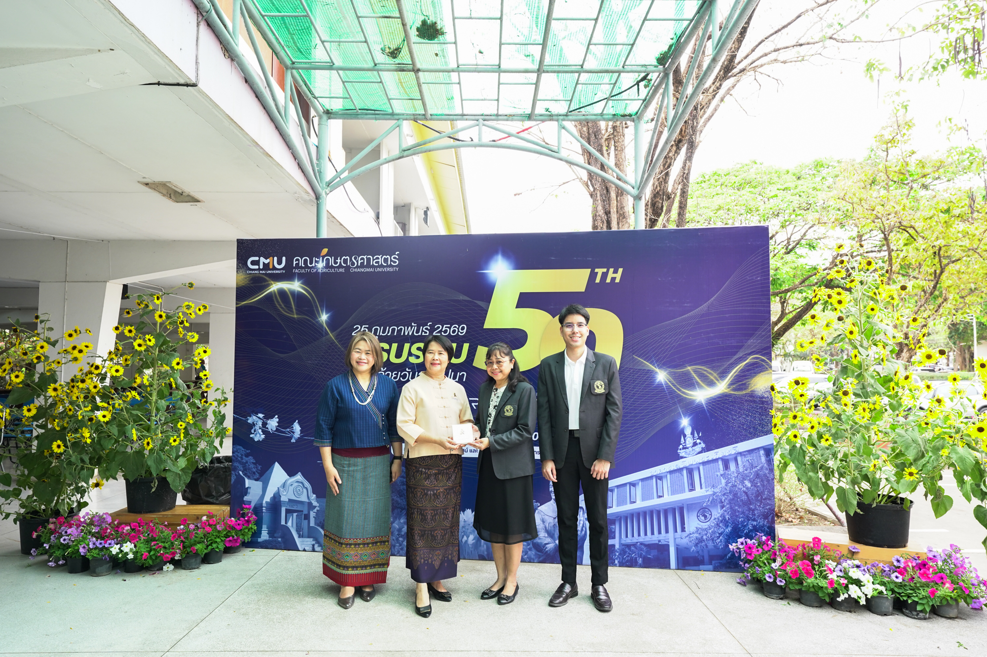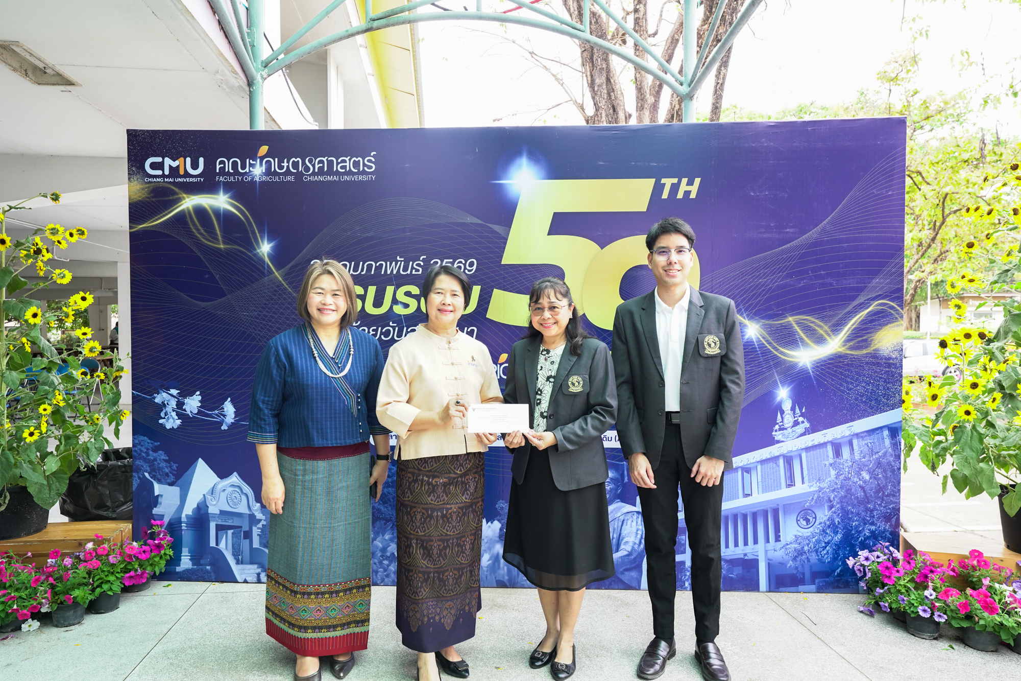 รองศาสตราจารย์ ดร.ยิ่งมณี ตระกูลพัว รองคณบดีคณะวิทยาศาสตร์ พร้อมด้วยนายพิชัย นาคปฐม เลขานุการคณะวิทยาศาสตร์ ร่วมทำบุญวันคล้ายวันสถาปนาคณะเกษตรศาสตร์ มหาวิทยาลัยเชียงใหม่ ในวันที่ 25 กุมภาพันธ์ 2569 ณ คณะเกษตรศาสตร์