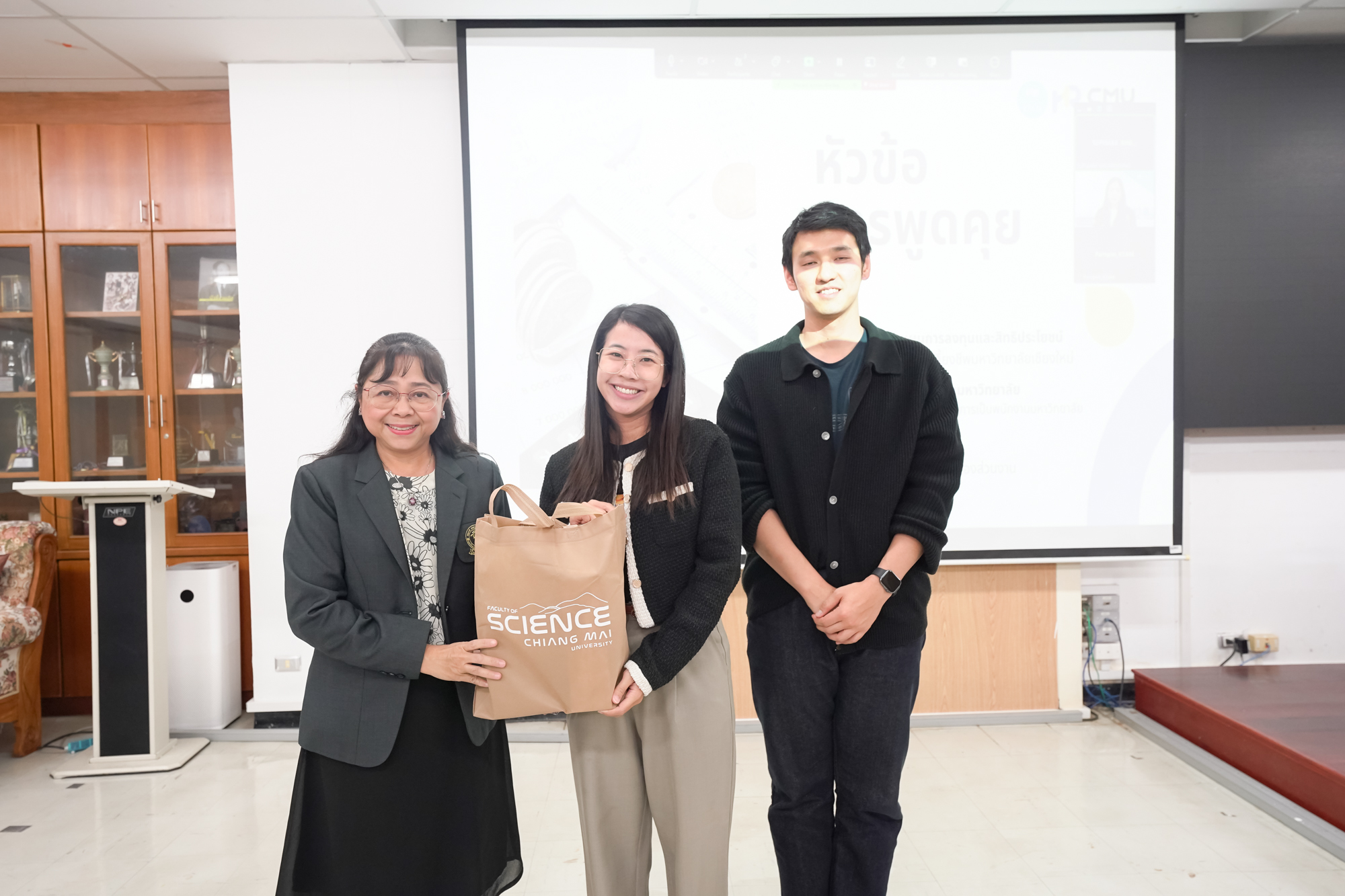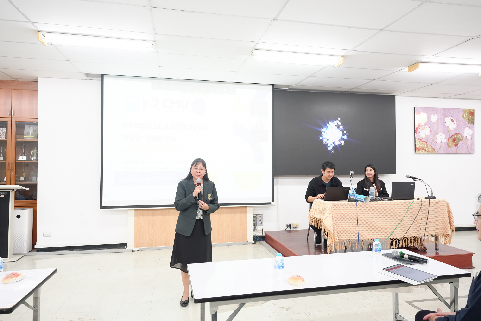 รองศาสตราจารย์ ดร.ยิ่งมณี ตระกูลพัว รองคณบดีคณะวิทยาศาสตร์ ให้เกียรติเป็นประธานเปิดกิจกรรม "กองทุนและสวัสดิการ มช. พบปะบุคลากรส่วนงาน" คณะวิทยาศาสตร์ ซึ่งจัดขึ้นเพื่อสร้างความรู้ความเข้าใจ ชี้แจง และแลกเปลี่ยนเรียนรู้ เกี่ยวกับสิทธิสวัสดิการภาพรวม และกองทุนสำรองเลี้ยงชีพ ที่เกี่ยวข้องกับพนักงานมหาวิทยาลัย ตั้งแต่แรกเข้าถึงสิ้นสุดการเป็นพนักงานมหาวิทยาลัย ให้แก่เจ้าหน้าที่ที่เกี่ยวข้องและบุคลากรที่สนใจ โดยวิทยากรจากกองทรัพยากรทุนมนุษย์ มช. ในวันที่ 25 กุมภาพันธ์ 2569 ห้องสัมมนา ชั้น 2 ตึก 40 ปี คณะวิทยาศาสตร์