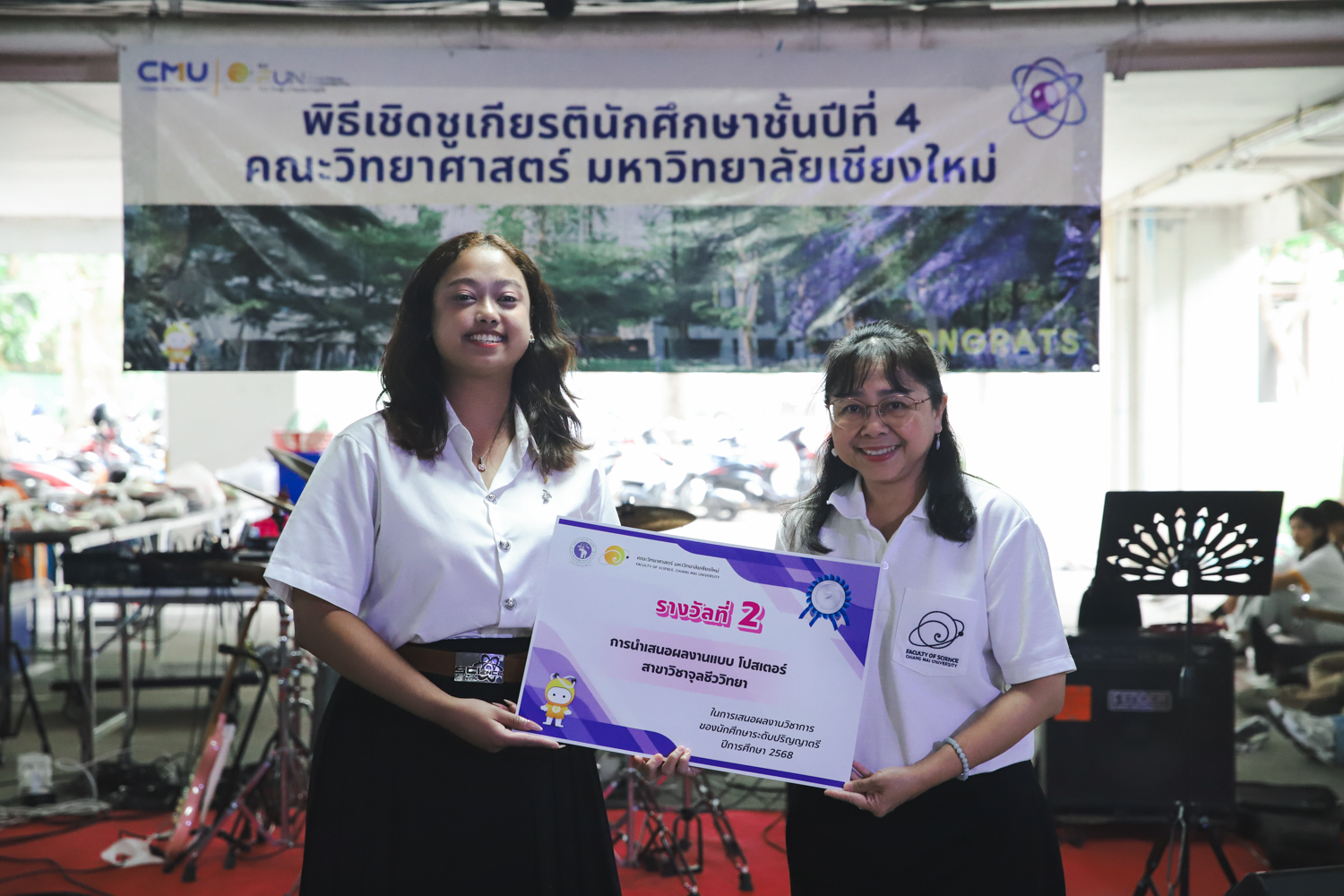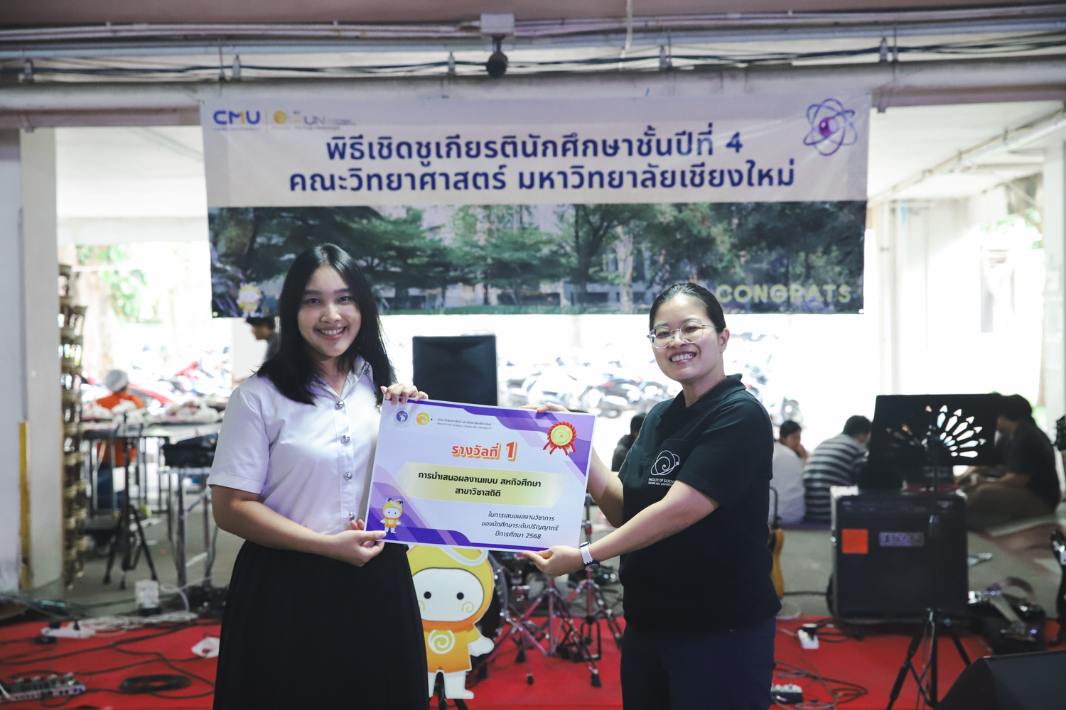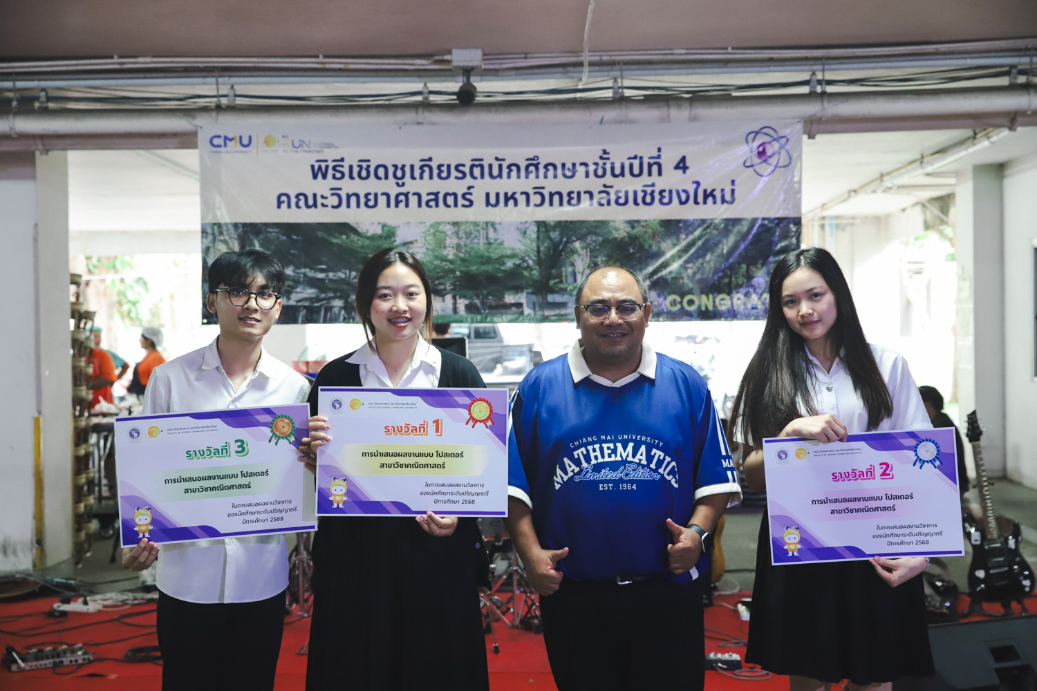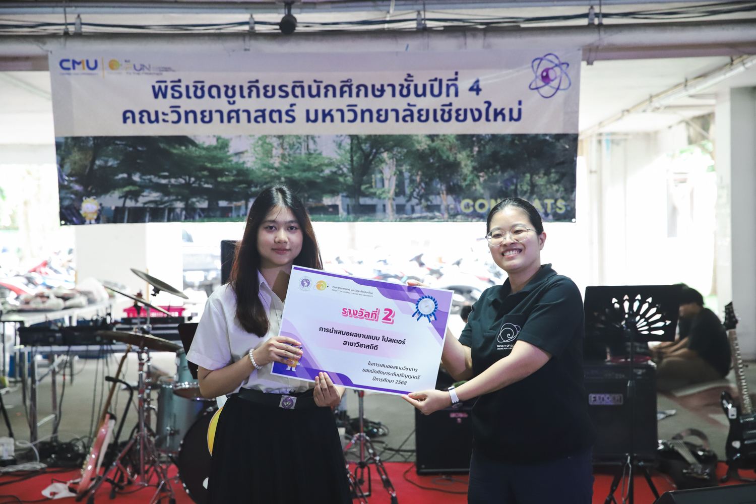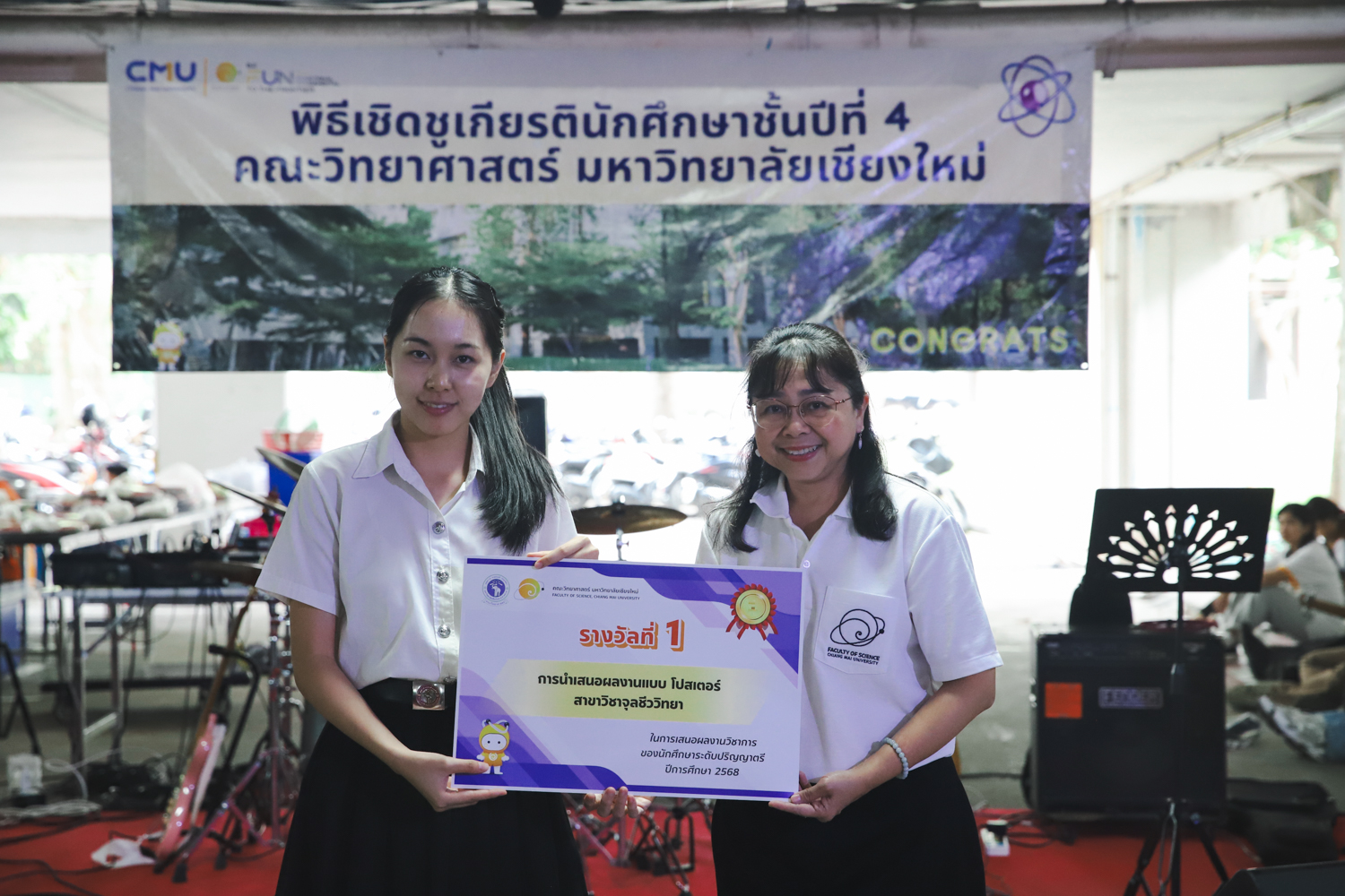 เมื่อวันที่ 11 มีนาคม 2569 ณ อาคาร 40 ปีฯ คณะวิทยาศาสตร์จัดพิธีปัจฉิมนิเทศและงานเลี้ยงแสดงความยินดีกับนักศึกษาชั้นปีที่ 4 ประจำปีการศึกษา 2568 โดยได้รับเกียรติจาก ศาสตราจารย์ ดร.ปิยะพงศ์ เนียมทรัพย์ คณบดีคณะวิทยาศาสตร์ กล่าวแสดงความยินดีและให้โอวาทแก่นักศึกษา โดยเน้นย้ำถึงการนำความรู้ทางวิทยาศาสตร์ไปสร้างคุณประโยชน์ทั้งต่อตนเองและสังคม โดยไฮไลท์สำคัญภายในงานนอกจากจะเป็นการเฉลิมฉลองความสำเร็จก้าวแรกของพี่ปี 4 แล้ว ยังมีการมอบรางวัลเพื่อเชิดชูความเก่งและความทุ่มเทของเหล่านักศึกษาในด้านต่าง ๆ เช่น เกียรติบัตรคณะกรรมการสโมสรนักศึกษา เพื่อชื่นชมผู้เสียสละทำงานเพื่อส่วนรวมตลอดปีการศึกษา รางวัล The Best Atom รางวัลสุดพิเศษที่มอบให้แก่ไอดอลต้นแบบของคณะฯ ในสาขาต่างๆ รางวัลการนำเสนอผลงานทางวิชาการ ที่การันตีคุณภาพความรู้และความเชี่ยวชาญก่อนออกสู่โลกกว้างของนักศึกษา บรรยากาศการจัดงานเต็มไปด้วยรอยยิ้มและความประทับใจ ตอกย้ำความสัมพันธ์ที่เหนียวแน่นของครอบครัววิทยา มช.