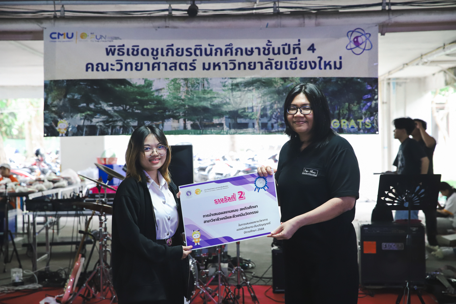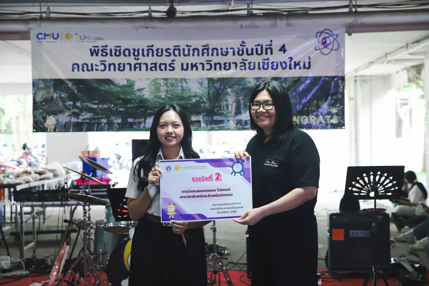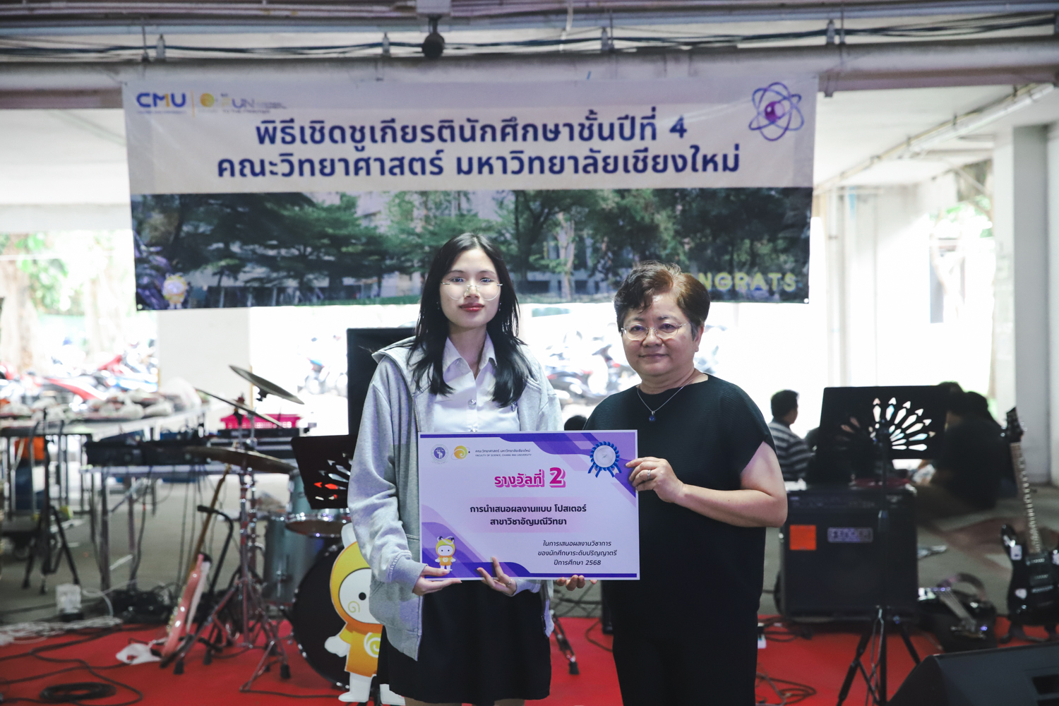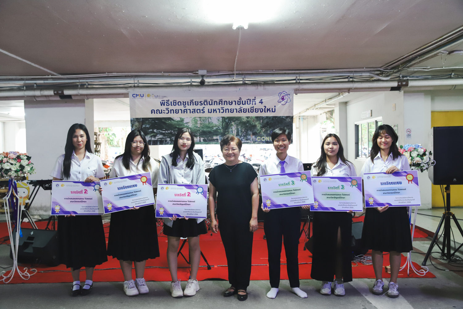 เมื่อวันที่ 11 มีนาคม 2569 ณ อาคาร 40 ปีฯ คณะวิทยาศาสตร์จัดพิธีปัจฉิมนิเทศและงานเลี้ยงแสดงความยินดีกับนักศึกษาชั้นปีที่ 4 ประจำปีการศึกษา 2568 โดยได้รับเกียรติจาก ศาสตราจารย์ ดร.ปิยะพงศ์ เนียมทรัพย์ คณบดีคณะวิทยาศาสตร์ กล่าวแสดงความยินดีและให้โอวาทแก่นักศึกษา โดยเน้นย้ำถึงการนำความรู้ทางวิทยาศาสตร์ไปสร้างคุณประโยชน์ทั้งต่อตนเองและสังคม โดยไฮไลท์สำคัญภายในงานนอกจากจะเป็นการเฉลิมฉลองความสำเร็จก้าวแรกของพี่ปี 4 แล้ว ยังมีการมอบรางวัลเพื่อเชิดชูความเก่งและความทุ่มเทของเหล่านักศึกษาในด้านต่าง ๆ เช่น เกียรติบัตรคณะกรรมการสโมสรนักศึกษา เพื่อชื่นชมผู้เสียสละทำงานเพื่อส่วนรวมตลอดปีการศึกษา รางวัล The Best Atom รางวัลสุดพิเศษที่มอบให้แก่ไอดอลต้นแบบของคณะฯ ในสาขาต่างๆ รางวัลการนำเสนอผลงานทางวิชาการ ที่การันตีคุณภาพความรู้และความเชี่ยวชาญก่อนออกสู่โลกกว้างของนักศึกษา บรรยากาศการจัดงานเต็มไปด้วยรอยยิ้มและความประทับใจ ตอกย้ำความสัมพันธ์ที่เหนียวแน่นของครอบครัววิทยา มช.