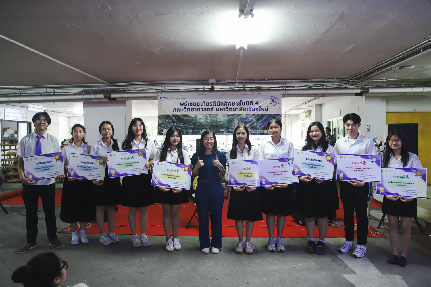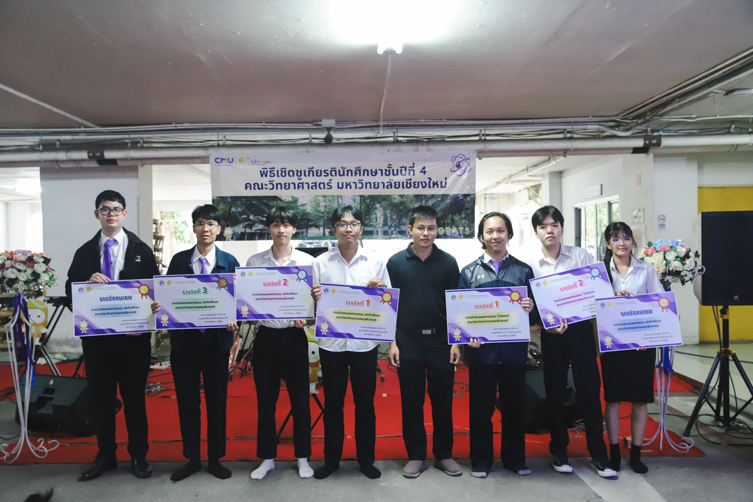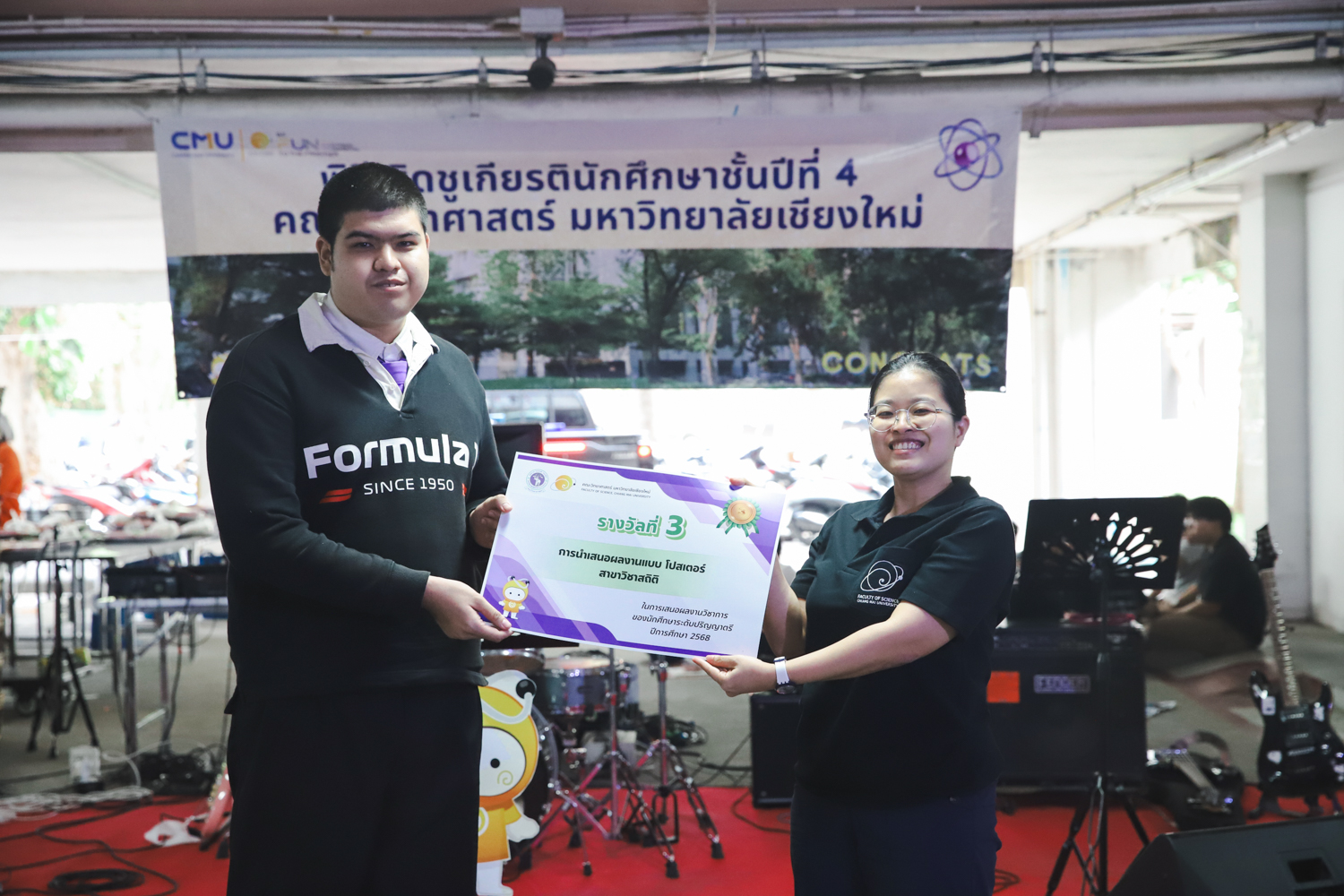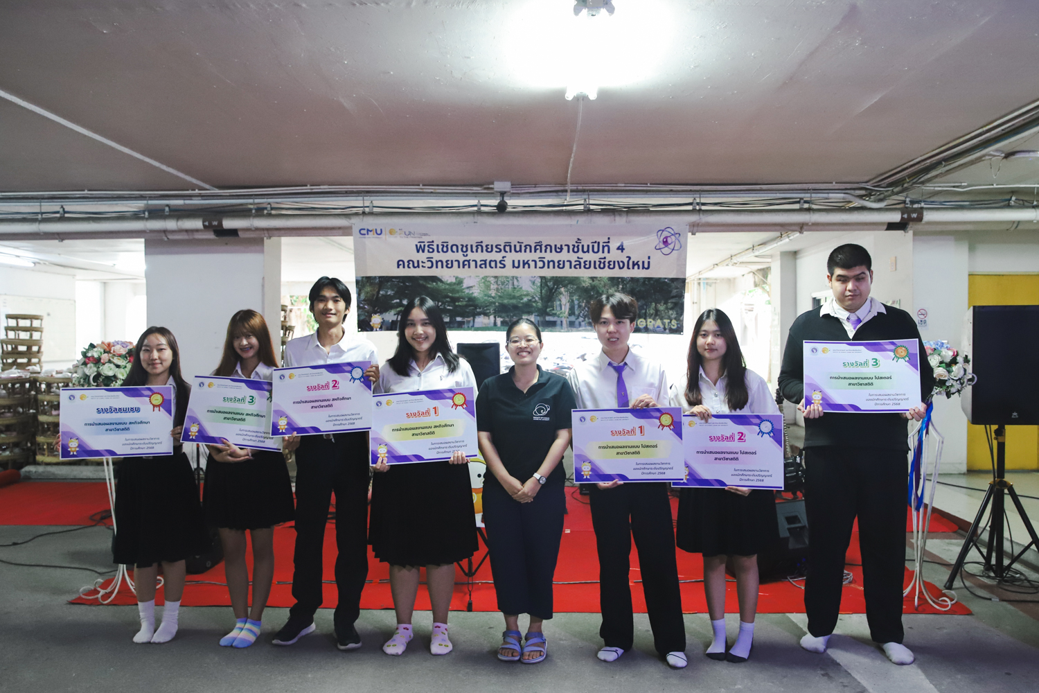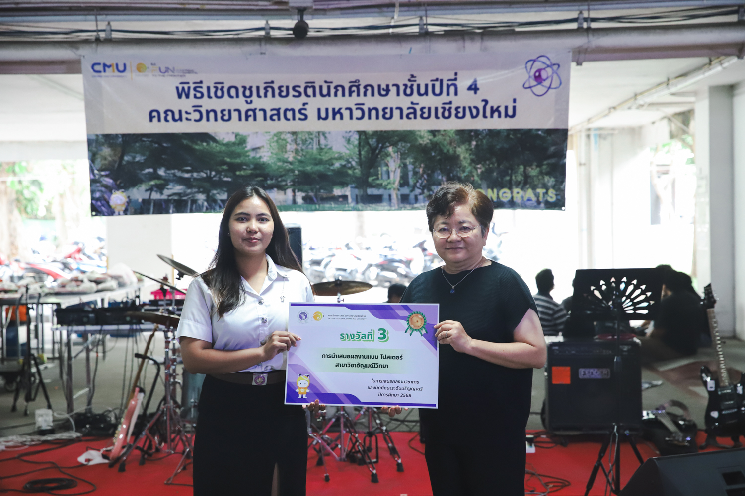 เมื่อวันที่ 11 มีนาคม 2569 ณ อาคาร 40 ปีฯ คณะวิทยาศาสตร์จัดพิธีปัจฉิมนิเทศและงานเลี้ยงแสดงความยินดีกับนักศึกษาชั้นปีที่ 4 ประจำปีการศึกษา 2568 โดยได้รับเกียรติจาก ศาสตราจารย์ ดร.ปิยะพงศ์ เนียมทรัพย์ คณบดีคณะวิทยาศาสตร์ กล่าวแสดงความยินดีและให้โอวาทแก่นักศึกษา โดยเน้นย้ำถึงการนำความรู้ทางวิทยาศาสตร์ไปสร้างคุณประโยชน์ทั้งต่อตนเองและสังคม โดยไฮไลท์สำคัญภายในงานนอกจากจะเป็นการเฉลิมฉลองความสำเร็จก้าวแรกของพี่ปี 4 แล้ว ยังมีการมอบรางวัลเพื่อเชิดชูความเก่งและความทุ่มเทของเหล่านักศึกษาในด้านต่าง ๆ เช่น เกียรติบัตรคณะกรรมการสโมสรนักศึกษา เพื่อชื่นชมผู้เสียสละทำงานเพื่อส่วนรวมตลอดปีการศึกษา รางวัล The Best Atom รางวัลสุดพิเศษที่มอบให้แก่ไอดอลต้นแบบของคณะฯ ในสาขาต่างๆ รางวัลการนำเสนอผลงานทางวิชาการ ที่การันตีคุณภาพความรู้และความเชี่ยวชาญก่อนออกสู่โลกกว้างของนักศึกษา บรรยากาศการจัดงานเต็มไปด้วยรอยยิ้มและความประทับใจ ตอกย้ำความสัมพันธ์ที่เหนียวแน่นของครอบครัววิทยา มช.