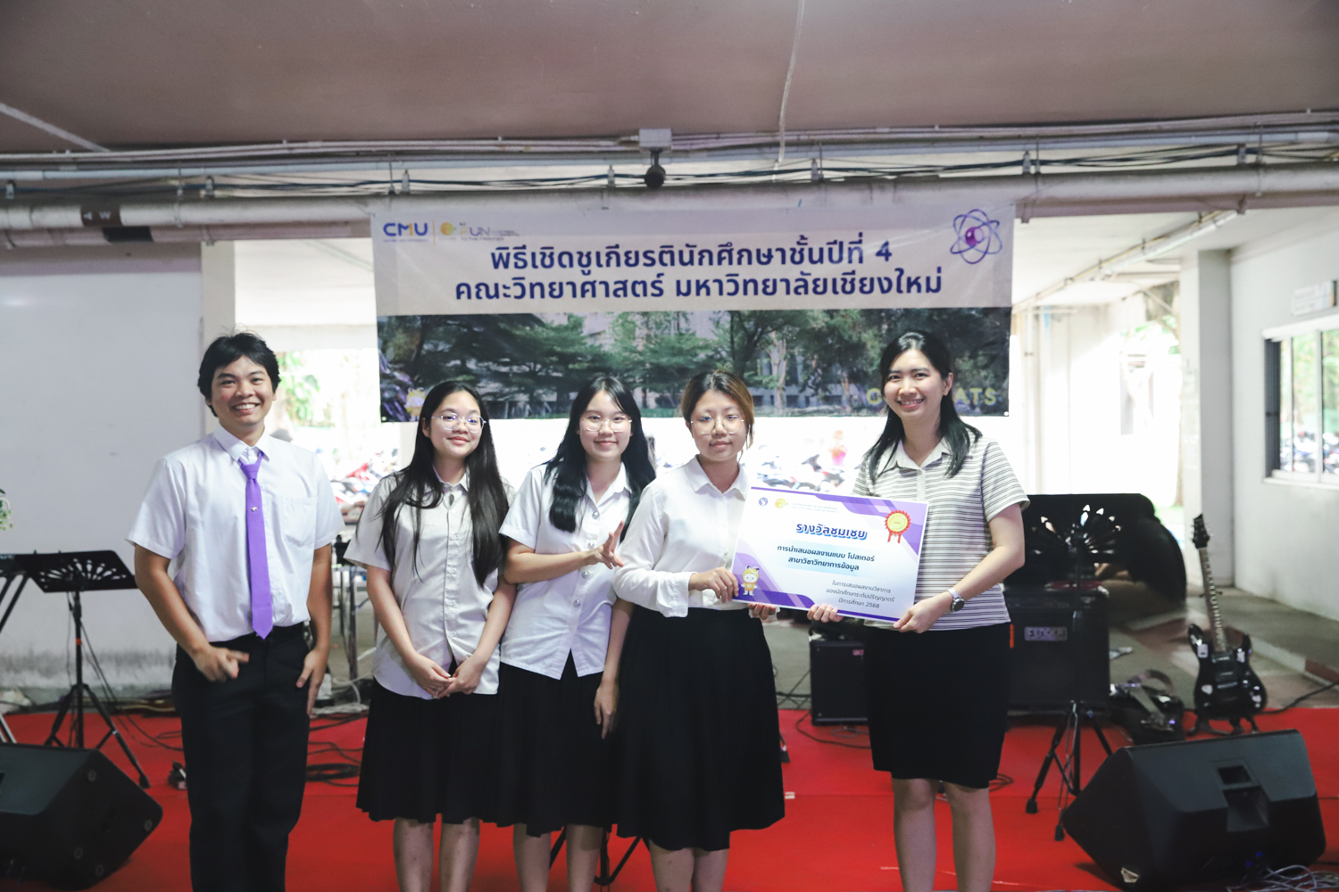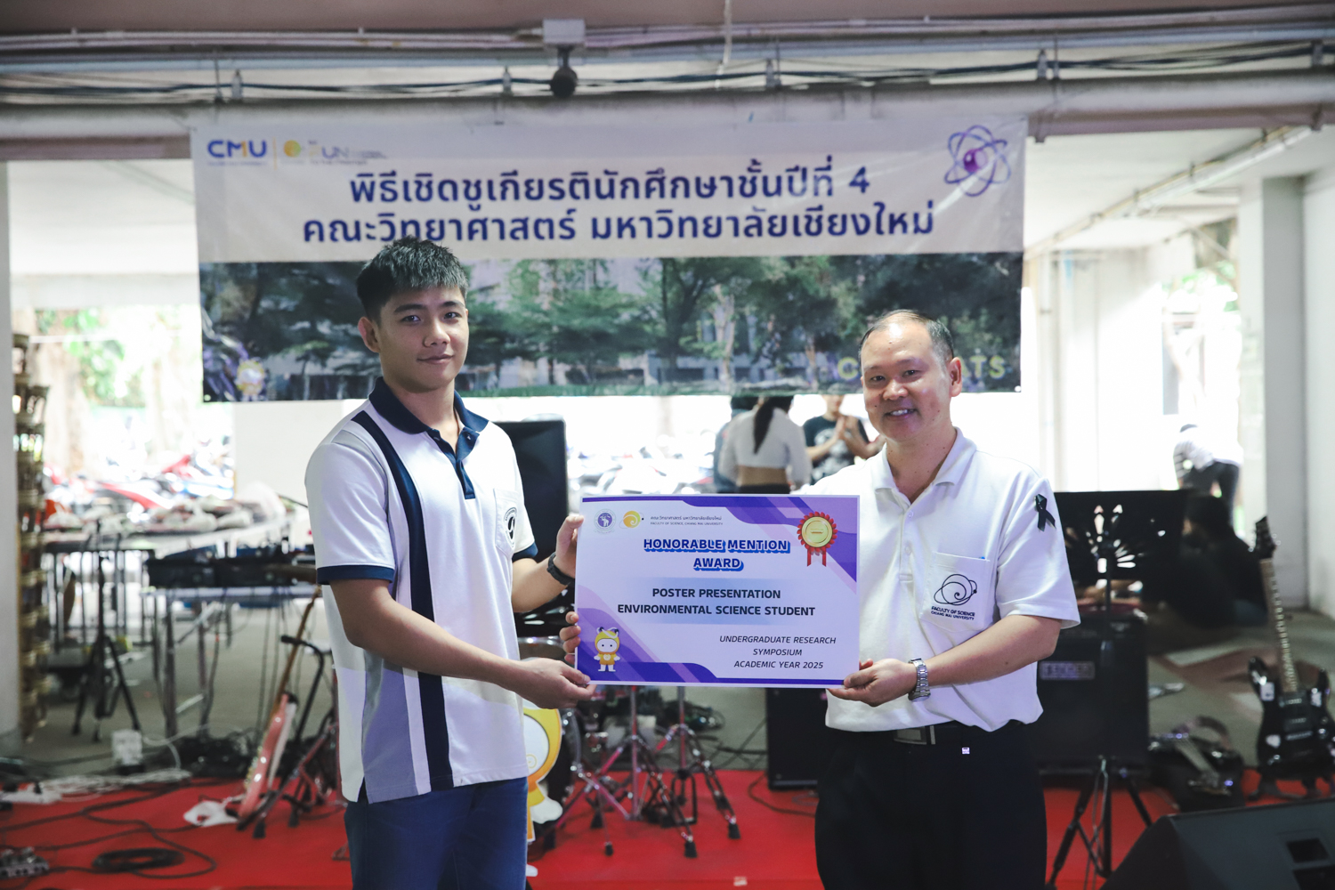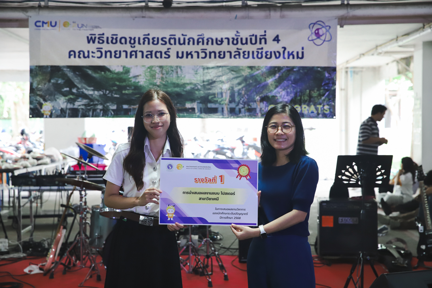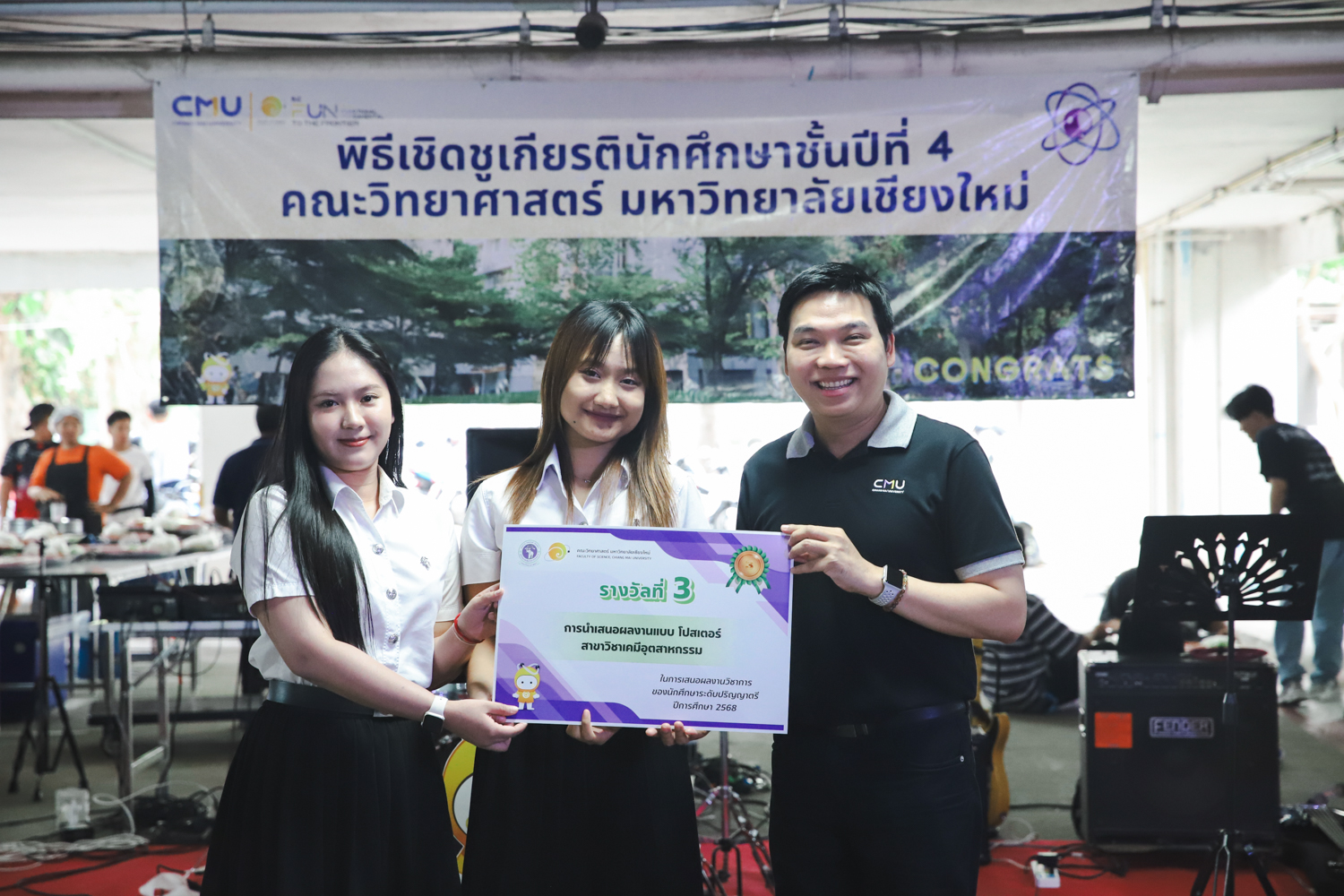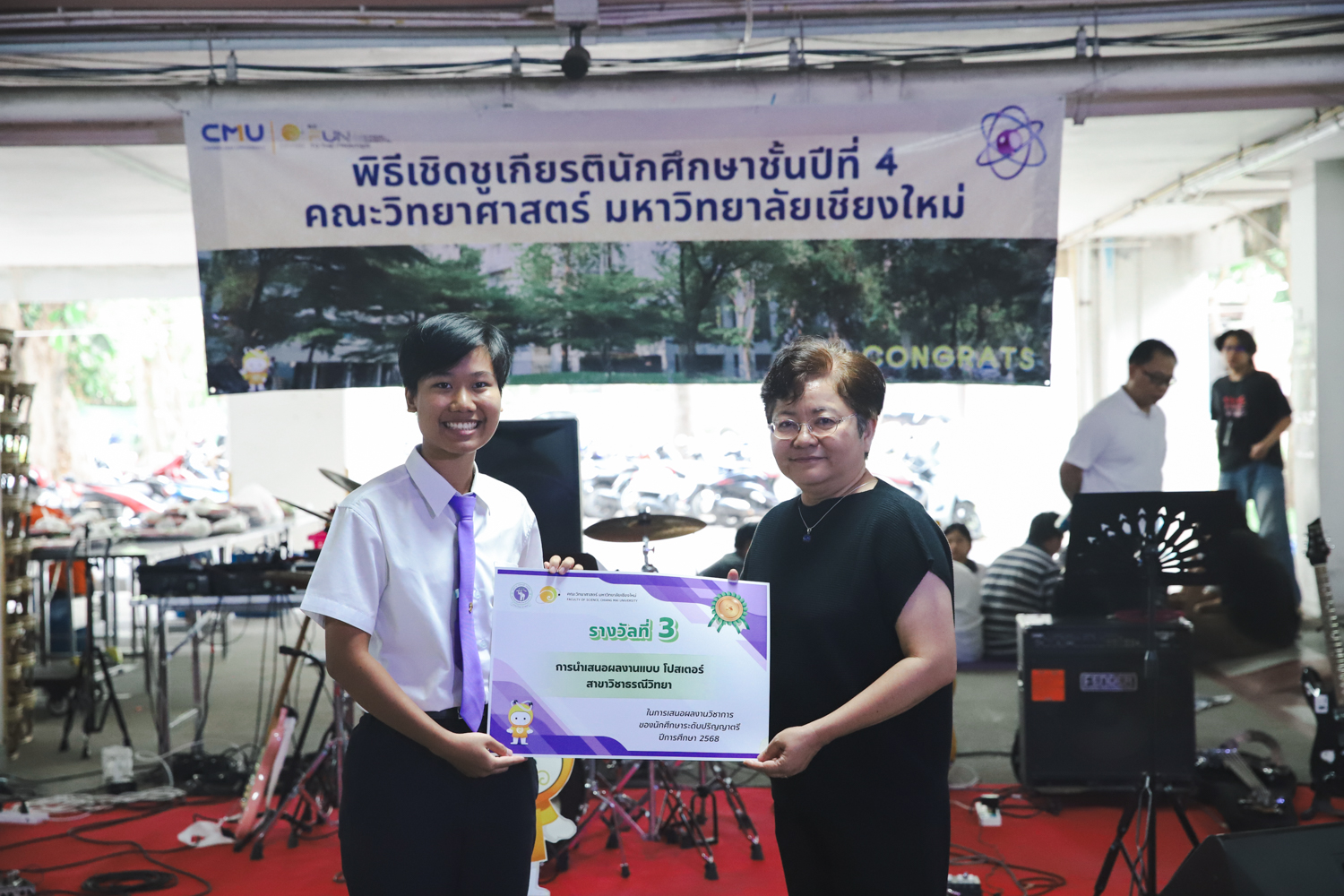 เมื่อวันที่ 11 มีนาคม 2569 ณ อาคาร 40 ปีฯ คณะวิทยาศาสตร์จัดพิธีปัจฉิมนิเทศและงานเลี้ยงแสดงความยินดีกับนักศึกษาชั้นปีที่ 4 ประจำปีการศึกษา 2568 โดยได้รับเกียรติจาก ศาสตราจารย์ ดร.ปิยะพงศ์ เนียมทรัพย์ คณบดีคณะวิทยาศาสตร์ กล่าวแสดงความยินดีและให้โอวาทแก่นักศึกษา โดยเน้นย้ำถึงการนำความรู้ทางวิทยาศาสตร์ไปสร้างคุณประโยชน์ทั้งต่อตนเองและสังคม โดยไฮไลท์สำคัญภายในงานนอกจากจะเป็นการเฉลิมฉลองความสำเร็จก้าวแรกของพี่ปี 4 แล้ว ยังมีการมอบรางวัลเพื่อเชิดชูความเก่งและความทุ่มเทของเหล่านักศึกษาในด้านต่าง ๆ เช่น เกียรติบัตรคณะกรรมการสโมสรนักศึกษา เพื่อชื่นชมผู้เสียสละทำงานเพื่อส่วนรวมตลอดปีการศึกษา รางวัล The Best Atom รางวัลสุดพิเศษที่มอบให้แก่ไอดอลต้นแบบของคณะฯ ในสาขาต่างๆ รางวัลการนำเสนอผลงานทางวิชาการ ที่การันตีคุณภาพความรู้และความเชี่ยวชาญก่อนออกสู่โลกกว้างของนักศึกษา บรรยากาศการจัดงานเต็มไปด้วยรอยยิ้มและความประทับใจ ตอกย้ำความสัมพันธ์ที่เหนียวแน่นของครอบครัววิทยา มช.