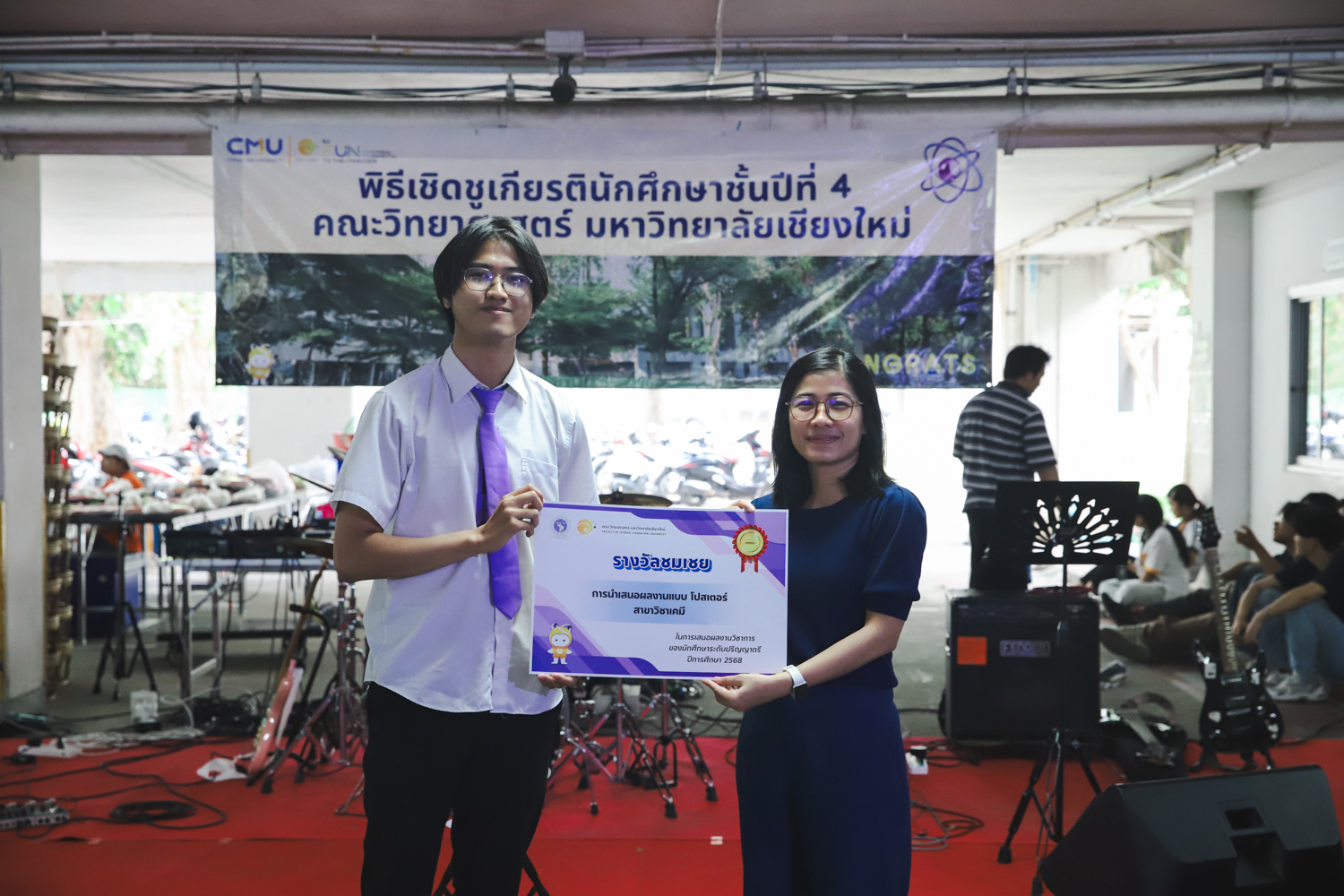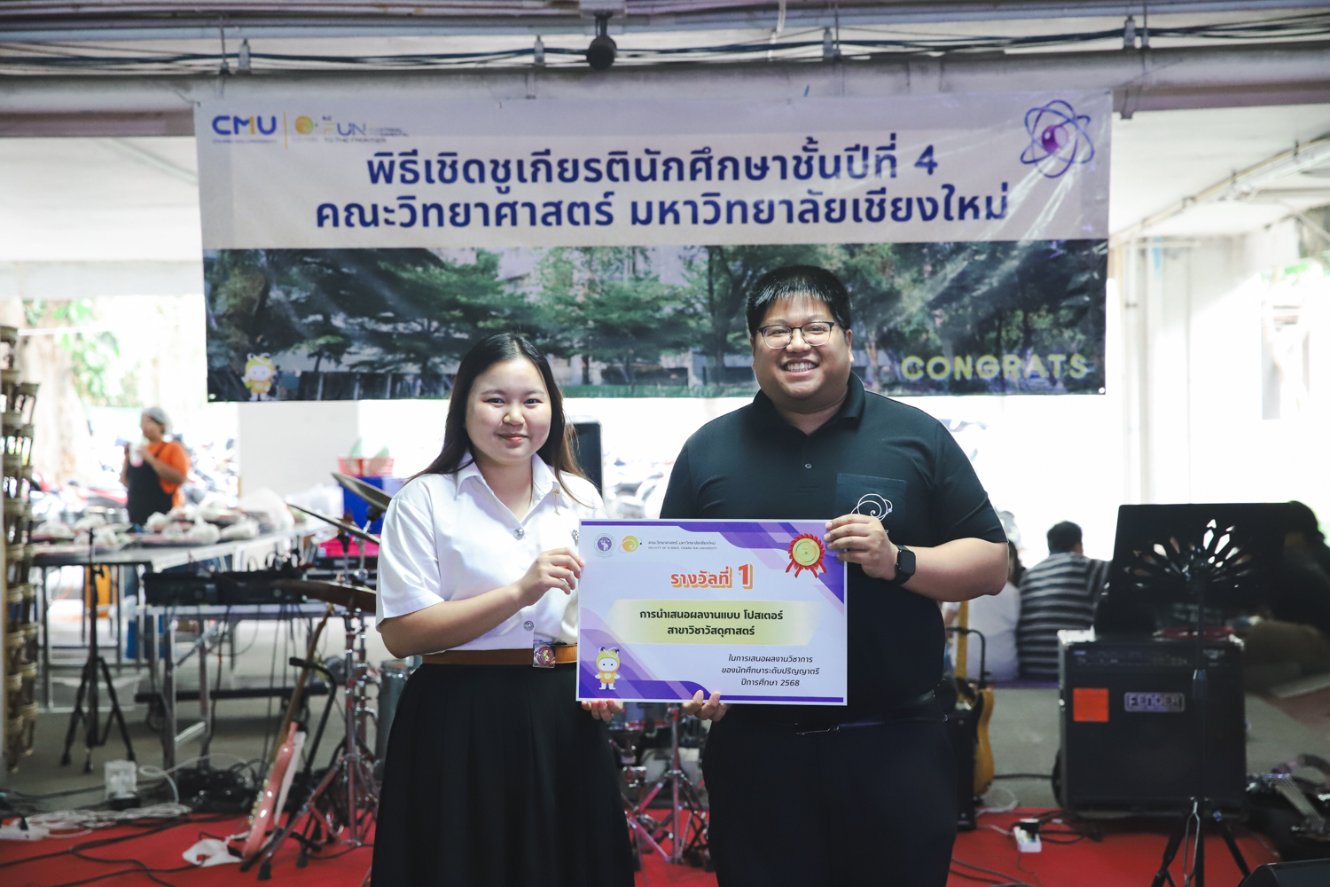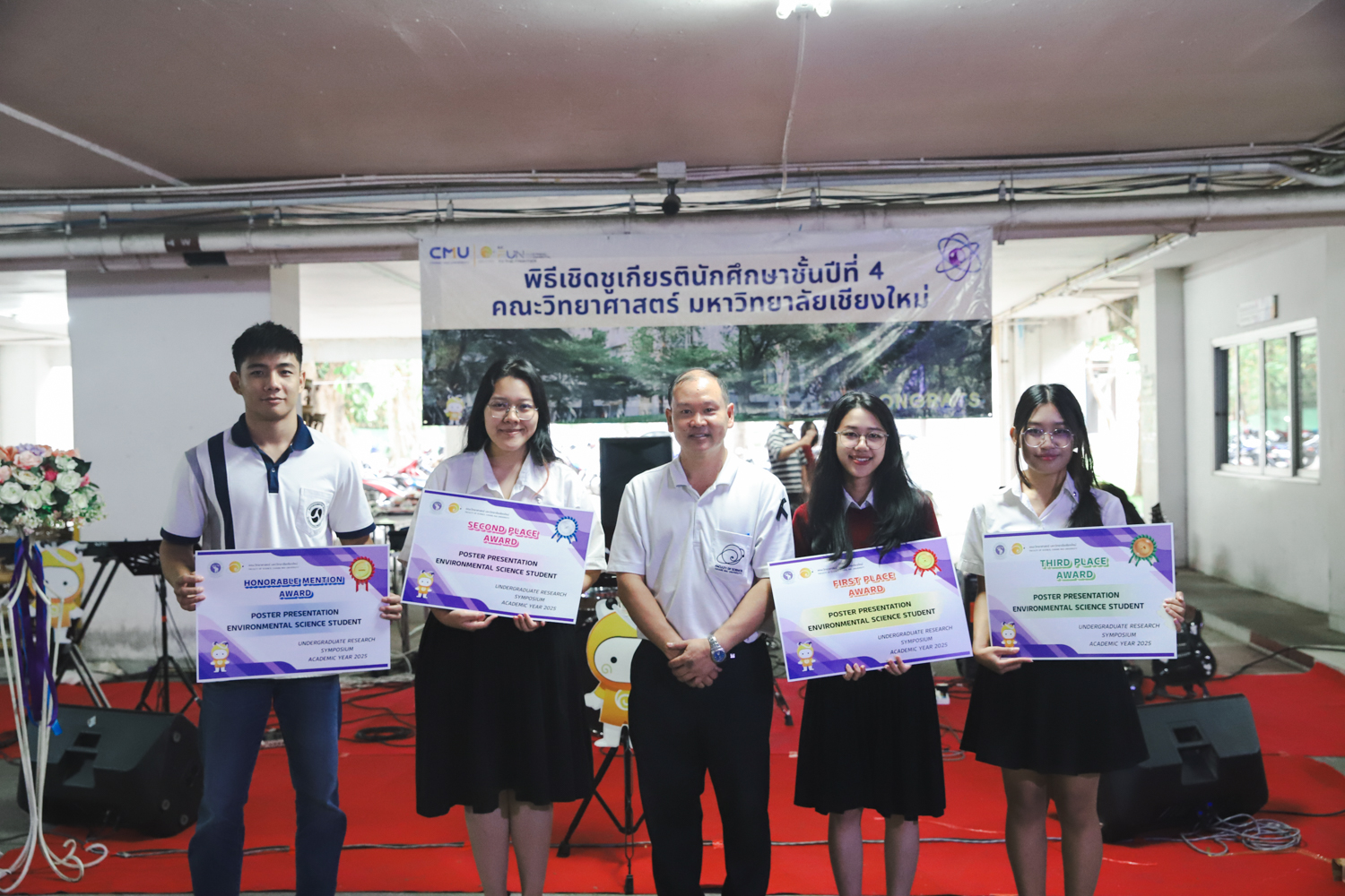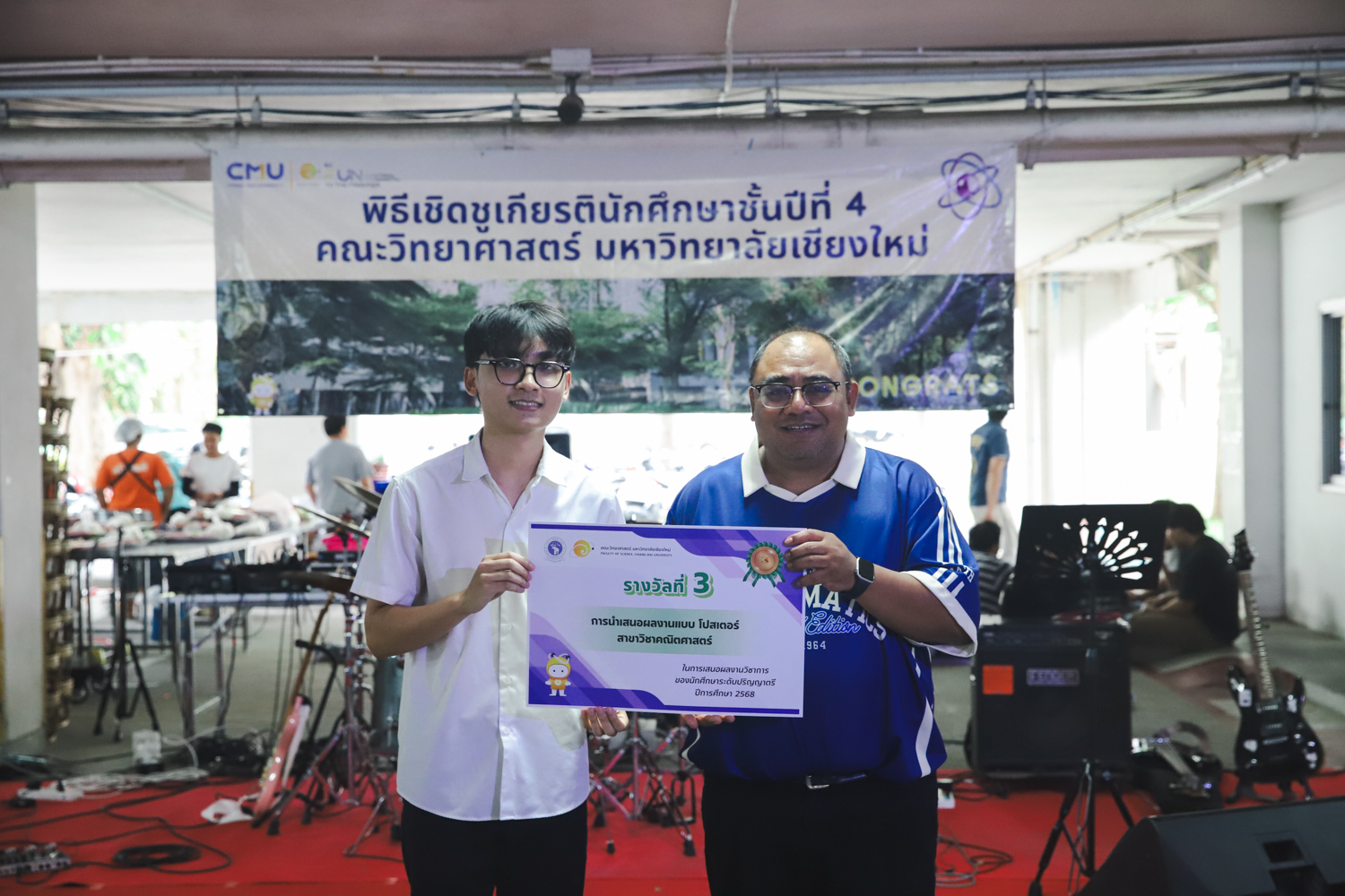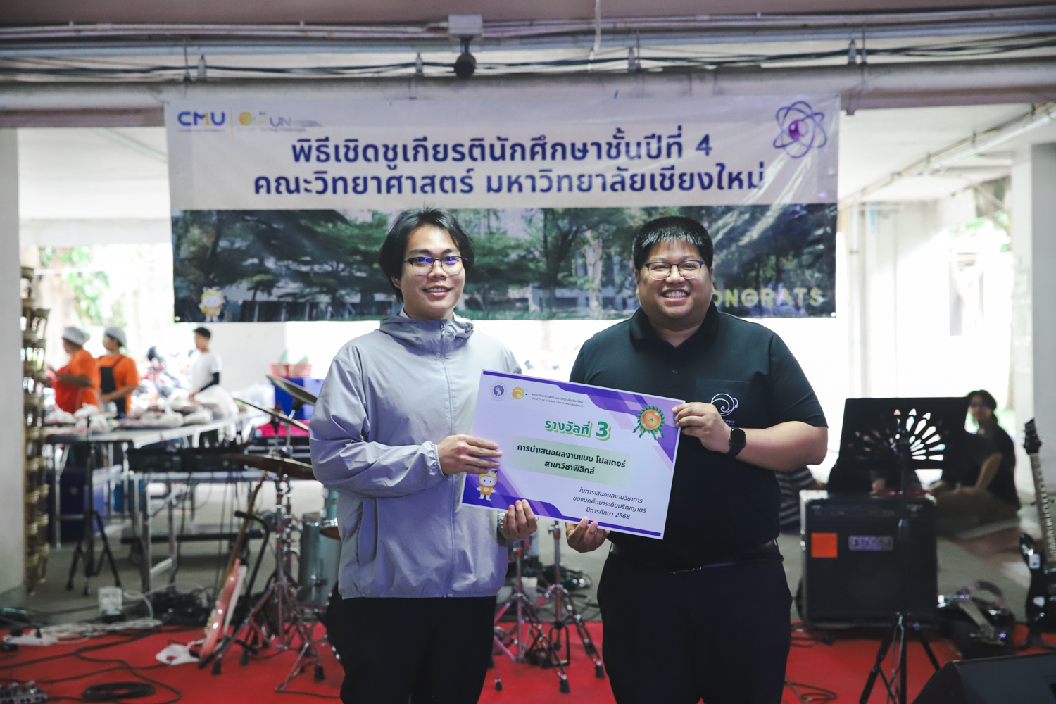 เมื่อวันที่ 11 มีนาคม 2569 ณ อาคาร 40 ปีฯ คณะวิทยาศาสตร์จัดพิธีปัจฉิมนิเทศและงานเลี้ยงแสดงความยินดีกับนักศึกษาชั้นปีที่ 4 ประจำปีการศึกษา 2568 โดยได้รับเกียรติจาก ศาสตราจารย์ ดร.ปิยะพงศ์ เนียมทรัพย์ คณบดีคณะวิทยาศาสตร์ กล่าวแสดงความยินดีและให้โอวาทแก่นักศึกษา โดยเน้นย้ำถึงการนำความรู้ทางวิทยาศาสตร์ไปสร้างคุณประโยชน์ทั้งต่อตนเองและสังคม โดยไฮไลท์สำคัญภายในงานนอกจากจะเป็นการเฉลิมฉลองความสำเร็จก้าวแรกของพี่ปี 4 แล้ว ยังมีการมอบรางวัลเพื่อเชิดชูความเก่งและความทุ่มเทของเหล่านักศึกษาในด้านต่าง ๆ เช่น เกียรติบัตรคณะกรรมการสโมสรนักศึกษา เพื่อชื่นชมผู้เสียสละทำงานเพื่อส่วนรวมตลอดปีการศึกษา รางวัล The Best Atom รางวัลสุดพิเศษที่มอบให้แก่ไอดอลต้นแบบของคณะฯ ในสาขาต่างๆ รางวัลการนำเสนอผลงานทางวิชาการ ที่การันตีคุณภาพความรู้และความเชี่ยวชาญก่อนออกสู่โลกกว้างของนักศึกษา บรรยากาศการจัดงานเต็มไปด้วยรอยยิ้มและความประทับใจ ตอกย้ำความสัมพันธ์ที่เหนียวแน่นของครอบครัววิทยา มช.