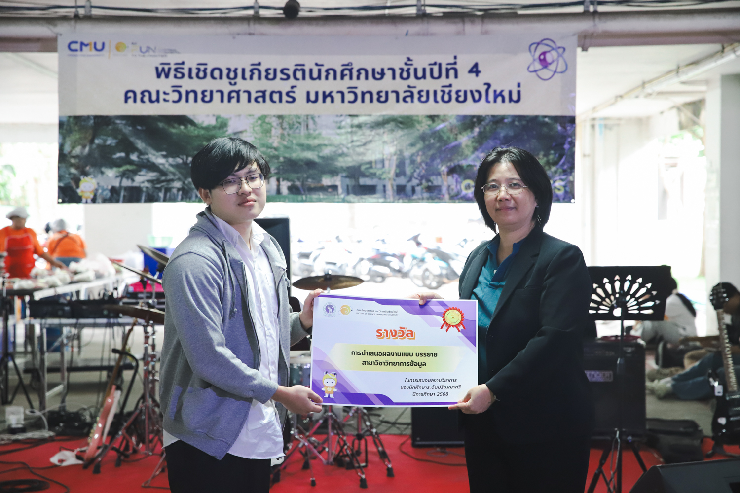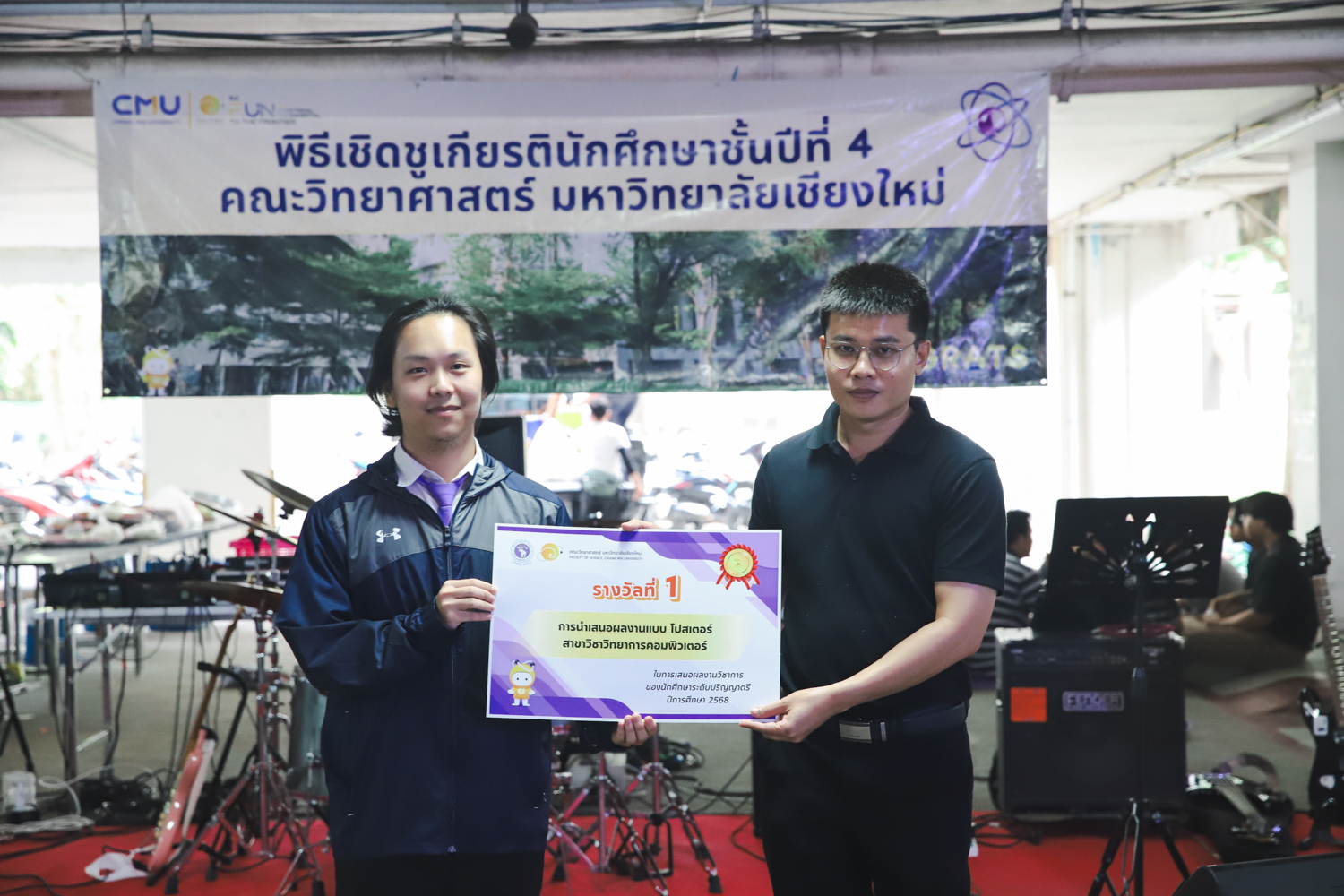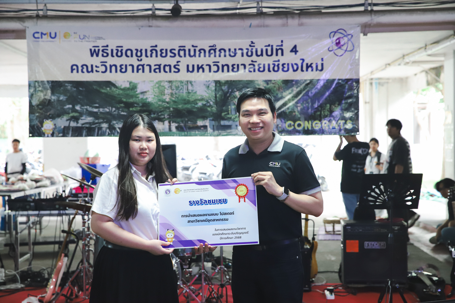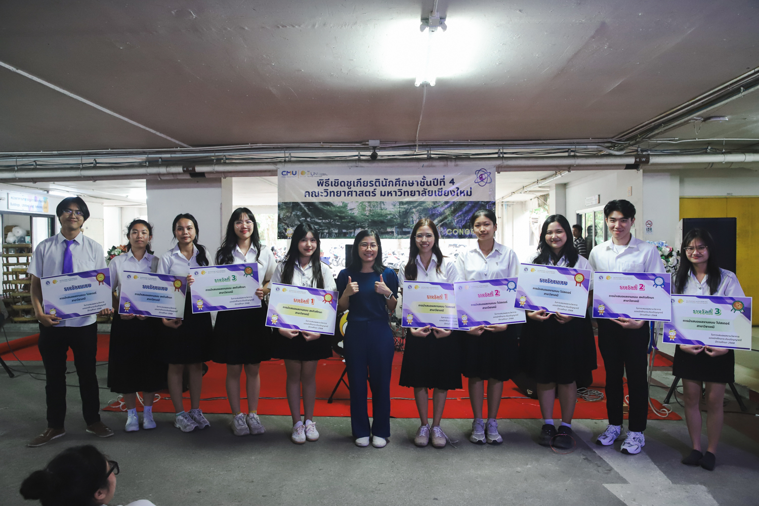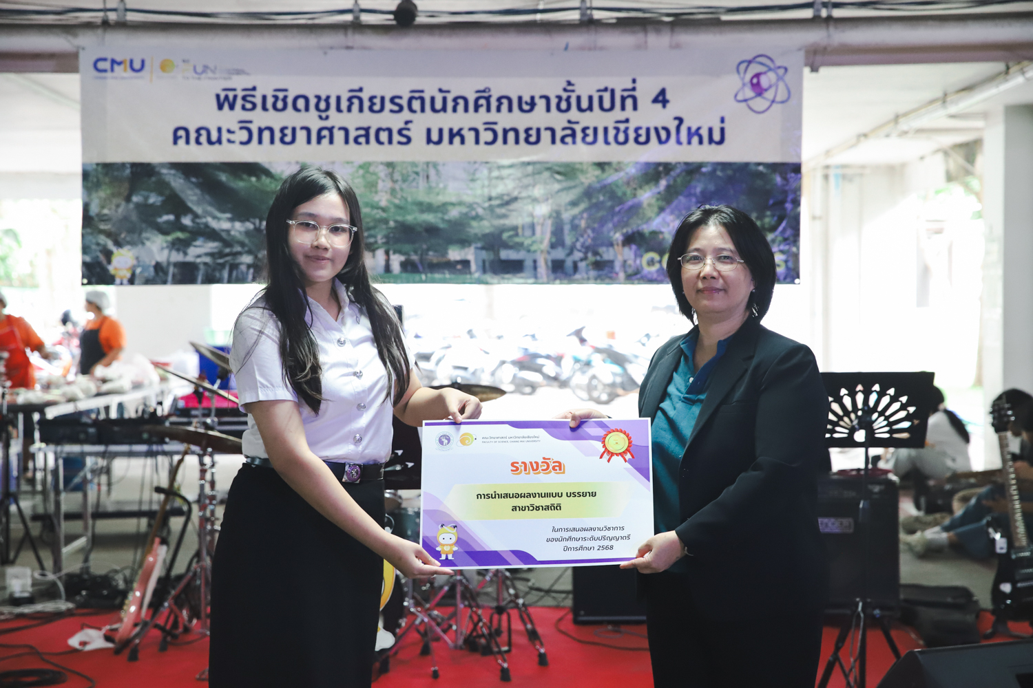 เมื่อวันที่ 11 มีนาคม 2569 ณ อาคาร 40 ปีฯ คณะวิทยาศาสตร์จัดพิธีปัจฉิมนิเทศและงานเลี้ยงแสดงความยินดีกับนักศึกษาชั้นปีที่ 4 ประจำปีการศึกษา 2568 โดยได้รับเกียรติจาก ศาสตราจารย์ ดร.ปิยะพงศ์ เนียมทรัพย์ คณบดีคณะวิทยาศาสตร์ กล่าวแสดงความยินดีและให้โอวาทแก่นักศึกษา โดยเน้นย้ำถึงการนำความรู้ทางวิทยาศาสตร์ไปสร้างคุณประโยชน์ทั้งต่อตนเองและสังคม โดยไฮไลท์สำคัญภายในงานนอกจากจะเป็นการเฉลิมฉลองความสำเร็จก้าวแรกของพี่ปี 4 แล้ว ยังมีการมอบรางวัลเพื่อเชิดชูความเก่งและความทุ่มเทของเหล่านักศึกษาในด้านต่าง ๆ เช่น เกียรติบัตรคณะกรรมการสโมสรนักศึกษา เพื่อชื่นชมผู้เสียสละทำงานเพื่อส่วนรวมตลอดปีการศึกษา รางวัล The Best Atom รางวัลสุดพิเศษที่มอบให้แก่ไอดอลต้นแบบของคณะฯ ในสาขาต่างๆ รางวัลการนำเสนอผลงานทางวิชาการ ที่การันตีคุณภาพความรู้และความเชี่ยวชาญก่อนออกสู่โลกกว้างของนักศึกษา บรรยากาศการจัดงานเต็มไปด้วยรอยยิ้มและความประทับใจ ตอกย้ำความสัมพันธ์ที่เหนียวแน่นของครอบครัววิทยา มช.