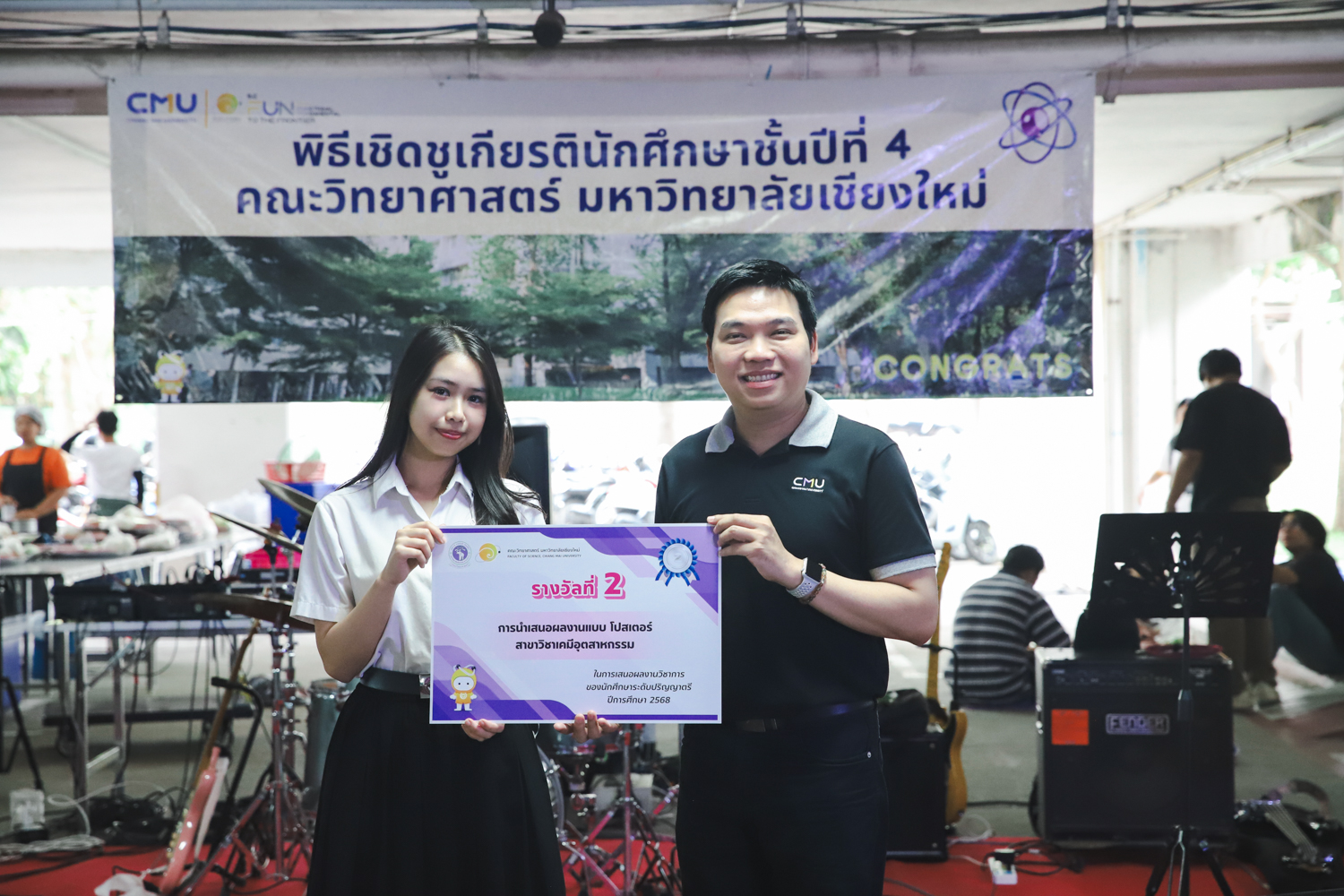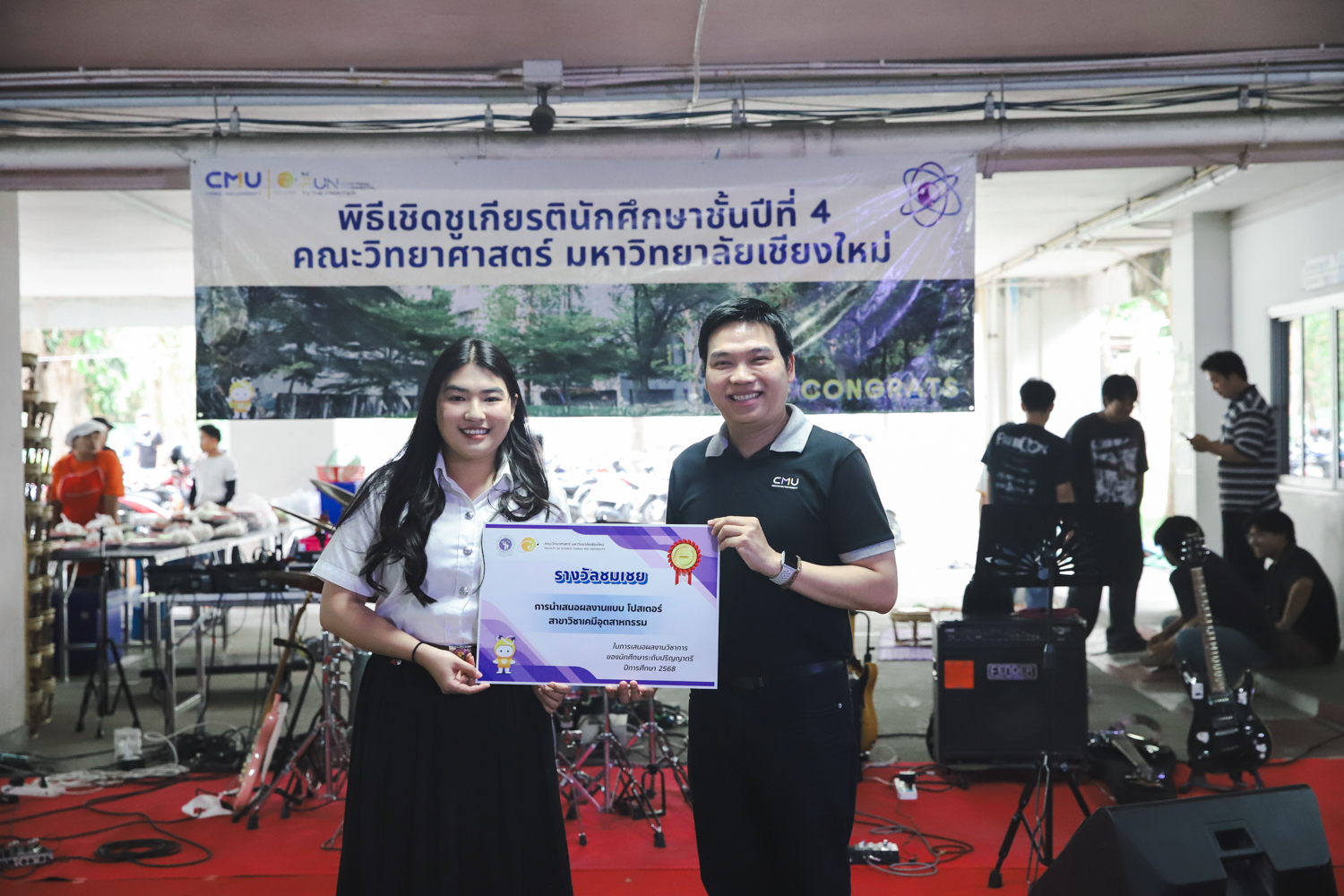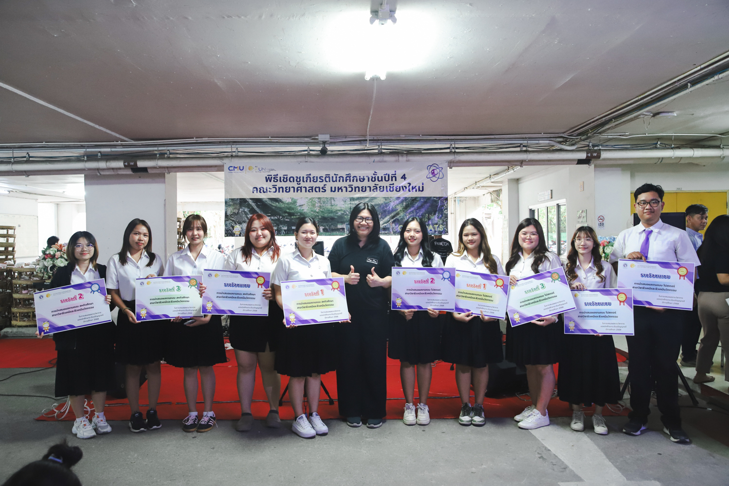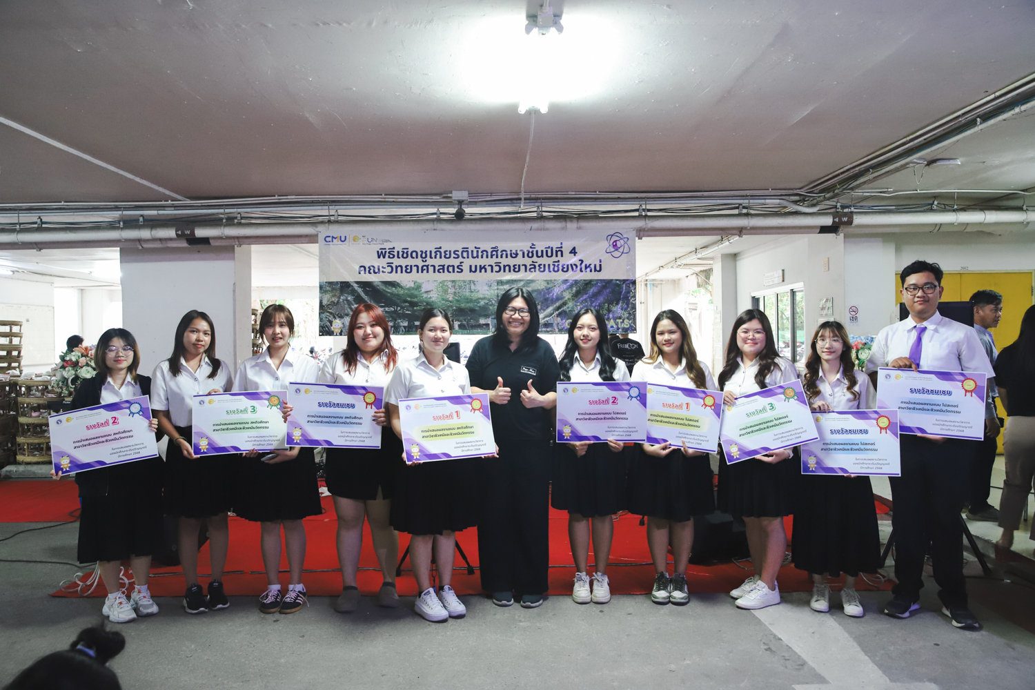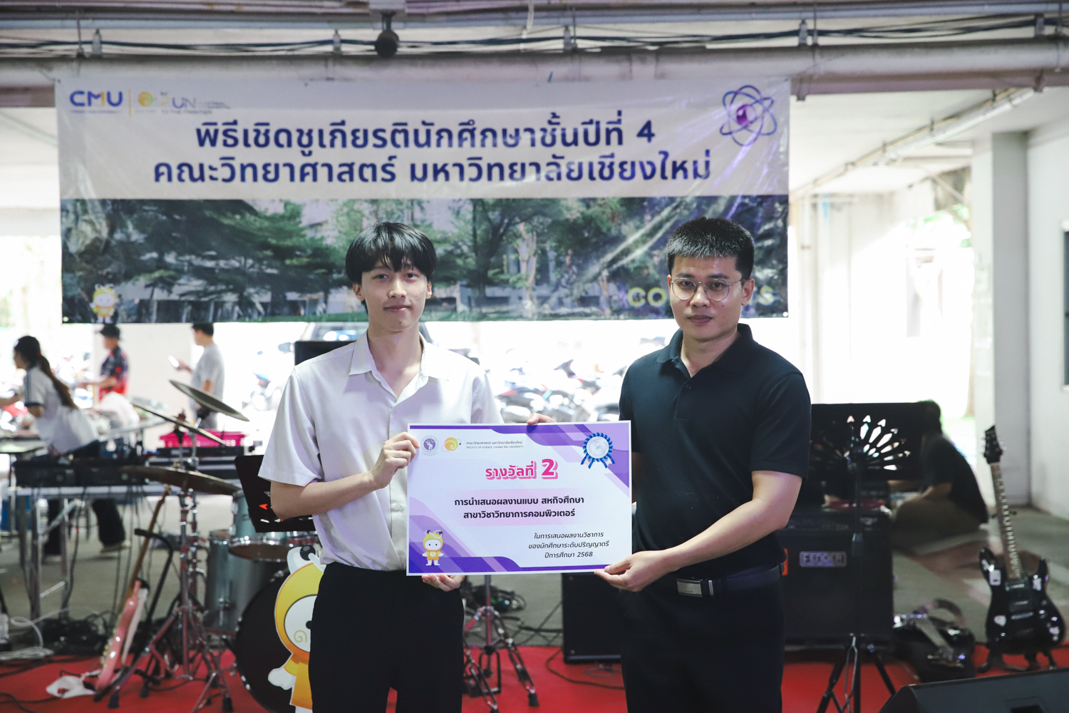 เมื่อวันที่ 11 มีนาคม 2569 ณ อาคาร 40 ปีฯ คณะวิทยาศาสตร์จัดพิธีปัจฉิมนิเทศและงานเลี้ยงแสดงความยินดีกับนักศึกษาชั้นปีที่ 4 ประจำปีการศึกษา 2568 โดยได้รับเกียรติจาก ศาสตราจารย์ ดร.ปิยะพงศ์ เนียมทรัพย์ คณบดีคณะวิทยาศาสตร์ กล่าวแสดงความยินดีและให้โอวาทแก่นักศึกษา โดยเน้นย้ำถึงการนำความรู้ทางวิทยาศาสตร์ไปสร้างคุณประโยชน์ทั้งต่อตนเองและสังคม โดยไฮไลท์สำคัญภายในงานนอกจากจะเป็นการเฉลิมฉลองความสำเร็จก้าวแรกของพี่ปี 4 แล้ว ยังมีการมอบรางวัลเพื่อเชิดชูความเก่งและความทุ่มเทของเหล่านักศึกษาในด้านต่าง ๆ เช่น เกียรติบัตรคณะกรรมการสโมสรนักศึกษา เพื่อชื่นชมผู้เสียสละทำงานเพื่อส่วนรวมตลอดปีการศึกษา รางวัล The Best Atom รางวัลสุดพิเศษที่มอบให้แก่ไอดอลต้นแบบของคณะฯ ในสาขาต่างๆ รางวัลการนำเสนอผลงานทางวิชาการ ที่การันตีคุณภาพความรู้และความเชี่ยวชาญก่อนออกสู่โลกกว้างของนักศึกษา บรรยากาศการจัดงานเต็มไปด้วยรอยยิ้มและความประทับใจ ตอกย้ำความสัมพันธ์ที่เหนียวแน่นของครอบครัววิทยา มช.