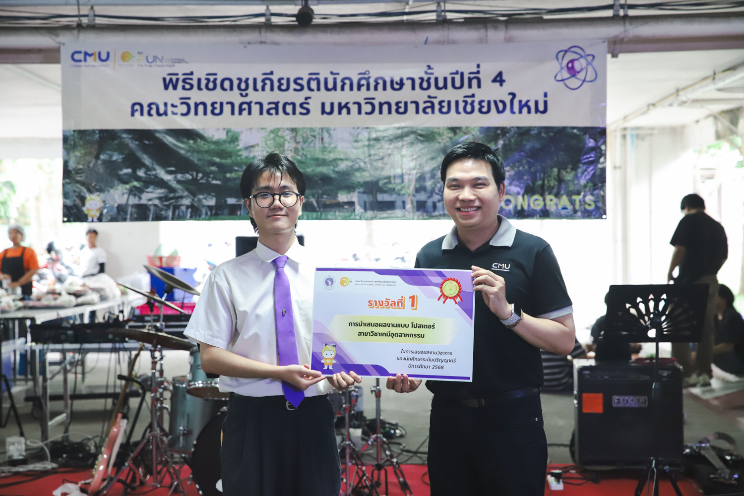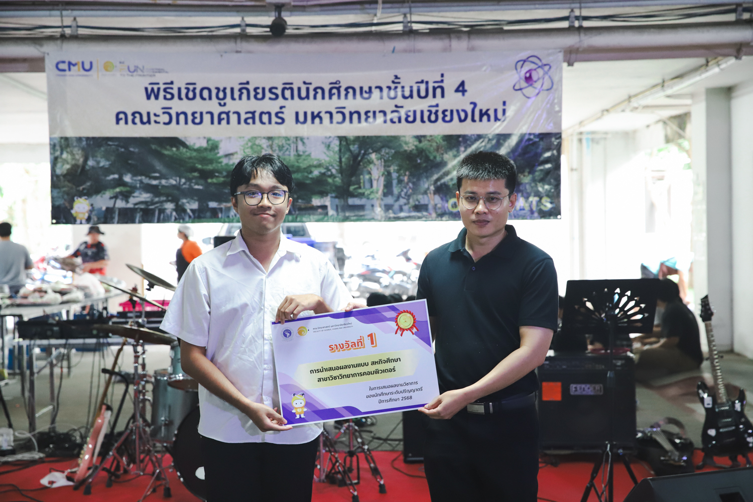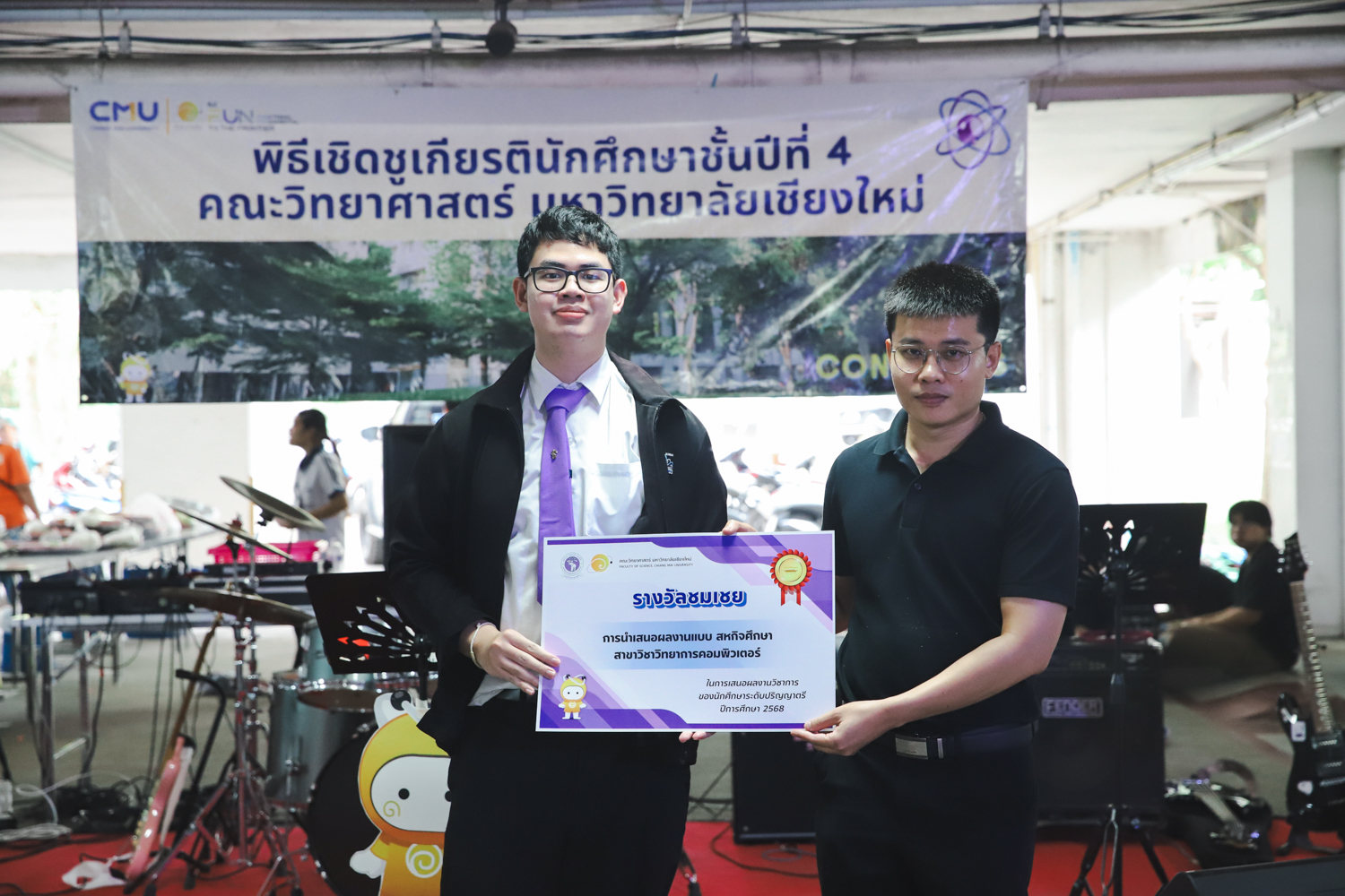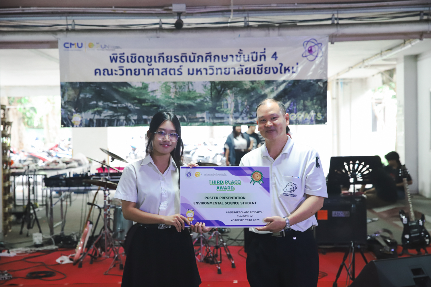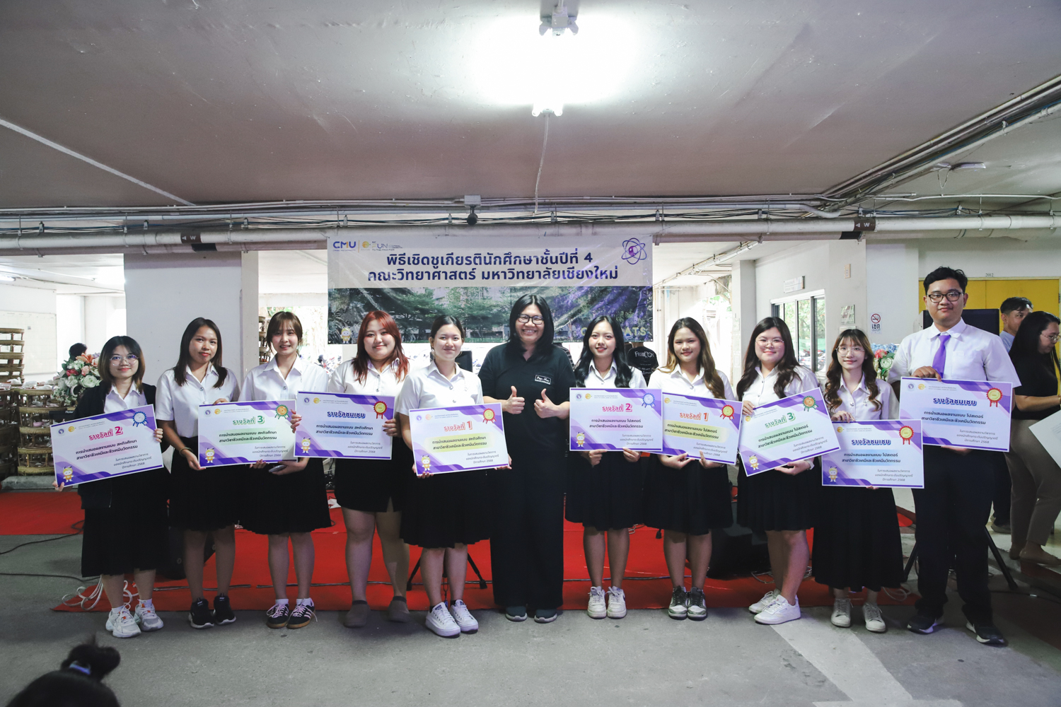 เมื่อวันที่ 11 มีนาคม 2569 ณ อาคาร 40 ปีฯ คณะวิทยาศาสตร์จัดพิธีปัจฉิมนิเทศและงานเลี้ยงแสดงความยินดีกับนักศึกษาชั้นปีที่ 4 ประจำปีการศึกษา 2568 โดยได้รับเกียรติจาก ศาสตราจารย์ ดร.ปิยะพงศ์ เนียมทรัพย์ คณบดีคณะวิทยาศาสตร์ กล่าวแสดงความยินดีและให้โอวาทแก่นักศึกษา โดยเน้นย้ำถึงการนำความรู้ทางวิทยาศาสตร์ไปสร้างคุณประโยชน์ทั้งต่อตนเองและสังคม โดยไฮไลท์สำคัญภายในงานนอกจากจะเป็นการเฉลิมฉลองความสำเร็จก้าวแรกของพี่ปี 4 แล้ว ยังมีการมอบรางวัลเพื่อเชิดชูความเก่งและความทุ่มเทของเหล่านักศึกษาในด้านต่าง ๆ เช่น เกียรติบัตรคณะกรรมการสโมสรนักศึกษา เพื่อชื่นชมผู้เสียสละทำงานเพื่อส่วนรวมตลอดปีการศึกษา รางวัล The Best Atom รางวัลสุดพิเศษที่มอบให้แก่ไอดอลต้นแบบของคณะฯ ในสาขาต่างๆ รางวัลการนำเสนอผลงานทางวิชาการ ที่การันตีคุณภาพความรู้และความเชี่ยวชาญก่อนออกสู่โลกกว้างของนักศึกษา บรรยากาศการจัดงานเต็มไปด้วยรอยยิ้มและความประทับใจ ตอกย้ำความสัมพันธ์ที่เหนียวแน่นของครอบครัววิทยา มช.