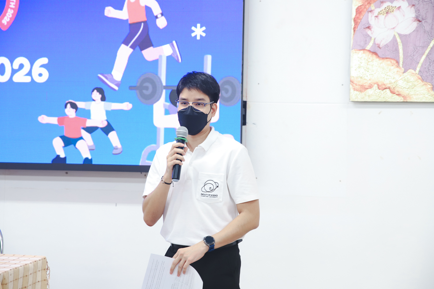 คณะวิทยาศาสตร์ มหาวิทยาลัยเชียงใหม่ เดินหน้าขับเคลื่อนนโยบายด้านการส่งเสริมสุขภาพ จัดโครงการ "วิทยารักษ์สุขภาพ ประจำปี 2569" เพื่อส่งเสริมสุขภาพเชิงป้องกันและสร้างความผูกพันภายในองค์กร โดยได้รับเกียรติจาก ศาสตราจารย์ ดร.ปิยะพงศ์ เนียมทรัพย์ คณบดีคณะวิทยาศาสตร์ เป็นประธานเปิดโครงการ และนายพิชัย นาคปฐม เลขานุการคณะวิทยาศาสตร์ กล่าวรายงานความเป็นมาของการจัดโครงการ ณ ห้องสัมมนา ชั้น 2 อาคาร 40 ปี คณะวิทยาศาสตร์ เมื่อวันที่ 1 เมษายน 2569