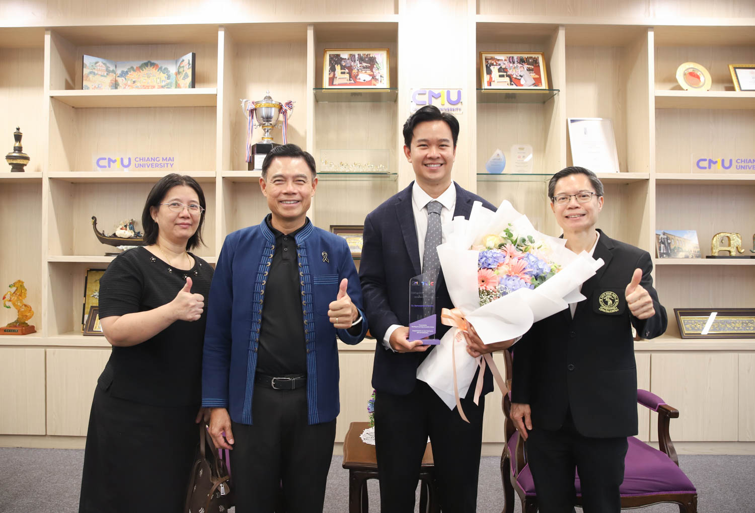 เมื่อวันที่ 23 เมษายน 2569 ณ ห้องรับรอง ม.ล.ปิ่น มาลากุล สำนักงานมหาวิทยาลัยเชียงใหม่ ศาสตราจารย์ ดร.ปิยะพงศ์ เนียมทรัพย์ คณบดีคณะวิทยาศาสตร์ พร้อมด้วย ผู้ช่วยศาสตราจารย์ ดร.ภควรรณ พวงสมบัติ รองคณบดีคณะวิทยาศาสตร์ ร่วมแสดงความยินดีและเป็นเกียรติในโอกาสที่ อาจารย์ ดร.กมลภพ ศรีโสภา อาจารย์ประจำภาควิชาวิทยาการคอมพิวเตอร์ คณะวิทยาศาสตร์ ได้เข้ารับมอบรางวัล อาจารย์ผู้นำการเรียนรู้ (Distinguished Educator) ประจำปีการศึกษา 2567 จากผลงานการจัดการเรียนรู้ในกระบวนวิชา 204361 : Software Engineering (วิศวกรรมซอฟต์แวร์) จากศาสตราจารย์ ดร.นพ.พงษ์รักษ์ ศรีบัณฑิตมงคล อธิการบดีมหาวิทยาลัยเชียงใหม่